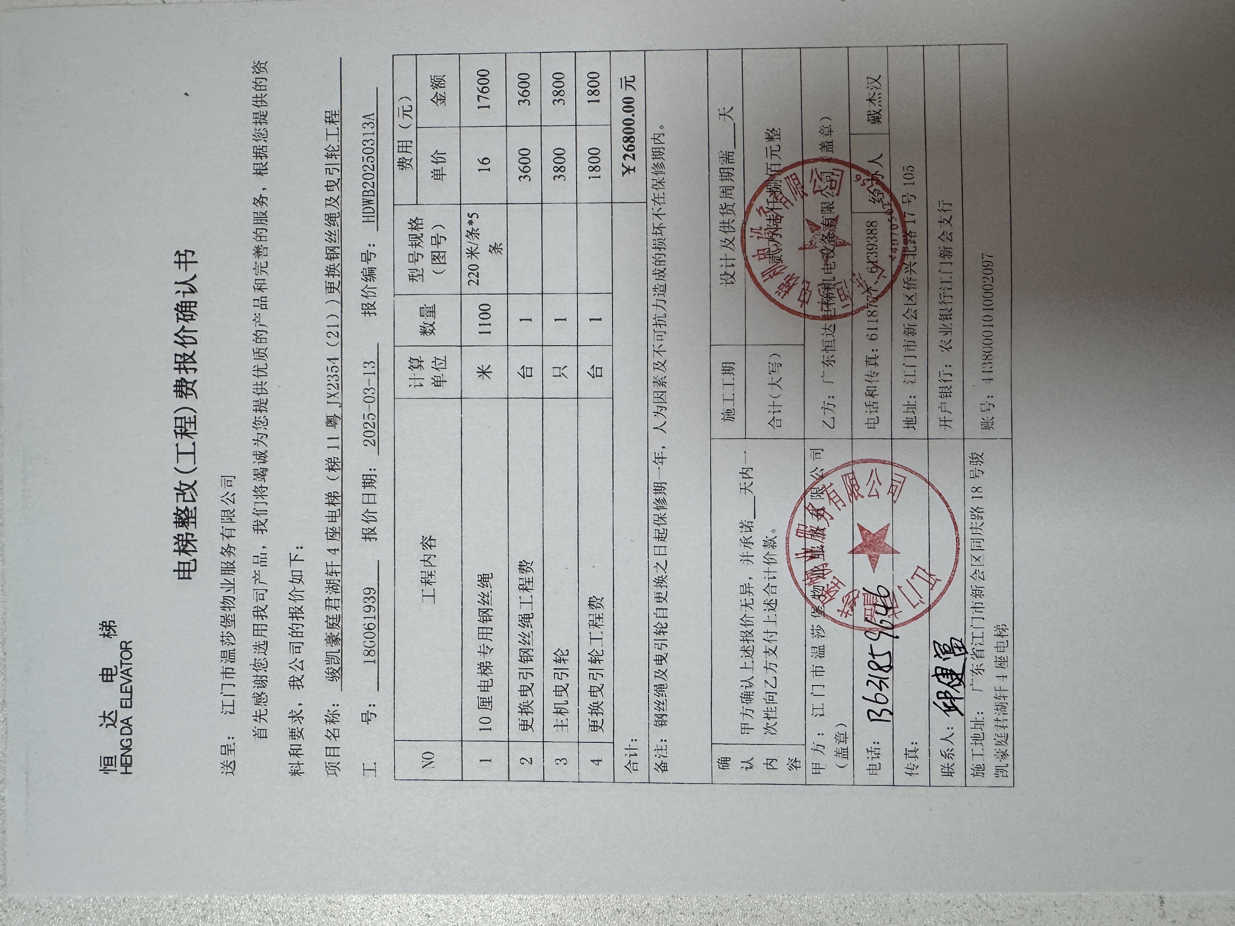 <td VALIGN="top" VALUES="" STYLE="border-width:0" BINDTYPE="0" ROWSPAN="19" COLSPAN="7" DATASOURCE="投票结果" ><font style="font-size:14pt;"><p style="white-space: normal; font-family: 宋体; line-height: 1.75em;">骏凯豪庭君湖轩4座全体业主:</p><p style="white-space: normal; font-family: 宋体; line-height: 1.75em; text-indent: 2em;">本小区关于骏凯豪庭君湖轩4座电梯(梯11粤JX2354(21))更换钢丝绳及主机曳引轮使用维修资金的投票的投票已表决结束,询异时间从2025年06月04日开始,投票询异公示期间,业主可通过微信查询自己的表决情况或可凭身份证件申请查询自己的表决情况;如公示的业主表决情况与查询的本人表决意见不一致的,可以以书面形式向投票组织机构申诉,投票组织机构予以纠正并重新公示表决结果。异议提出人对投票组织机构的处理仍有异议的,可以向街道办事处(镇人民政府)反映处理,涉及住宅专项维修资金的,可向属地住宅专项维修资金管理中心反映处理。</p><p style="white-space: normal;"><br/></p><p style="white-space: normal; font-family: 宋体; line-height: 1.75em;"><strong>附件:</strong></p><p style="white-space: normal; font-family: 宋体; line-height: 1.75em;"><strong>一、投票范围</strong></p><p style="white-space: normal; font-family: 宋体; line-height: 1.75em; text-indent: 2em;">骏凯豪庭君湖轩4座</p><p style="white-space: normal; font-family: 宋体; line-height: 1.75em; text-indent: 2em;">总人数(专有部分人数之和):144</p><p style="white-space: normal; font-family: 宋体; line-height: 1.75em; text-indent: 2em;"><span style="font-family: 宋体, SimSun;"><span style="font-family: 宋体; text-indent: 32px;"><span style="font-family: 宋体; text-indent: 32px;">总户数:150</span></span></span></p><p style="white-space: normal; font-family: 宋体; line-height: 1.75em; text-indent: 2em;">建筑物总面积(专有部分面积之和):13765.00㎡</p><p style="white-space: normal; font-family: 宋体; line-height: 1.75em;"><strong>二、询异公示起止时间</strong></p><p dir="ltr" style="white-space: normal; font-family: 宋体; line-height: 1.75em; text-indent: 2em;"><span style="text-indent: 36px;">2025年06月04日至2025年06月14日</span></p><p style="white-space: normal; font-family: 宋体; line-height: 1.75em;"><strong>三、投票详细描述</strong></p><p style="white-space: normal; font-family: 宋体; line-height: 1.75em; text-indent: 2em;"><p>骏凯豪庭君湖轩4座电梯(梯11粤JX2354(21))日常运行时出现晃动及异响,经检查,是由于电梯钢丝绳及主机曳引轮磨损导致。<br/></p><p>现对君湖轩4座电梯<span style="text-wrap-mode: wrap;">(梯11粤JX2354(21))进行更换钢丝绳及主机曳引轮,工程维修预算金额为26800.00元,项目最终费用以施工合同签订金额为准。因已过保修期,维修费用由相关业主按建筑面积分摊,每平方约1.946967元,详见公示附件。如业主手机不能正常通过微信投票,请联系物业公司进行线下纸质投票,物业电话:0750-6399789。</span></p></p><p style="white-space: normal; font-family: 宋体; line-height: 1.75em;"><strong>四、计票规则</strong></p><p style="white-space: normal; font-family: 宋体; line-height: 1.75em; text-indent: 2em;">表决事项:使用建筑物及其附属设施的维修资金<br /><p style='text-align: left; font-family: 宋体; font-size: 16px; line-height: 1.75em; text-indent: 2em;'>计票规则:弃权票不并入其它项 未表决票不并入其它项</p></p><p style="white-space: normal; font-family: 宋体; line-height: 1.75em;"><strong>五、通过规则</strong></p><p style="white-space: normal; font-family: 宋体; line-height: 1.75em;"><strong><strong style="white-space: normal;"><span style="font-family: 宋体, SimSun;"> 根据《中华人民共和国民法典》第二百七十八条规定:业主共同决定事项,应当由专有部分面积占比三分之二以上的业主且人数占比三分之二以上的业主参与表决。</span></strong></strong></p><p style="white-space: normal; font-family: 宋体; line-height: 1.75em; text-indent: 2em;">表决事项:使用建筑物及其附属设施的维修资金<br /><p style='text-align: left; font-family: 宋体; font-size: 16px; line-height: 1.75em; text-indent: 2em;'>通过规则:双2/3以上参与表决,参与表决双过半同意</p></p><p style="white-space: normal; font-family: 宋体; line-height: 1.75em;"><strong>六、投票结果</strong></p><p style="white-space: normal; font-family: 宋体; line-height: 1.75em; text-indent: 2em;"><div id='resultTable'><table style='table-layout: fixed; font-size:12px; margin-top:10px' width='100%' border='0' cellspacing='0' cellpadding='0'><tr><td height='28' colspan='10' align='center' style='border: 1px solid #666'><strong style='font-size: 14px;'> 使用建筑物及其附属设施的维修资金</strong></td> </tr><tr id='trfirst'><td height='28' colspan='4' style='border-left: 1px solid #666; border-bottom: 1px solid #666'><strong> 申报单位:</strong> 江门市温莎堡物业服务有限公司</td><td colspan='3' style='border-left: 1px solid #666; border-bottom: 1px solid #666'><strong> 联系方式:</strong> 07506392388 </td><td colspan='3' style='border-left: 1px solid #666; border-bottom: 1px solid #666; border-right: 1px solid #666'><strong> 申报日期:</strong> 2025年4月1日 </td></tr><tr> <td height='28' colspan='5' style='border-left: 1px solid #666; border-bottom: 1px solid #666'><strong> 总人数(专有部分人数之和):</strong>144人 </td><td colspan='5' style='border-left: 1px solid #666; border-bottom: 1px solid #666; border-right: 1px solid #666'><strong> 建筑物总面积(专有部分面积之和):</strong>13765.00㎡ </td> </tr><tr><td height='28' colspan='10' bgcolor='#F3F3F3' style='border-left: 1px solid #666;border-bottom: 1px solid #666;border-right: 1p