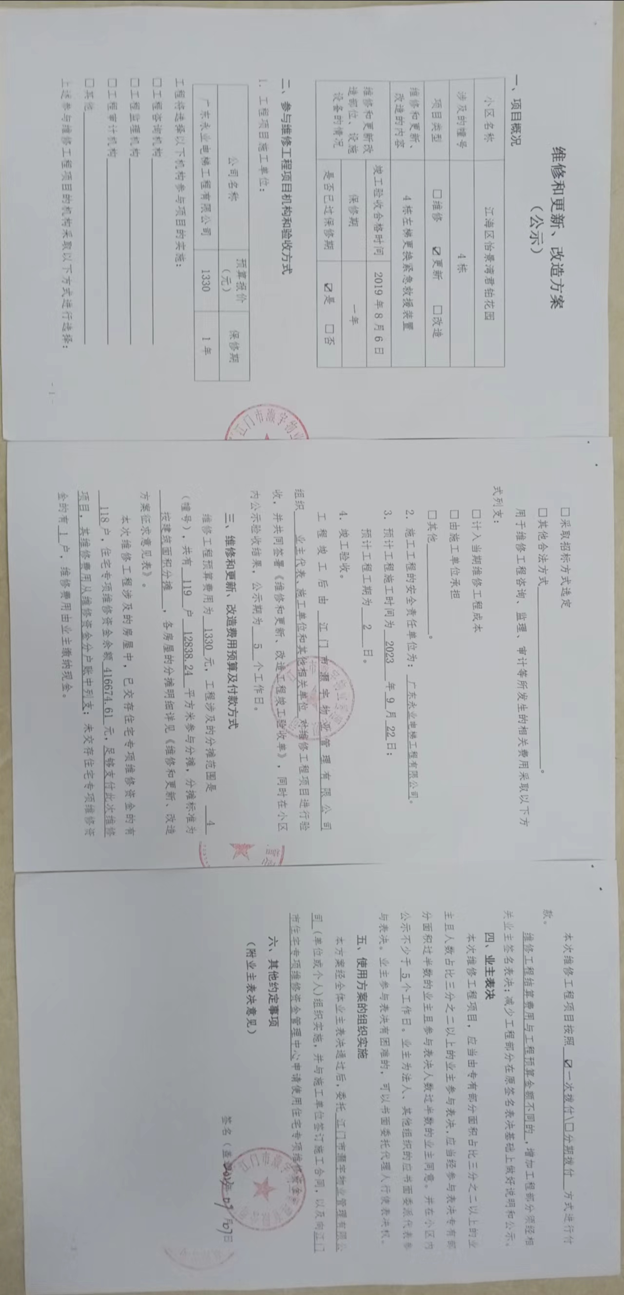 <td valign="top" values="" style="border-width:0" bindtype="0" rowspan="17" colspan="7" datasource="投票结果"><font style=" font-family:方正小标宋简体;font-size:14pt;"><p style="line-height: 1.75em;"><span style="font-family: 宋体, SimSun;">各位尊敬的业主:</span><br></p><p style="text-indent: 2em; line-height: 1.75em;"><span style="font-family: 宋体, SimSun;">根据法律法规的规定,本小区业主利用“江门市物业事项表决管理系统”已对本小区公共事务决策事项进行了表决,在经过7日的询异公示期后,未收到业主有效的异议。现将投票结果公告,并就产生的法律效力说明如下:</span></p><p style="line-height: 1.75em; text-indent: 0em;"><strong style="text-indent: 2em;"><span style="font-family: 宋体, SimSun;">一、投票范围</span></strong></p><p style="text-indent: 2em; line-height: 1.75em;"><span style="font-family: 宋体, SimSun;">江门市江海区怡景湾君铂花园江门市江海区怡景湾君铂花园4栋</span></p><p style="text-indent: 2em; line-height: 1.75em;"><span style="font-family: 宋体, SimSun;">总人数(专有部分人数之和):119</span></p><p style="text-indent: 2em; line-height: 1.75em;"><span style="font-family: 宋体, SimSun;"><span style="font-family: 宋体, SimSun; text-indent: 32px;"><span style="font-family: 宋体; text-indent: 32px;">总户数:119</span></span></span></p><p style="text-indent: 2em; line-height: 1.75em;"><span style="font-family: 宋体, SimSun;">建筑物总面积(专有部分面积之和):12838.24㎡</span></p><p style="line-height: 1.75em;"><strong><span style="font-family: 宋体, SimSun;">二、投票结果公告时间</span></strong></p><p style="text-indent: 2em; line-height: 1.75em;"><span style="font-family: 宋体, SimSun;">从2023年09月29日开始</span></p><p style="line-height: 1.75em;"><strong><span style="font-family: 宋体, SimSun;">三、计票规则</span></strong></p><p style="text-indent: 2em; line-height: 1.75em;"><span style="font-family: 宋体, SimSun;">表决事项:使用建筑物及其附属设施的维修资金<br></span></p><p style="font-family: 宋体, SimSun;line-height: 1.75em; text-indent: 2em;">计票规则:弃权票不并入其它项 未表决票不并入其它项</p><p></p><p style="line-height: 1.75em;"><strong><span style="font-family: 宋体, SimSun;">四、通过规则</span></strong></p><p style="text-indent: 2em; line-height: 1.75em;"><span style="font-family: 宋体, SimSun;"><span style="font-family: 宋体, SimSun; text-indent: 32px;">表决事项:使用建筑物及其附属设施的维修资金<br></span></span></p><p style="font-family: 宋体, SimSun;line-height: 1.75em; text-indent: 2em;">通过规则:参与表决专有部分面积过半数的业主且参与表决人数过半数的业主同意</p><p></p><p style="line-height: 1.75em;"><strong><span style="font-family: 宋体, SimSun;">五、投票结果</span></strong></p><p style="line-height: 1.75em; text-indent: 2em;"><span style="font-family: 宋体, SimSun; text-indent: 2em;"></span></p><div id="resultTable"><table style="table-layout: fixed; font-size:12px; margin-top:10px" width="100%" border="0" cellspacing="0" cellpadding="0"><tbody><tr><td height="28" colspan="10" align="center" style="border: 1px solid #666"><strong style="font-size: 14px;"> 使用建筑物及其附属设施的维修资金</strong></td> </tr><tr id="trfirst"><td height="28" colspan="4" style="border-left: 1px solid #666; border-bottom: 1px solid #666"><strong> 申报单位:</strong> 江门市灏宇物业管理有限公司</td><td colspan="3" style="border-left: 1px solid #666; border-bottom: 1px solid #666"><strong> 联系方式:</strong> </td><td colspan="3" style="border-left: 1px solid #666; border-bottom: 1px solid #666; border-right: 1px solid #666"><strong> 申报日期:</strong> 2023年9月13日 </td></tr><tr> <td height="28" colspan="5" style="border-left: 1px solid #666; border-bottom: 1px solid #666"><strong> 总人数(专有部分人数之和):</strong>119人 </td><td colspan="5" style="border-left: 1px solid #666; border-bottom: 1px solid #666; border-right: 1px solid #666"><strong> 建筑物总面积(专有部分面积之和):</strong>12838.24㎡ </td> </tr><tr><td height="28" colspan="10" bgcolor="#F3F3F3" style="border-left: 1px solid #666;border-bottom: 1px solid #666;border-right: 1px solid #666"><strong> 参与人数及面积统计</strong></td></tr><tr><td height="28" colspan="5" style="border-left: 1px solid #666; border-bottom: 1px solid #666"><strong> 参与表决专有部分人数之和:</strong>86人</td><td colspan="5" style="border-left: 1px solid #666; border-bottom: 1px solid #666; border-right: 1px solid #666"><strong> 参与表决占有表决权总人数比例:</strong>72.27%</td></tr><tr><td height="28" colspan="5" style="border-left: 1px solid #666; border-bottom: 1px solid #666"><strong> 参与表决专有部分面积之和:</strong>9254.94㎡</td><td colspan="5" style="border-left: 1px solid #666; border-bottom: 1px solid #666; border-right: 1px solid #666"><strong> 参与表决占有表决权总面积比例:</strong>72.09%</td></tr><tr><td height="28" colspan="10" bgcolor="#F3F3F3" style="border-left: 1px solid #666; border-bottom: 1px solid #666;border-right: 1px solid #666"> <strong> 未参与人数及面积统计</strong></td> </tr><tr><td height="28" colspan="5" style="border-left: 1px solid #666; border-bottom: 1px solid #666"><strong> 未参与表决专有部分人数之和:</strong>33人 </td><td colspan="5" style="border-left: 1px solid #666; border-bottom: 1px solid #666; border-right: 1px solid #666"><strong> 未参与表决占有表决权总人数比例:</strong>27.73%</td></tr><tr><td height="28" colspan="5" style="border-left: 1px solid #666; border-bottom: 1px solid #666"><strong> 未参与表决专有部分面积之和:</strong>3583.30㎡</td><td colspan="5" style="border-left: 1px solid #666; border-bottom: 1px solid #6