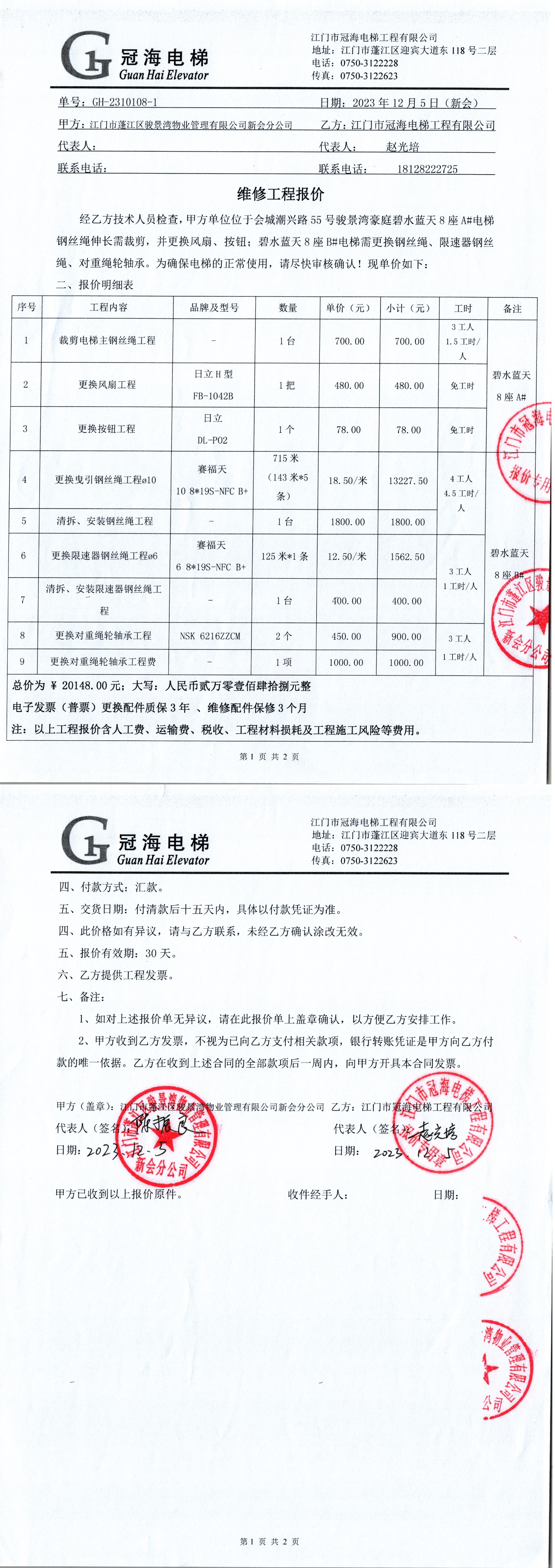 <td VALIGN="top" VALUES="" STYLE="border-width:0" BINDTYPE="0" ROWSPAN="19" COLSPAN="7" DATASOURCE="投票结果" ><font style="font-size:14pt;"><p style="white-space: normal; font-family: 宋体; line-height: 1.75em;">新会骏景湾豪庭碧水蓝天8座全体业主:</p><p style="white-space: normal; font-family: 宋体; line-height: 1.75em; text-indent: 2em;">本小区关于新会骏景湾豪庭碧水蓝天8座A电梯裁剪钢丝绳,更换风扇、按钮;B电梯更换曳引钢丝绳、限速器钢丝绳、对重绳轮轴承使用维修资金的投票的投票已表决结束,询异时间从2023年12月19日开始,投票询异公示期间,业主可通过微信查询自己的表决情况或可凭身份证件申请查询自己的表决情况;如公示的业主表决情况与查询的本人表决意见不一致的,可以以书面形式向投票组织机构申诉,投票组织机构予以纠正并重新公示表决结果。异议提出人对投票组织机构的处理仍有异议的,可以向街道办事处(镇人民政府)反映处理,涉及住宅专项维修资金的,可向属地住宅专项维修资金管理中心反映处理。</p><p style="white-space: normal;"><br/></p><p style="white-space: normal; font-family: 宋体; line-height: 1.75em;"><strong>附件:</strong></p><p style="white-space: normal; font-family: 宋体; line-height: 1.75em;"><strong>一、投票范围</strong></p><p style="white-space: normal; font-family: 宋体; line-height: 1.75em; text-indent: 2em;">新会骏景湾豪庭碧水蓝天8座</p><p style="white-space: normal; font-family: 宋体; line-height: 1.75em; text-indent: 2em;">总人数(专有部分人数之和):72</p><p style="white-space: normal; font-family: 宋体; line-height: 1.75em; text-indent: 2em;"><span style="font-family: 宋体, SimSun;"><span style="font-family: 宋体; text-indent: 32px;"><span style="font-family: 宋体; text-indent: 32px;">总户数:72</span></span></span></p><p style="white-space: normal; font-family: 宋体; line-height: 1.75em; text-indent: 2em;">建筑物总面积(专有部分面积之和):8456.92㎡</p><p style="white-space: normal; font-family: 宋体; line-height: 1.75em;"><strong>二、询异公示起止时间</strong></p><p dir="ltr" style="white-space: normal; font-family: 宋体; line-height: 1.75em; text-indent: 2em;"><span style="text-indent: 36px;">2023年12月19日至2023年12月25日</span></p><p style="white-space: normal; font-family: 宋体; line-height: 1.75em;"><strong>三、投票详细描述</strong></p><p style="white-space: normal; font-family: 宋体; line-height: 1.75em; text-indent: 2em;"><p>碧水蓝天8座A电梯主钢丝绳伸长需裁剪,风扇、按钮损坏;B电梯曳引钢丝绳、限速器钢丝绳、对重绳轮轴承损坏,存在安全风险,需尽快维修更换,已过保修期。现需申请使用维修资金对碧水蓝天8座AB电梯进行维修,工程维修预算金额为20148元,项目最终费用以施工合同签订金额为准。维修费用的分摊标准为建筑面积分摊,每平方约:2.382427645元,详见公示附件。如业主手机不能正常通过微信投票,请联系物业公司进行线下纸质投票,物业电话:0750-6179992。</p></p><p style="white-space: normal; font-family: 宋体; line-height: 1.75em;"><strong>四、计票规则</strong></p><p style="white-space: normal; font-family: 宋体; line-height: 1.75em; text-indent: 2em;">表决事项:使用建筑物及其附属设施的维修资金<br /><p style='text-align: left; font-family: 宋体; font-size: 16px; line-height: 1.75em; text-indent: 2em;'>计票规则:弃权票不并入其它项 未表决票不并入其它项</p></p><p style="white-space: normal; font-family: 宋体; line-height: 1.75em;"><strong>五、通过规则</strong></p><p style="white-space: normal; font-family: 宋体; line-height: 1.75em;"><strong><strong style="white-space: normal;"><span style="font-family: 宋体, SimSun;">&nbsp; 根据《中华人民共和国民法典》第二百七十八条规定:业主共同决定事项,应当由专有部分面积占比三分之二以上的业主且人数占比三分之二以上的业主参与表决。</span></strong></strong></p><p style="white-space: normal; font-family: 宋体; line-height: 1.75em; text-indent: 2em;">表决事项:使用建筑物及其附属设施的维修资金<br /><p style='text-align: left; font-family: 宋体; font-size: 16px; line-height: 1.75em; text-indent: 2em;'>通过规则:参与表决专有部分面积过半数的业主且参与表决人数过半数的业主同意</p></p><p style="white-space: normal; font-family: 宋体; line-height: 1.75em;"><strong>六、投票结果</strong></p><p style="white-space: normal; font-family: 宋体; line-height: 1.75em; text-indent: 2em;"><div id='resultTable'><table style='table-layout: fixed; font-size:12px; margin-top:10px' width='100%' border='0' cellspacing='0' cellpadding='0'><tr><td height='28' colspan='10' align='center' style='border: 1px solid #666'><strong style='font-size: 14px;'> 使用建筑物及其附属设施的维修资金</strong></td> </tr><tr id='trfirst'><td height='28' colspan='4' style='border-left: 1px solid #666; border-bottom: 1px solid #666'><strong> 申报单位:</strong> 江门市蓬江区骏景湾物业管理有限公司新会分公司</td><td colspan='3' style='border-left: 1px solid #666; border-bottom: 1px solid #666'><strong> 联系方式:</strong> </td><td colspan='3' style='border-left: 1px solid #666; border-bottom: 1px solid #666; border-right: 1px solid #666'><strong> 申报日期:</strong> 2023年12月12日 </td></tr><tr> <td height='28' colspan='5' style='border-left: 1px solid #666; border-bottom: 1px solid #666'><strong> 总人数(专有部分人数之和):</strong>72人 </td><td colspan='5' style='border-left: 1px solid #666; border-bottom: 1px solid #666; border-right: 1px solid #666'><strong> 建筑物总面积(专有部分面积之和):</strong>8456.92㎡ </td> </tr><tr><td height='28' cols