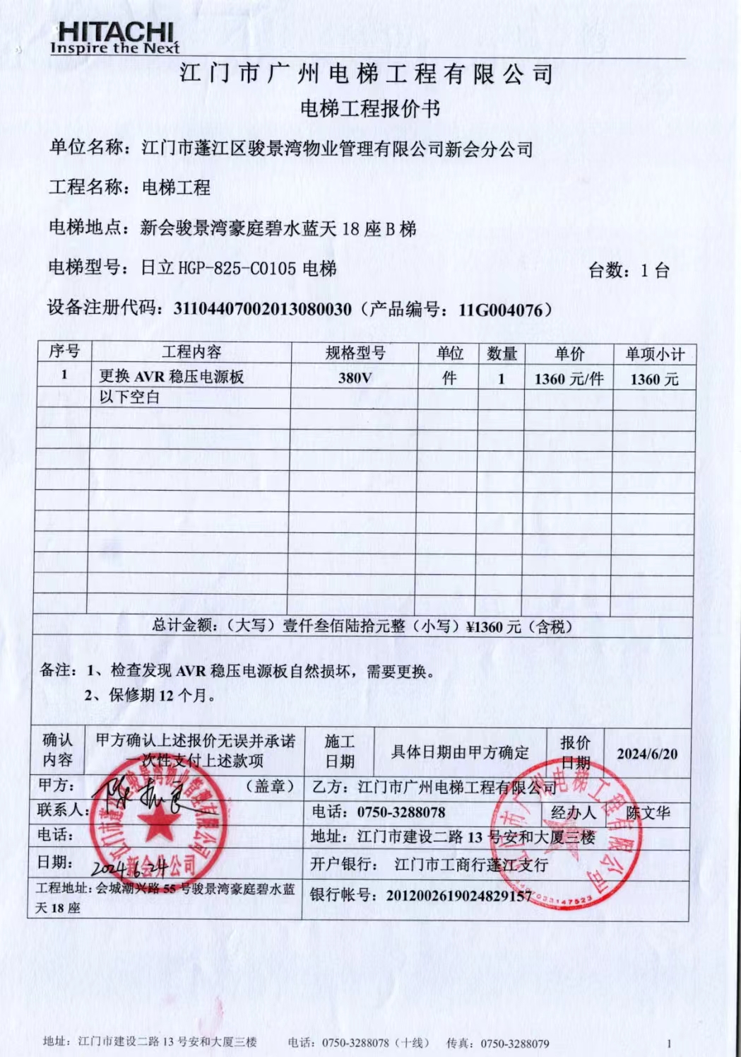 <td VALIGN="top" VALUES="" STYLE="border-width:0" BINDTYPE="0" ROWSPAN="19" COLSPAN="7" DATASOURCE="投票结果" ><font style="font-size:14pt;"><p style="white-space: normal; font-family: 宋体; line-height: 1.75em;">新会骏景湾豪庭碧水蓝天18座全体业主:</p><p style="white-space: normal; font-family: 宋体; line-height: 1.75em; text-indent: 2em;">本小区关于新会骏景湾豪庭碧水蓝天18座B梯梯11粤JX1796(20)更换AVR稳压电源板使用维修资金的投票的投票已表决结束,询异时间从2024年07月12日开始,投票询异公示期间,业主可通过微信查询自己的表决情况或可凭身份证件申请查询自己的表决情况;如公示的业主表决情况与查询的本人表决意见不一致的,可以以书面形式向投票组织机构申诉,投票组织机构予以纠正并重新公示表决结果。异议提出人对投票组织机构的处理仍有异议的,可以向街道办事处(镇人民政府)反映处理,涉及住宅专项维修资金的,可向属地住宅专项维修资金管理中心反映处理。</p><p style="white-space: normal;"><br/></p><p style="white-space: normal; font-family: 宋体; line-height: 1.75em;"><strong>附件:</strong></p><p style="white-space: normal; font-family: 宋体; line-height: 1.75em;"><strong>一、投票范围</strong></p><p style="white-space: normal; font-family: 宋体; line-height: 1.75em; text-indent: 2em;">新会骏景湾豪庭碧水蓝天18座</p><p style="white-space: normal; font-family: 宋体; line-height: 1.75em; text-indent: 2em;">总人数(专有部分人数之和):64</p><p style="white-space: normal; font-family: 宋体; line-height: 1.75em; text-indent: 2em;"><span style="font-family: 宋体, SimSun;"><span style="font-family: 宋体; text-indent: 32px;"><span style="font-family: 宋体; text-indent: 32px;">总户数:64</span></span></span></p><p style="white-space: normal; font-family: 宋体; line-height: 1.75em; text-indent: 2em;">建筑物总面积(专有部分面积之和):7023.70㎡</p><p style="white-space: normal; font-family: 宋体; line-height: 1.75em;"><strong>二、询异公示起止时间</strong></p><p dir="ltr" style="white-space: normal; font-family: 宋体; line-height: 1.75em; text-indent: 2em;"><span style="text-indent: 36px;">2024年07月12日至2024年07月18日</span></p><p style="white-space: normal; font-family: 宋体; line-height: 1.75em;"><strong>三、投票详细描述</strong></p><p style="white-space: normal; font-family: 宋体; line-height: 1.75em; text-indent: 2em;"><p> 新会骏景湾豪庭碧水蓝天18座B梯梯11粤JX1796(20)在运行时故障,经检查,发现是AVR稳压电源板自然损坏,为确保电梯安全运行,需更换。</p><p> 现对碧水蓝天18座B梯梯11粤JX1796(20)进行维修,工程维修预算金额为1360元,项目最终费用以施工合同签订金额为准。因已过保修期,维修费用由相关业主按建筑面积分摊,每平方约0.1936312元,详见公示附件。如业主手机不能正常通过微信投票,请联系物业公司进行线下纸质投票,物业电话:0750-6179992。</p><p><br/></p></p><p style="white-space: normal; font-family: 宋体; line-height: 1.75em;"><strong>四、计票规则</strong></p><p style="white-space: normal; font-family: 宋体; line-height: 1.75em; text-indent: 2em;">表决事项:使用建筑物及其附属设施的维修资金<br /><p style='text-align: left; font-family: 宋体; font-size: 16px; line-height: 1.75em; text-indent: 2em;'>计票规则:弃权票不并入其它项 未表决票不并入其它项</p></p><p style="white-space: normal; font-family: 宋体; line-height: 1.75em;"><strong>五、通过规则</strong></p><p style="white-space: normal; font-family: 宋体; line-height: 1.75em;"><strong><strong style="white-space: normal;"><span style="font-family: 宋体, SimSun;"> 根据《中华人民共和国民法典》第二百七十八条规定:业主共同决定事项,应当由专有部分面积占比三分之二以上的业主且人数占比三分之二以上的业主参与表决。</span></strong></strong></p><p style="white-space: normal; font-family: 宋体; line-height: 1.75em; text-indent: 2em;">表决事项:使用建筑物及其附属设施的维修资金<br /><p style='text-align: left; font-family: 宋体; font-size: 16px; line-height: 1.75em; text-indent: 2em;'>通过规则:双2/3以上参与表决,参与表决双过半同意</p></p><p style="white-space: normal; font-family: 宋体; line-height: 1.75em;"><strong>六、投票结果</strong></p><p style="white-space: normal; font-family: 宋体; line-height: 1.75em; text-indent: 2em;"><div id='resultTable'><table style='table-layout: fixed; font-size:12px; margin-top:10px' width='100%' border='0' cellspacing='0' cellpadding='0'><tr><td height='28' colspan='10' align='center' style='border: 1px solid #666'><strong style='font-size: 14px;'> 使用建筑物及其附属设施的维修资金</strong></td> </tr><tr id='trfirst'><td height='28' colspan='4' style='border-left: 1px solid #666; border-bottom: 1px solid #666'><strong> 申报单位:</strong> 江门市蓬江区骏景湾物业管理有限公司新会分公司</td><td colspan='3' style='border-left: 1px solid #666; border-bottom: 1px solid #666'><strong> 联系方式:</strong> </td><td colspan='3' style='border-left: 1px solid #666; border-bottom: 1px solid #666; border-right: 1px solid #666'><strong> 申报日期:</strong> 2024年6月26日 </td></tr><tr> <td height='28' colspan='5' style='border-left: 1px solid #666; border-bottom: 1px solid #666'><strong> 总人数(专有部分人数之和):</strong>64人 </td><td colspan='5' style='border-left: 1px solid #666; border-bottom: 1px solid #666; border-right: 1px solid #666'><strong> 建筑物总面积(专有部分面积之和):</strong>7023.70㎡ </td> </tr><tr><td height='28' colspan='10' bgcolor='#F3F3F3' style='border-left: 1px solid #666;border-bottom: 1px solid #666;border-right: 1px solid #666'><s