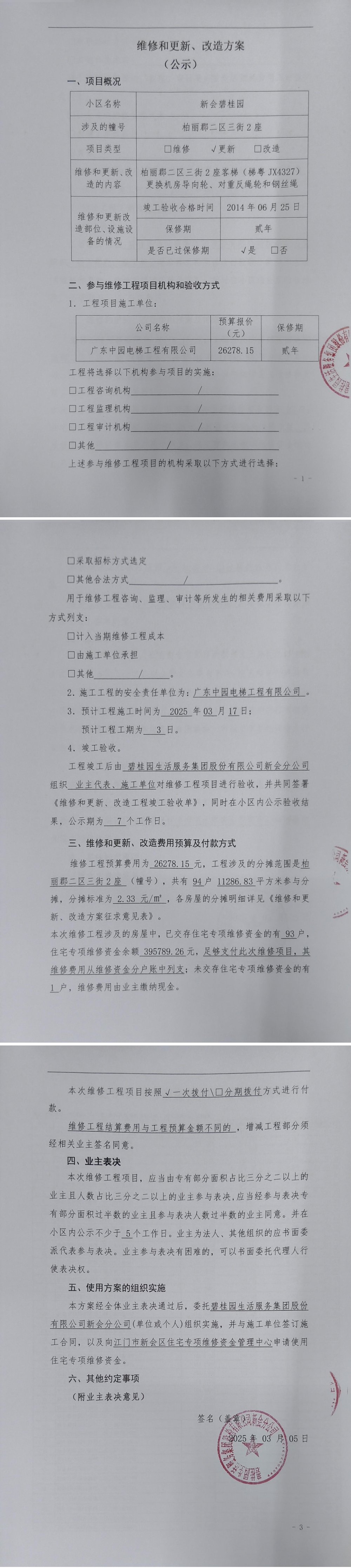 <td VALIGN="top" VALUES="" STYLE="border-width:0" BINDTYPE="0" ROWSPAN="17" COLSPAN="7" DATASOURCE="投票结果" ><font style=" font-family:方正小标宋简体;font-size:14pt;"><p style="line-height: 1.75em;"><span style="font-family: 宋体, SimSun;">各位尊敬的业主:</span><br/></p><p style="text-indent: 2em; line-height: 1.75em;"><span style="font-family: 宋体, SimSun;">根据法律法规的规定,本小区业主利用“江门市物业事项表决管理系统”已对本小区公共事务决策事项进行了表决,在经过7日的询异公示期后,未收到业主有效的异议。现将投票结果公告,并就产生的法律效力说明如下:</span></p><p style="line-height: 1.75em; text-indent: 0em;"><strong style="text-indent: 2em;"><span style="font-family: 宋体, SimSun;">一、投票范围</span></strong></p><p style="text-indent: 2em; line-height: 1.75em;"><span style="font-family: 宋体, SimSun;">新会碧桂园柏丽郡二区三街2座</span></p><p style="text-indent: 2em; line-height: 1.75em;"><span style="font-family: 宋体, SimSun;">总人数(专有部分人数之和):94</span></p><p style="text-indent: 2em; line-height: 1.75em;"><span style="font-family: 宋体, SimSun;"><span style="font-family: 宋体, SimSun; text-indent: 32px;"><span style="font-family: 宋体; text-indent: 32px;"><span style="font-family: 宋体; text-indent: 32px;">总户数:94</span></span></span></span></p><p style="text-indent: 2em; line-height: 1.75em;"><span style="font-family: 宋体, SimSun;">建筑物总面积(专有部分面积之和):11286.83㎡</span></p><p style="line-height: 1.75em;"><strong><span style="font-family: 宋体, SimSun;">二、投票结果公告时间</span></strong></p><p style="text-indent: 2em; line-height: 1.75em;"><span style="font-family: 宋体, SimSun;"><span style="font-family: 宋体, SimSun; text-indent: 32px;">从2025年03月18日开始</span></span></p><p style="line-height: 1.75em;"><strong><span style="font-family: 宋体, SimSun;">三、计票规则</span></strong></p><p style="text-indent: 2em; line-height: 1.75em;"><span style="font-family: 宋体, SimSun;">表决事项:使用建筑物及其附属设施的维修资金<br /><p style='font-family: 宋体, SimSun;line-height: 1.75em; text-indent: 2em;'>计票规则:弃权票不并入其它项&nbsp;&nbsp;&nbsp;&nbsp;未表决票不并入其它项</p></span></p><p style="line-height: 1.75em;"><strong><span style="font-family: 宋体, SimSun;">四、通过规则</span></strong></p><p style="line-height: 1.75em;"><strong><span style="font-family: 宋体, SimSun;">&nbsp; 根据《中华人民共和国民法典》第二百七十八条规定:业主共同决定事项,应当由专有部分面积占比三分之二以上的业主且人数占比三分之二以上的业主参与表决。</span></strong></p><p style="text-indent: 2em; line-height: 1.75em;"><span style="font-family: 宋体, SimSun;"><span style="font-family: 宋体, SimSun; text-indent: 32px;">表决事项:使用建筑物及其附属设施的维修资金<br /><p style='font-family: 宋体, SimSun;line-height: 1.75em; text-indent: 2em;'>通过规则:双2/3以上参与表决,参与表决双过半同意</p></span></span></p><p style="line-height: 1.75em;"><strong><span style="font-family: 宋体, SimSun;">五、投票结果</span></strong></p><p style="line-height: 1.75em; text-indent: 2em;"><span style="font-family: 宋体, SimSun; text-indent: 2em;"><div id='resultTable'><table style='table-layout: fixed; font-size:12px; margin-top:10px' width='100%' border='0' cellspacing='0' cellpadding='0'><tr><td height='28' colspan='10' align='center' style='border: 1px solid #666'><strong style='font-size: 14px;'> 使用建筑物及其附属设施的维修资金</strong></td> </tr><tr id='trfirst'><td height='28' colspan='4' style='border-left: 1px solid #666; border-bottom: 1px solid #666'><strong>&nbsp;申报单位:</strong> 碧桂园生活服务集团股份有限公司新会分公司</td><td colspan='3' style='border-left: 1px solid #666; border-bottom: 1px solid #666'><strong>&nbsp;联系方式:</strong> </td><td colspan='3' style='border-left: 1px solid #666; border-bottom: 1px solid #666; border-right: 1px solid #666'><strong>&nbsp;申报日期:</strong> 2025年3月4日 </td></tr><tr> <td height='28' colspan='5' style='border-left: 1px solid #666; border-bottom: 1px solid #666'><strong>&nbsp;列支总人数(专有部分人数之和):</strong>94人 </td><td colspan='5' style='border-left: 1px solid #666; border-bottom: 1px solid #666; border-right: 1px solid #666'><strong>&nbsp;列支建筑物总面积(专有部分面积之和):</strong>11286.83㎡ </td> </tr><tr><td height='28' colspan='10' bgcolor='#F3F3F3' style='border-left: 1px solid #666;border-bottom: 1px solid #666;border-right: 1px solid #666'><strong>&nbsp;参与表决人数及面积统计</strong></td></tr><tr><td height='28' colspan='5' style='border-left: 1px solid #666; border-bottom: 1px solid #666'><strong>&nbsp;参与表决人数:</strong>65人</td><td colspan='5' style='border-left: 1px solid #666; border-bottom: 1px solid #666; border-right: 1px solid #666'><strong>&nbsp;参与表决人数占总人数比例:</strong>69.15%</td></tr><tr><td height='28' colspan='5' style='border-left: 1px solid #666; border-bottom: 1px solid #666'><strong>&nbsp;参与表决面积:</strong>7676.70㎡</td><td colspan='5' style='border-left: 1px solid #666; border-bottom: 1px solid #666; border-right: 1px solid #666'><strong>&nbsp;参与表决面积占总面积比例:</strong>68.01%</td></tr><tr><td height='28' colspan='10' bgcolor='#F3F3F3' style='border-left: 1px solid #666; border-bottom: 1px solid #666;border-right: 1px solid #666'> <strong>&nbsp;参与表决同意人数及面积统计</strong></td> </tr><tr><td height='28' colspan='5' style='border-left: 1px solid #666; border-bottom: 1px solid #666'><strong>&nbsp;参与表决同意人数:</strong>65人 </td><td colspan='5' style='border-left: 1
