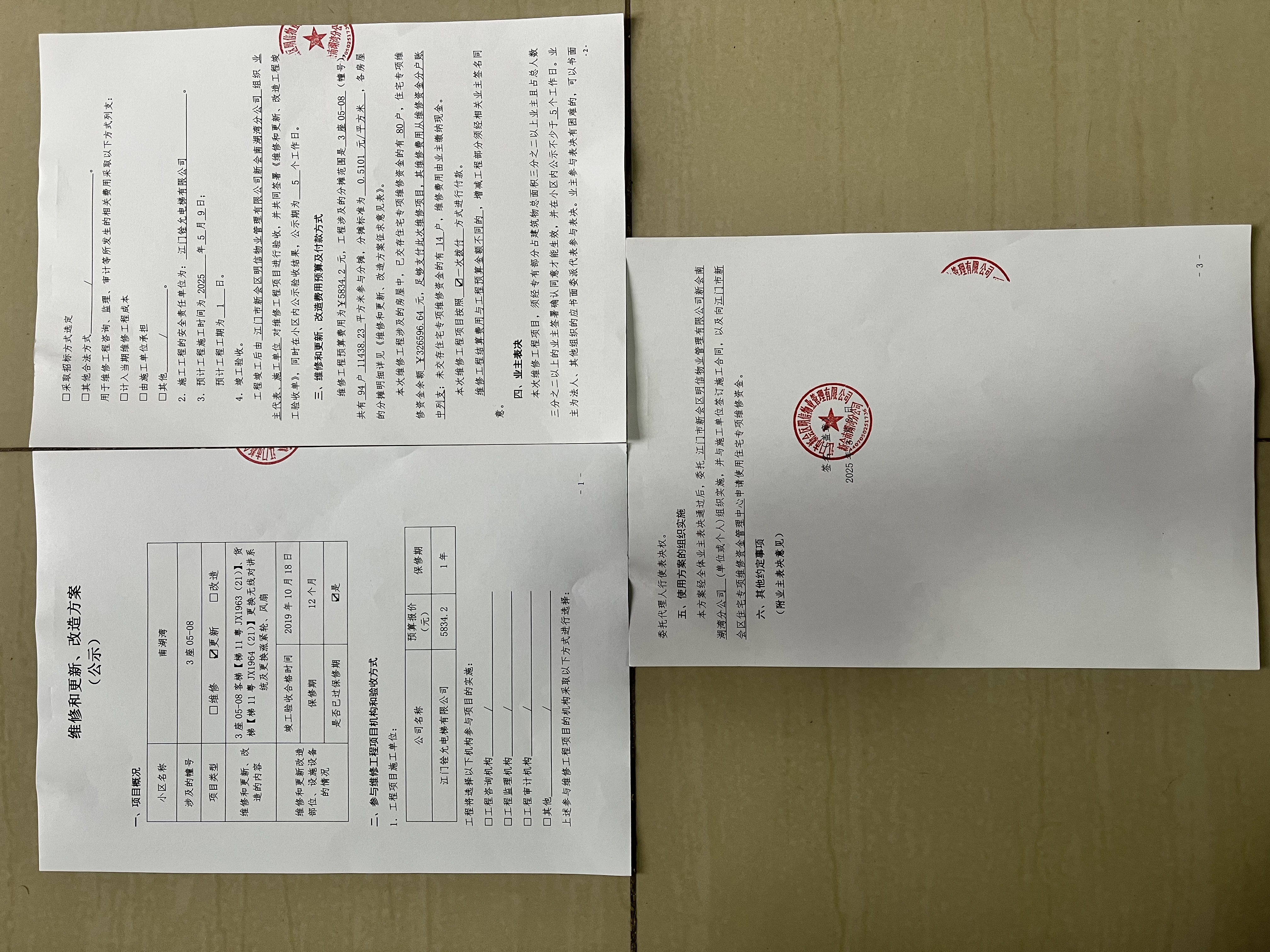 <td VALIGN="top" VALUES="" STYLE="border-width:0" BINDTYPE="0" ROWSPAN="19" COLSPAN="7" DATASOURCE="投票结果" ><font style="font-size:14pt;"><p style="white-space: normal; font-family: 宋体; line-height: 1.75em;">南湖湾会城民和北路1号3座全体业主:</p><p style="white-space: normal; font-family: 宋体; line-height: 1.75em; text-indent: 2em;">本小区关于南湖湾3座05-08客梯货梯更换无线对讲系统、涨紧轮和风扇使用维修资金的投票的投票已表决结束,询异时间从2025年06月04日开始,投票询异公示期间,业主可通过微信查询自己的表决情况或可凭身份证件申请查询自己的表决情况;如公示的业主表决情况与查询的本人表决意见不一致的,可以以书面形式向投票组织机构申诉,投票组织机构予以纠正并重新公示表决结果。异议提出人对投票组织机构的处理仍有异议的,可以向街道办事处(镇人民政府)反映处理,涉及住宅专项维修资金的,可向属地住宅专项维修资金管理中心反映处理。</p><p style="white-space: normal;"><br/></p><p style="white-space: normal; font-family: 宋体; line-height: 1.75em;"><strong>附件:</strong></p><p style="white-space: normal; font-family: 宋体; line-height: 1.75em;"><strong>一、投票范围</strong></p><p style="white-space: normal; font-family: 宋体; line-height: 1.75em; text-indent: 2em;">南湖湾会城民和北路1号3座</p><p style="white-space: normal; font-family: 宋体; line-height: 1.75em; text-indent: 2em;">总人数(专有部分人数之和):90</p><p style="white-space: normal; font-family: 宋体; line-height: 1.75em; text-indent: 2em;"><span style="font-family: 宋体, SimSun;"><span style="font-family: 宋体; text-indent: 32px;"><span style="font-family: 宋体; text-indent: 32px;">总户数:94</span></span></span></p><p style="white-space: normal; font-family: 宋体; line-height: 1.75em; text-indent: 2em;">建筑物总面积(专有部分面积之和):11438.23㎡</p><p style="white-space: normal; font-family: 宋体; line-height: 1.75em;"><strong>二、询异公示起止时间</strong></p><p dir="ltr" style="white-space: normal; font-family: 宋体; line-height: 1.75em; text-indent: 2em;"><span style="text-indent: 36px;">2025年06月04日至2025年06月14日</span></p><p style="white-space: normal; font-family: 宋体; line-height: 1.75em;"><strong>三、投票详细描述</strong></p><p style="white-space: normal; font-family: 宋体; line-height: 1.75em; text-indent: 2em;"><p style="margin-top:5px;margin-right:0;margin-bottom:5px;margin-left:0;text-indent:0"><span style="font-size: 14px; font-family: 宋体, SimSun;"><span style="font-size: 14px; letter-spacing: 0px;">小区</span><span style="font-size: 14px;"><span style="font-size: 14px;">3</span><span style="font-size: 14px;">座</span><span style="font-size: 14px;">05-8</span><span style="font-size: 14px;">客梯【梯</span><span style="font-size: 14px;">11</span><span style="font-size: 14px;">粤</span><span style="font-size: 14px;">JX1963</span><span style="font-size: 14px;">(</span><span style="font-size: 14px;">21</span><span style="font-size: 14px;">)】、货梯【梯</span><span style="font-size: 14px;">11</span><span style="font-size: 14px;">粤</span><span style="font-size: 14px;">JX1964</span><span style="font-size: 14px;">(</span><span style="font-size: 14px;">21</span><span style="font-size: 14px;">)】</span></span><span style="font-size: 14px; letter-spacing: 0px; text-wrap: wrap; background-color: rgb(255, 255, 255);">原三方通话系统已老化,不能呼叫监控中心,电梯公司在日常维保过程中,还发现</span><span style="font-size: 14px;">电梯底坑涨紧轮<span style="font-size: 14px; text-wrap: wrap;">锈蚀磨损</span>、轿厢风扇异响。</span></span></p><p><span style="font-size: 14px; font-family: 宋体, SimSun;"><span style="font-family: 宋体; letter-spacing: 0px; font-size: 14px;"> 现对</span><span style="font-family: 宋体; font-size: 14px;"><span style="font-size: 14px; font-family: Calibri;">3</span><span style="font-size: 14px; font-family: 宋体;">座</span><span style="font-size: 14px; font-family: Calibri;">05-8</span><span style="font-size: 14px; font-family: 宋体;">客梯【梯</span><span style="font-size: 14px; font-family: Calibri;">11</span><span style="font-size: 14px; font-family: 宋体;">粤</span><span style="font-size: 14px; font-family: Calibri;">JX1963</span><span style="font-size: 14px; font-family: 宋体;">(</span><span style="font-size: 14px; font-family: Calibri;">21</span><span style="font-size: 14px; font-family: 宋体;">)】、货梯【梯</span><span style="font-size: 14px; font-family: Calibri;">11</span><span style="font-size: 14px; font-family: 宋体;">粤</span><span style="font-size: 14px; font-family: Calibri;">JX1964</span><span style="font-size: 14px; font-family: 宋体;">(</span><span style="font-size: 14px; font-family: Calibri;">21</span><span style="font-size: 14px; font-family: 宋体;">)】存在故障的</span></span><span style="font-family: 宋体; letter-spacing: 0px; font-size: 14px;">无线对讲系统、涨紧轮和风扇进行更换,工程总的预算金额是¥</span><span style="font-size: 14px; font-family: Calibri;">5834.2</span><span style="font-family: 宋体; letter-spacing: 0px; font-size: 14px;">元,项目最终费用以施工合同签订金额为准。因已过保修期,维修费用由相关业主按建筑面积分摊,每平方约¥0.5101<span style="font-size: 14px; font-family: 宋体;">元,详见公示附件。如业主手机不能正常通过微信投票,请联系物业服务中心进行线下纸质投票,物业服务中心电话:0750-6682293。</span></span></span></p></p><p style="white-space: normal; font-family: 宋体; line-height: 1.75em;"><strong>四、计票规则</strong></p><p style="white-space: normal; font-family: 宋体; line-height: 1.75em; text-indent: 2em;">表决事