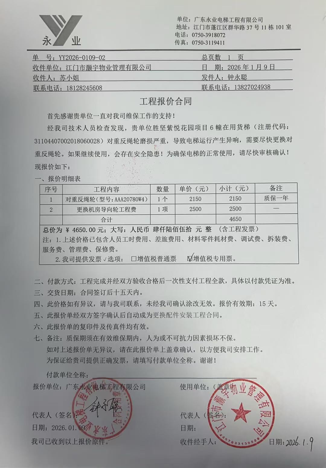 <td VALIGN="top" VALUES="" STYLE="border-width:0" BINDTYPE="0" ROWSPAN="17" COLSPAN="7" DATASOURCE="投票结果" ><font style=" font-family:方正小标宋简体;font-size:14pt;"><p style="line-height: 1.75em;"><span style="font-family: 宋体, SimSun;">各位尊敬的业主:</span><br/></p><p style="text-indent: 2em; line-height: 1.75em;"><span style="font-family: 宋体, SimSun;">根据法律法规的规定,本小区业主利用“江门市物业事项表决管理系统”已对本小区公共事务决策事项(<span style="font-family: 宋体; text-indent: 32px;">蓬江区胜坚紫悦花园6栋货梯更换对重反绳轮使用维修资金的投票</span>)进行了表决,在经过7日的询异公示期后,未收到业主有效的异议。现将投票结果公告,并就产生的法律效力说明如下:</span></p><p style="line-height: 1.75em; text-indent: 0em;"><strong style="text-indent: 2em;"><span style="font-family: 宋体, SimSun;">一、投票范围</span></strong></p><p style="text-indent: 2em; line-height: 1.75em;"><span style="font-family: 宋体, SimSun;">蓬江区胜坚紫悦花园蓬江区胜坚紫悦花园6幢</span></p><p style="text-indent: 2em; line-height: 1.75em;"><span style="font-family: 宋体, SimSun;">总人数(专有部分人数之和):88</span></p><p style="text-indent: 2em; line-height: 1.75em;"><span style="font-family: 宋体, SimSun;"><span style="font-family: 宋体, SimSun; text-indent: 32px;"><span style="font-family: 宋体; text-indent: 32px;"><span style="font-family: 宋体; text-indent: 32px;">总户数:96</span></span></span></span></p><p style="text-indent: 2em; line-height: 1.75em;"><span style="font-family: 宋体, SimSun;">建筑物总面积(专有部分面积之和):12374.39㎡</span></p><p style="line-height: 1.75em;"><strong><span style="font-family: 宋体, SimSun;">二、投票结果公告时间</span></strong></p><p style="text-indent: 2em; line-height: 1.75em;"><span style="font-family: 宋体, SimSun;"><span style="font-family: 宋体, SimSun; text-indent: 32px;">从2026年02月17日开始</span></span></p><p style="line-height: 1.75em;"><strong><span style="font-family: 宋体, SimSun;">三、计票规则</span></strong></p><p style="text-indent: 2em; line-height: 1.75em;"><span style="font-family: 宋体, SimSun;">表决事项:使用建筑物及其附属设施的维修资金<br /><p style='font-family: 宋体, SimSun;line-height: 1.75em; text-indent: 2em;'>计票规则:弃权票不并入其它项&nbsp;&nbsp;&nbsp;&nbsp;未表决票不并入其它项</p></span></p><p style="line-height: 1.75em;"><strong><span style="font-family: 宋体, SimSun;">四、通过规则</span></strong></p><p style="line-height: 1.75em;"><strong><span style="font-family: 宋体, SimSun;">&nbsp; 根据《中华人民共和国民法典》第二百七十八条规定:业主共同决定事项,应当由专有部分面积占比三分之二以上的业主且人数占比三分之二以上的业主参与表决。</span></strong></p><p style="text-indent: 2em; line-height: 1.75em;"><span style="font-family: 宋体, SimSun;"><span style="font-family: 宋体, SimSun; text-indent: 32px;">表决事项:使用建筑物及其附属设施的维修资金<br /><p style='font-family: 宋体, SimSun;line-height: 1.75em; text-indent: 2em;'>通过规则:双2/3以上参与表决,参与表决双过半同意</p></span></span></p><p style="line-height: 1.75em;"><strong><span style="font-family: 宋体, SimSun;">五、投票结果</span></strong></p><p style="line-height: 1.75em; text-indent: 2em;"><span style="font-family: 宋体, SimSun; text-indent: 2em;"><div id='resultTable'><table style='table-layout: fixed; font-size:12px; margin-top:10px' width='100%' border='0' cellspacing='0' cellpadding='0'><tr><td height='28' colspan='10' align='center' style='border: 1px solid #666'><strong style='font-size: 14px;'> 使用建筑物及其附属设施的维修资金</strong></td> </tr><tr id='trfirst'><td height='28' colspan='4' style='border-left: 1px solid #666; border-bottom: 1px solid #666'><strong>&nbsp;申报单位:</strong> 江门市灏宇物业管理有限公司</td><td colspan='3' style='border-left: 1px solid #666; border-bottom: 1px solid #666'><strong>&nbsp;联系方式:</strong> </td><td colspan='3' style='border-left: 1px solid #666; border-bottom: 1px solid #666; border-right: 1px solid #666'><strong>&nbsp;申报日期:</strong> 2026年1月12日 </td></tr><tr> <td height='28' colspan='5' style='border-left: 1px solid #666; border-bottom: 1px solid #666'><strong>&nbsp;列支总人数(专有部分人数之和):</strong>88人 </td><td colspan='5' style='border-left: 1px solid #666; border-bottom: 1px solid #666; border-right: 1px solid #666'><strong>&nbsp;列支建筑物总面积(专有部分面积之和):</strong>12374.39㎡ </td> </tr><tr><td height='28' colspan='10' bgcolor='#F3F3F3' style='border-left: 1px solid #666;border-bottom: 1px solid #666;border-right: 1px solid #666'><strong>&nbsp;参与表决人数及面积统计</strong></td></tr><tr><td height='28' colspan='5' style='border-left: 1px solid #666; border-bottom: 1px solid #666'><strong>&nbsp;参与表决人数:</strong>67人</td><td colspan='5' style='border-left: 1px solid #666; border-bottom: 1px solid #666; border-right: 1px solid #666'><strong>&nbsp;参与表决人数占总人数比例:</strong>76.14%</td></tr><tr><td height='28' colspan='5' style='border-left: 1px solid #666; border-bottom: 1px solid #666'><strong>&nbsp;参与表决面积:</strong>8506.74㎡</td><td colspan='5' style='border-left: 1px solid #666; border-bottom: 1px solid #666; border-right: 1px solid #666'><strong>&nbsp;参与表决面积占总面积比例:</strong>68.74%</td></tr><tr><td height='28' colspan='10' bgcolor='#F3F3F3' style='border-left: 1px solid #666; border-bottom: 1px solid #666;border-right: 1px solid #666'> <strong>&nbsp;参与表决同意人数及面积统计</strong></td> </tr><tr><td height='28' colspan='5' style='border-lef