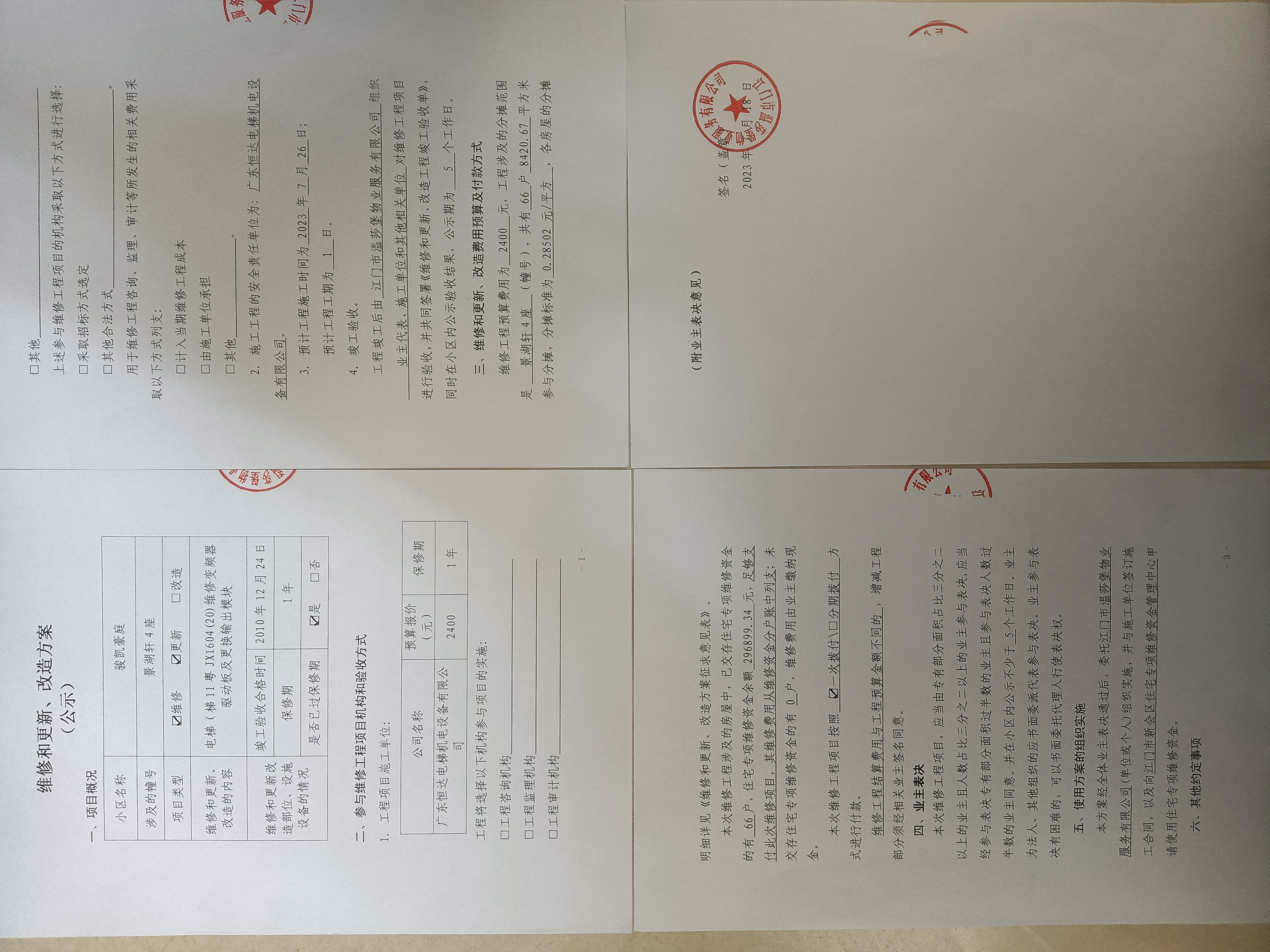 <td valign="top" values="" style="border-width:0" bindtype="0" rowspan="17" colspan="7" datasource="投票结果"><font style=" font-family:方正小标宋简体;font-size:14pt;"><p style="line-height: 1.75em;"><span style="font-family: 宋体, SimSun;">各位尊敬的业主:</span><br></p><p style="text-indent: 2em; line-height: 1.75em;"><span style="font-family: 宋体, SimSun;">根据法律法规的规定,本小区业主利用“物业公共事务决策系统”已对本小区公共事务决策事项进行了表决,在经过7日的询异公示期后,未收到业主有效的异议。现将投票结果公告,并就产生的法律效力说明如下:</span></p><p style="line-height: 1.75em; text-indent: 0em;"><strong style="text-indent: 2em;"><span style="font-family: 宋体, SimSun;">一、投票范围</span></strong></p><p style="text-indent: 2em; line-height: 1.75em;"><span style="font-family: 宋体, SimSun;">骏凯豪庭骏凯豪庭景湖轩4座</span></p><p style="text-indent: 2em; line-height: 1.75em;"><span style="font-family: 宋体, SimSun;">总人数(专有部分人数之和):66</span></p><p style="text-indent: 2em; line-height: 1.75em;"><span style="font-family: 宋体, SimSun;"><span style="font-family: 宋体, SimSun; text-indent: 32px;">总户数:66</span></span></p><p style="text-indent: 2em; line-height: 1.75em;"><span style="font-family: 宋体, SimSun;">建筑物总面积(专有部分面积之和):8420.67㎡</span></p><p style="line-height: 1.75em;"><strong><span style="font-family: 宋体, SimSun;">二、投票起止时间</span></strong></p><p style="text-indent: 2em; line-height: 1.75em;"><span style="font-family: 宋体, SimSun;">投票表决时间:从2023年07月20日到2023年08月04日止</span></p><p style="text-indent: 2em; line-height: 1.75em;"><span style="font-family: 宋体, SimSun;">投票询异公示时间:从2023年08月05日开始</span></p><p style="text-indent: 2em; line-height: 1.75em;"><span style="font-family: 宋体, SimSun;">投票结果通知公告时间:从2023年08月12日开始</span></p><p style="line-height: 1.75em;"><strong><span style="font-family: 宋体, SimSun;">三、计票规则</span></strong></p><p style="text-indent: 2em; line-height: 1.75em;"><span style="font-family: 宋体, SimSun;">表决事项:使用建筑物及其附属设施的维修资金<br></span></p><p style="font-family: 宋体, SimSun;line-height: 1.75em; text-indent: 2em;">计票规则:弃权票不并入其它项 未表决票不并入其它项</p><p></p><p style="line-height: 1.75em;"><strong><span style="font-family: 宋体, SimSun;">四、通过规则</span></strong></p><p style="text-indent: 2em; line-height: 1.75em;"><span style="font-family: 宋体, SimSun;"><span style="font-family: 宋体, SimSun; text-indent: 32px;">表决事项:使用建筑物及其附属设施的维修资金<br></span></span></p><p style="font-family: 宋体, SimSun;line-height: 1.75em; text-indent: 2em;">通过规则:参与表决专有部分面积过半数的业主且参与表决人数过半数的业主同意</p><p></p><p style="line-height: 1.75em;"><strong><span style="font-family: 宋体, SimSun;">五、投票结果</span></strong></p><p style="line-height: 1.75em; text-indent: 2em;"><span style="font-family: 宋体, SimSun; text-indent: 2em;"></span></p><div id="resultTable"><table style="table-layout: fixed; font-size:12px; margin-top:10px" width="100%" border="0" cellspacing="0" cellpadding="0"><tbody><tr><td height="28" colspan="10" align="center" style="border: 1px solid #666"><strong style="font-size: 14px;"> 使用建筑物及其附属设施的维修资金</strong></td> </tr><tr id="trfirst"><td height="28" colspan="4" style="border-left: 1px solid #666; border-bottom: 1px solid #666"><strong> 申报单位:</strong> 江门市温莎堡物业服务有限公司</td><td colspan="3" style="border-left: 1px solid #666; border-bottom: 1px solid #666"><strong> 联系方式:</strong> 07506392388 </td><td colspan="3" style="border-left: 1px solid #666; border-bottom: 1px solid #666; border-right: 1px solid #666"><strong> 申报日期:</strong> 2023年7月19日 </td></tr><tr> <td height="28" colspan="5" style="border-left: 1px solid #666; border-bottom: 1px solid #666"><strong> 总人数(专有部分人数之和):</strong>66人 </td><td colspan="5" style="border-left: 1px solid #666; border-bottom: 1px solid #666; border-right: 1px solid #666"><strong> 建筑物总面积(专有部分面积之和):</strong>8420.67㎡ </td> </tr><tr><td height="28" colspan="10" bgcolor="#F3F3F3" style="border-left: 1px solid #666;border-bottom: 1px solid #666;border-right: 1px solid #666"><strong> 参与人数及面积统计</strong></td></tr><tr><td height="28" colspan="5" style="border-left: 1px solid #666; border-bottom: 1px solid #666"><strong> 参与表决专有部分人数之和:</strong>47人</td><td colspan="5" style="border-left: 1px solid #666; border-bottom: 1px solid #666; border-right: 1px solid #666"><strong> 参与表决占有表决权总人数比例:</strong>71.21%</td></tr><tr><td height="28" colspan="5" style="border-left: 1px solid #666; border-bottom: 1px solid #666"><strong> 参与表决专有部分面积之和:</strong>5974.79㎡</td><td colspan="5" style="border-left: 1px solid #666; border-bottom: 1px solid #666; border-right: 1px solid #666"><strong> 参与表决占有表决权总面积比例:</strong>70.95%</td></tr><tr><td height="28" colspan="10" bgcolor="#F3F3F3" style="border-left: 1px solid #666; border-bottom: 1px solid #666;border-right: 1px solid #666"> <strong> 未参与人数及面积统计</strong></td> </tr><tr><td height="28" colspan="5" style="border-left: 1px solid #666; border-bottom: 1px solid #666"><strong> 未参与表决专有部分人数之和:</strong>19人 </td><td colspan="5" style="border-left: 1px solid #666; border-bottom: 1px solid #666; border-right: 1px solid #666"><strong> 未参与表决占有表决权总人数比例:</strong>28.79%</td></tr><tr><td he
