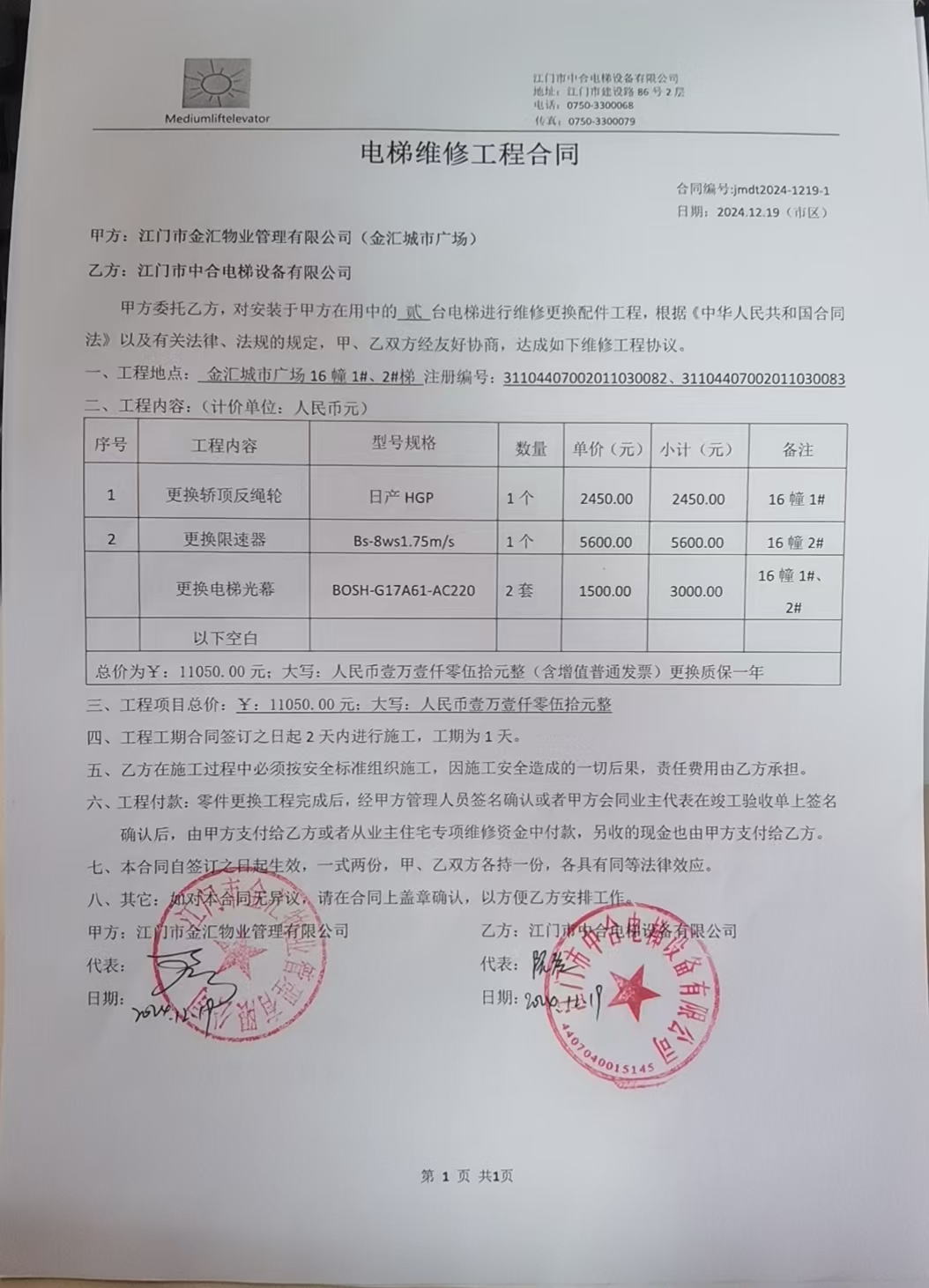 <td VALIGN="top" VALUES="" STYLE="border-width:0" BINDTYPE="0" ROWSPAN="19" COLSPAN="7" DATASOURCE="投票结果" ><font style="font-size:14pt;"><p style="white-space: normal; font-family: 宋体; line-height: 1.75em;">金汇城市广场蓬江区金汇城市广场16幢全体业主:</p><p style="white-space: normal; font-family: 宋体; line-height: 1.75em; text-indent: 2em;">本小区关于金汇城市广场关于16幢1#梯换轿顶反绳轮2#梯换限速器1#2#梯换光幕工程使用维修资金的投票的投票已表决结束,询异时间从2025年05月26日开始,投票询异公示期间,业主可通过微信查询自己的表决情况或可凭身份证件申请查询自己的表决情况;如公示的业主表决情况与查询的本人表决意见不一致的,可以以书面形式向投票组织机构申诉,投票组织机构予以纠正并重新公示表决结果。异议提出人对投票组织机构的处理仍有异议的,可以向街道办事处(镇人民政府)反映处理,涉及住宅专项维修资金的,可向属地住宅专项维修资金管理中心反映处理。</p><p style="white-space: normal;"><br/></p><p style="white-space: normal; font-family: 宋体; line-height: 1.75em;"><strong>附件:</strong></p><p style="white-space: normal; font-family: 宋体; line-height: 1.75em;"><strong>一、投票范围</strong></p><p style="white-space: normal; font-family: 宋体; line-height: 1.75em; text-indent: 2em;">金汇城市广场蓬江区金汇城市广场16幢</p><p style="white-space: normal; font-family: 宋体; line-height: 1.75em; text-indent: 2em;">总人数(专有部分人数之和):66</p><p style="white-space: normal; font-family: 宋体; line-height: 1.75em; text-indent: 2em;"><span style="font-family: 宋体, SimSun;"><span style="font-family: 宋体; text-indent: 32px;"><span style="font-family: 宋体; text-indent: 32px;">总户数:67</span></span></span></p><p style="white-space: normal; font-family: 宋体; line-height: 1.75em; text-indent: 2em;">建筑物总面积(专有部分面积之和):9404.65㎡</p><p style="white-space: normal; font-family: 宋体; line-height: 1.75em;"><strong>二、询异公示起止时间</strong></p><p dir="ltr" style="white-space: normal; font-family: 宋体; line-height: 1.75em; text-indent: 2em;"><span style="text-indent: 36px;">2025年05月26日至2025年06月05日</span></p><p style="white-space: normal; font-family: 宋体; line-height: 1.75em;"><strong>三、投票详细描述</strong></p><p style="white-space: normal; font-family: 宋体; line-height: 1.75em; text-indent: 2em;"><p style="font-family: "Helvetica Neue", Helvetica, Arial, sans-serif; font-size: 14px; white-space: normal; background-color: rgb(255, 255, 255);"><span style="font-family: 宋体, SimSun;">金汇城市广场16幢1#2#电梯突然出现故障,经检查,</span><span style="font-family: 宋体, SimSun;">由</span><span style="font-family: 宋体, SimSun;">于1#梯轿顶反绳轮、2#梯限速器、1#2#梯光幕原件出现老化而不能正常运行,已损坏及停止使用。</span></p><p style="font-family: "Helvetica Neue", Helvetica, Arial, sans-serif; font-size: 14px; white-space: normal; background-color: rgb(255, 255, 255);"><span style="font-family: 宋体;"> 现对<span style="background-image: initial; background-position: initial; background-size: initial; background-repeat: initial; background-attachment: initial; background-origin: initial; background-clip: initial;"><span style="font-family: Calibri;"></span><span style="font-family: 宋体, SimSun;"><span style="font-family: 宋体, SimSun; font-size: 14px; background-color: rgb(255, 255, 255);">16幢1#2#</span>电梯</span>进行更换改造</span>,工程维修预算金额为<span style="background-image: initial; background-position: initial; background-size: initial; background-repeat: initial; background-attachment: initial; background-origin: initial; background-clip: initial;"><span style="font-family: Calibri;">11050</span>元</span>,项目最终费用以施工合同签订金额为准。因已过保修期,维修费用由相关业主<span style="background-image: initial; background-position: initial; background-size: initial; background-repeat: initial; background-attachment: initial; background-origin: initial; background-clip: initial;">按建筑面积</span>分摊,<span style="background-image: initial; background-position: initial; background-size: initial; background-repeat: initial; background-attachment: initial; background-origin: initial; background-clip: initial;">每平方约<span style="font-family: Calibri;">1.17</span>元</span>,详见公示附件。如业主手机不能正常通过微信投票,请联系物业公司进行线下纸质投票,物业电话<span style="background-image: initial; background-position: initial; background-size: initial; background-repeat: initial; background-attachment: initial; background-origin: initial; background-clip: initial;">:<span style="font-family: Calibri;">0750-3909003</span></span>。</span></p></p><p style="white-space: normal; font-family: 宋体; line-height: 1.75em;"><strong>四、计票规则</strong></p><p style="white-space: normal; font-family: 宋体; line-height: 1.75em; text-indent: 2em;">表决事项:使用建筑物及其附属设施的维修资金<br /><p style='text-align: left; font-family: 宋体; font-size: 16px; line-height: 1.75em; text-indent: 2em;'>计票规则:弃权票不并入其它项 未表决票不并入其它项</p></p><p style="white-space: normal; font-family: 宋体; line-height: 1.75em;"><strong>五、通过规则</strong></p><p style="white-space: normal; font-family: 宋体; line-height: 1.75em;"><strong><strong style="white-space: normal;"><span style="font-family: 宋体, SimSun;"> 根据《中华人民共和国民法典》第二百七十八条规定:业主共同决定事项,应当由专有部分面积占比三分之二以上的业主且人数占比三分之二以上的业主参与表决。</s