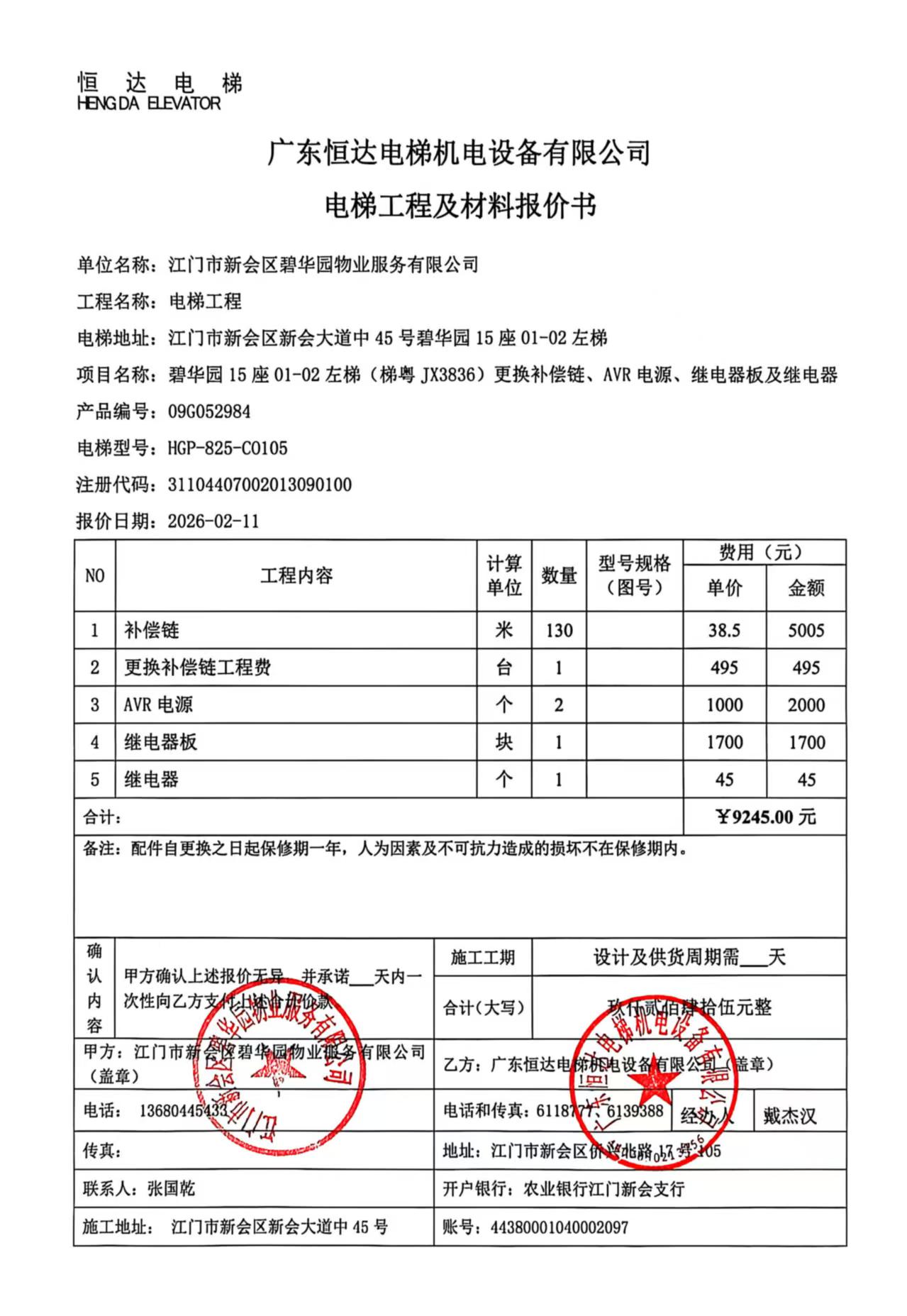 <td VALIGN="top" VALUES="" STYLE="border-width:0" BINDTYPE="0" ROWSPAN="17" COLSPAN="7" DATASOURCE="投票结果" ><font style=" font-family:方正小标宋简体;font-size:14pt;"><p style="line-height: 1.75em;"><span style="font-family: 宋体, SimSun;">各位尊敬的业主:</span><br/></p><p style="text-indent: 2em; line-height: 1.75em;"><span style="font-family: 宋体, SimSun;">根据法律法规的规定,本小区业主利用“江门市物业事项表决管理系统”已对本小区公共事务决策事项(<span style="font-family: 宋体; text-indent: 32px;">碧华园15座01-02单元电梯(梯粤JX3836)更换补偿链、AVR电源等配件使用维修资金的投票</span>)进行了表决,在经过7日的询异公示期后,未收到业主有效的异议。现将投票结果公告,并就产生的法律效力说明如下:</span></p><p style="line-height: 1.75em; text-indent: 0em;"><strong style="text-indent: 2em;"><span style="font-family: 宋体, SimSun;">一、投票范围</span></strong></p><p style="text-indent: 2em; line-height: 1.75em;"><span style="font-family: 宋体, SimSun;">碧华园碧华园15座</span></p><p style="text-indent: 2em; line-height: 1.75em;"><span style="font-family: 宋体, SimSun;">总人数(专有部分人数之和):33</span></p><p style="text-indent: 2em; line-height: 1.75em;"><span style="font-family: 宋体, SimSun;"><span style="font-family: 宋体, SimSun; text-indent: 32px;"><span style="font-family: 宋体; text-indent: 32px;"><span style="font-family: 宋体; text-indent: 32px;">总户数:34</span></span></span></span></p><p style="text-indent: 2em; line-height: 1.75em;"><span style="font-family: 宋体, SimSun;">建筑物总面积(专有部分面积之和):4268.77㎡</span></p><p style="line-height: 1.75em;"><strong><span style="font-family: 宋体, SimSun;">二、投票结果公告时间</span></strong></p><p style="text-indent: 2em; line-height: 1.75em;"><span style="font-family: 宋体, SimSun;"><span style="font-family: 宋体, SimSun; text-indent: 32px;">从2026年03月30日开始</span></span></p><p style="line-height: 1.75em;"><strong><span style="font-family: 宋体, SimSun;">三、计票规则</span></strong></p><p style="text-indent: 2em; line-height: 1.75em;"><span style="font-family: 宋体, SimSun;">表决事项:使用建筑及其附属设施的维修资金<br /><p style='font-family: 宋体, SimSun;line-height: 1.75em; text-indent: 2em;'>计票规则:弃权票不并入其它项&nbsp;&nbsp;&nbsp;&nbsp;未表决票不并入其它项</p></span></p><p style="line-height: 1.75em;"><strong><span style="font-family: 宋体, SimSun;">四、通过规则</span></strong></p><p style="line-height: 1.75em;"><strong><span style="font-family: 宋体, SimSun;">&nbsp; 根据《中华人民共和国民法典》第二百七十八条规定:业主共同决定事项,应当由专有部分面积占比三分之二以上的业主且人数占比三分之二以上的业主参与表决。</span></strong></p><p style="text-indent: 2em; line-height: 1.75em;"><span style="font-family: 宋体, SimSun;"><span style="font-family: 宋体, SimSun; text-indent: 32px;">表决事项:使用建筑及其附属设施的维修资金<br /><p style='font-family: 宋体, SimSun;line-height: 1.75em; text-indent: 2em;'>通过规则:双2/3以上参与表决,参与表决双过半同意</p></span></span></p><p style="line-height: 1.75em;"><strong><span style="font-family: 宋体, SimSun;">五、投票结果</span></strong></p><p style="line-height: 1.75em; text-indent: 2em;"><span style="font-family: 宋体, SimSun; text-indent: 2em;"><div id='resultTable'><table style='table-layout: fixed; font-size:12px; margin-top:10px' width='100%' border='0' cellspacing='0' cellpadding='0'><tr><td height='28' colspan='10' align='center' style='border: 1px solid #666'><strong style='font-size: 14px;'> 使用建筑及其附属设施的维修资金</strong></td> </tr><tr id='trfirst'><td height='28' colspan='4' style='border-left: 1px solid #666; border-bottom: 1px solid #666'><strong>&nbsp;申报单位:</strong> 江门市新会区碧华园物业服务有限公司</td><td colspan='3' style='border-left: 1px solid #666; border-bottom: 1px solid #666'><strong>&nbsp;联系方式:</strong> 6329973 </td><td colspan='3' style='border-left: 1px solid #666; border-bottom: 1px solid #666; border-right: 1px solid #666'><strong>&nbsp;申报日期:</strong> 2026年3月5日 </td></tr><tr> <td height='28' colspan='5' style='border-left: 1px solid #666; border-bottom: 1px solid #666'><strong>&nbsp;列支总人数(专有部分人数之和):</strong>33人 </td><td colspan='5' style='border-left: 1px solid #666; border-bottom: 1px solid #666; border-right: 1px solid #666'><strong>&nbsp;列支建筑物总面积(专有部分面积之和):</strong>4268.77㎡ </td> </tr><tr><td height='28' colspan='10' bgcolor='#F3F3F3' style='border-left: 1px solid #666;border-bottom: 1px solid #666;border-right: 1px solid #666'><strong>&nbsp;参与表决人数及面积统计</strong></td></tr><tr><td height='28' colspan='5' style='border-left: 1px solid #666; border-bottom: 1px solid #666'><strong>&nbsp;参与表决人数:</strong>24人</td><td colspan='5' style='border-left: 1px solid #666; border-bottom: 1px solid #666; border-right: 1px solid #666'><strong>&nbsp;参与表决人数占总人数比例:</strong>72.73%</td></tr><tr><td height='28' colspan='5' style='border-left: 1px solid #666; border-bottom: 1px solid #666'><strong>&nbsp;参与表决面积:</strong>3129.27㎡</td><td colspan='5' style='border-left: 1px solid #666; border-bottom: 1px solid #666; border-right: 1px solid #666'><strong>&nbsp;参与表决面积占总面积比例:</strong>73.31%</td></tr><tr><td height='28' colspan='10' bgcolor='#F3F3F3' style='border-left: 1px solid #666; border-bottom: 1px solid #666;border-right: 1px solid #666'> <strong>&nbsp;参与表决同意人数及面积统计</strong></td> </tr><tr><td height='28' colspan='5' style='border-left: 1