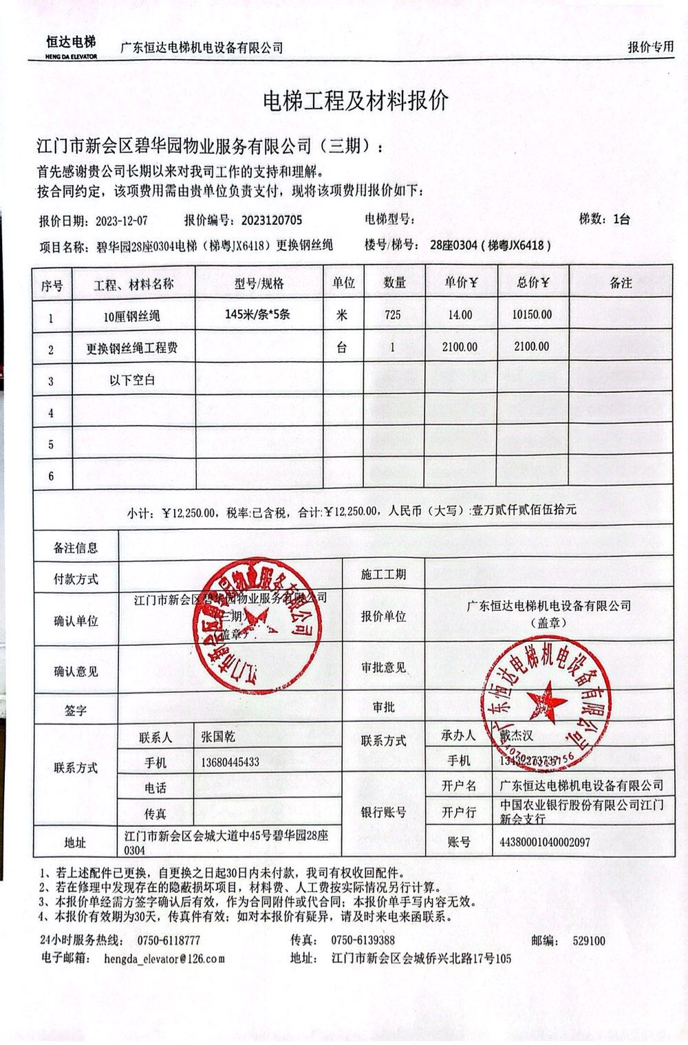 <td VALIGN="top" VALUES="" STYLE="border-width:0" BINDTYPE="0" ROWSPAN="19" COLSPAN="7" DATASOURCE="投票结果" ><font style="font-size:14pt;"><p style="white-space: normal; font-family: 宋体; line-height: 1.75em;">碧华园碧华园28座全体业主:</p><p style="white-space: normal; font-family: 宋体; line-height: 1.75em; text-indent: 2em;">本小区关于碧华园28座0304电梯(梯粤JX6418)更换钢丝绳使用维修资金的投票的投票已表决结束,询异时间从2024年01月09日开始,投票询异公示期间,业主可通过微信查询自己的表决情况或可凭身份证件申请查询自己的表决情况;如公示的业主表决情况与查询的本人表决意见不一致的,可以以书面形式向投票组织机构申诉,投票组织机构予以纠正并重新公示表决结果。异议提出人对投票组织机构的处理仍有异议的,可以向街道办事处(镇人民政府)反映处理,涉及住宅专项维修资金的,可向属地住宅专项维修资金管理中心反映处理。</p><p style="white-space: normal;"><br/></p><p style="white-space: normal; font-family: 宋体; line-height: 1.75em;"><strong>附件:</strong></p><p style="white-space: normal; font-family: 宋体; line-height: 1.75em;"><strong>一、投票范围</strong></p><p style="white-space: normal; font-family: 宋体; line-height: 1.75em; text-indent: 2em;">碧华园碧华园28座</p><p style="white-space: normal; font-family: 宋体; line-height: 1.75em; text-indent: 2em;">总人数(专有部分人数之和):34</p><p style="white-space: normal; font-family: 宋体; line-height: 1.75em; text-indent: 2em;"><span style="font-family: 宋体, SimSun;"><span style="font-family: 宋体; text-indent: 32px;"><span style="font-family: 宋体; text-indent: 32px;">总户数:34</span></span></span></p><p style="white-space: normal; font-family: 宋体; line-height: 1.75em; text-indent: 2em;">建筑物总面积(专有部分面积之和):4439.29㎡</p><p style="white-space: normal; font-family: 宋体; line-height: 1.75em;"><strong>二、询异公示起止时间</strong></p><p dir="ltr" style="white-space: normal; font-family: 宋体; line-height: 1.75em; text-indent: 2em;"><span style="text-indent: 36px;">2024年01月09日至2024年01月15日</span></p><p style="white-space: normal; font-family: 宋体; line-height: 1.75em;"><strong>三、投票详细描述</strong></p><p style="white-space: normal; font-family: 宋体; line-height: 1.75em; text-indent: 2em;"><p>本小区 28座0304电梯(梯粤JX6418),经检查,是由于钢丝绳绣蚀严重,且张力不均,已过保修期。现需申请使用维修资金对 28座0304电梯(梯粤JX6418)钢丝绳维修更新,工程维修预算金额为12250元,项目最终费用以施工合同签订金额为准。维修费用的分摊标准为2.76元/㎡ 按建筑面积分摊,详见公示附件。物业公司联系电话:0750-6329973。</p></p><p style="white-space: normal; font-family: 宋体; line-height: 1.75em;"><strong>四、计票规则</strong></p><p style="white-space: normal; font-family: 宋体; line-height: 1.75em; text-indent: 2em;">表决事项:使用建筑物及其附属设施的维修资金<br /><p style='text-align: left; font-family: 宋体; font-size: 16px; line-height: 1.75em; text-indent: 2em;'>计票规则:弃权票不并入其它项 未表决票不并入其它项</p></p><p style="white-space: normal; font-family: 宋体; line-height: 1.75em;"><strong>五、通过规则</strong></p><p style="white-space: normal; font-family: 宋体; line-height: 1.75em;"><strong><strong style="white-space: normal;"><span style="font-family: 宋体, SimSun;">&nbsp; 根据《中华人民共和国民法典》第二百七十八条规定:业主共同决定事项,应当由专有部分面积占比三分之二以上的业主且人数占比三分之二以上的业主参与表决。</span></strong></strong></p><p style="white-space: normal; font-family: 宋体; line-height: 1.75em; text-indent: 2em;">表决事项:使用建筑物及其附属设施的维修资金<br /><p style='text-align: left; font-family: 宋体; font-size: 16px; line-height: 1.75em; text-indent: 2em;'>通过规则:参与表决专有部分面积过半数的业主且参与表决人数过半数的业主同意</p></p><p style="white-space: normal; font-family: 宋体; line-height: 1.75em;"><strong>六、投票结果</strong></p><p style="white-space: normal; font-family: 宋体; line-height: 1.75em; text-indent: 2em;"><div id='resultTable'><table style='table-layout: fixed; font-size:12px; margin-top:10px' width='100%' border='0' cellspacing='0' cellpadding='0'><tr><td height='28' colspan='10' align='center' style='border: 1px solid #666'><strong style='font-size: 14px;'> 使用建筑物及其附属设施的维修资金</strong></td> </tr><tr id='trfirst'><td height='28' colspan='4' style='border-left: 1px solid #666; border-bottom: 1px solid #666'><strong> 申报单位:</strong> 江门市新会区碧华园物业服务有限公司</td><td colspan='3' style='border-left: 1px solid #666; border-bottom: 1px solid #666'><strong> 联系方式:</strong> 6329973 </td><td colspan='3' style='border-left: 1px solid #666; border-bottom: 1px solid #666; border-right: 1px solid #666'><strong> 申报日期:</strong> 2023年12月19日 </td></tr><tr> <td height='28' colspan='5' style='border-left: 1px solid #666; border-bottom: 1px solid #666'><strong> 总人数(专有部分人数之和):</strong>34人 </td><td colspan='5' style='border-left: 1px solid #666; border-bottom: 1px solid #666; border-right: 1px solid #666'><strong> 建筑物总面积(专有部分面积之和):</strong>4439.29㎡ </td> </tr><tr><td height='28' colspan='10' bgcolor='#F3F3F3' style='border-left: 1px solid #666;border-bottom: 1px solid #666;border-right: 1px solid #666'><strong> 参与人数及面积统计</strong></td></tr><tr><td height='28' colspan='5' style='border-left: 1px solid #666; border-bottom: 1px solid #666'><strong> 参与表决专