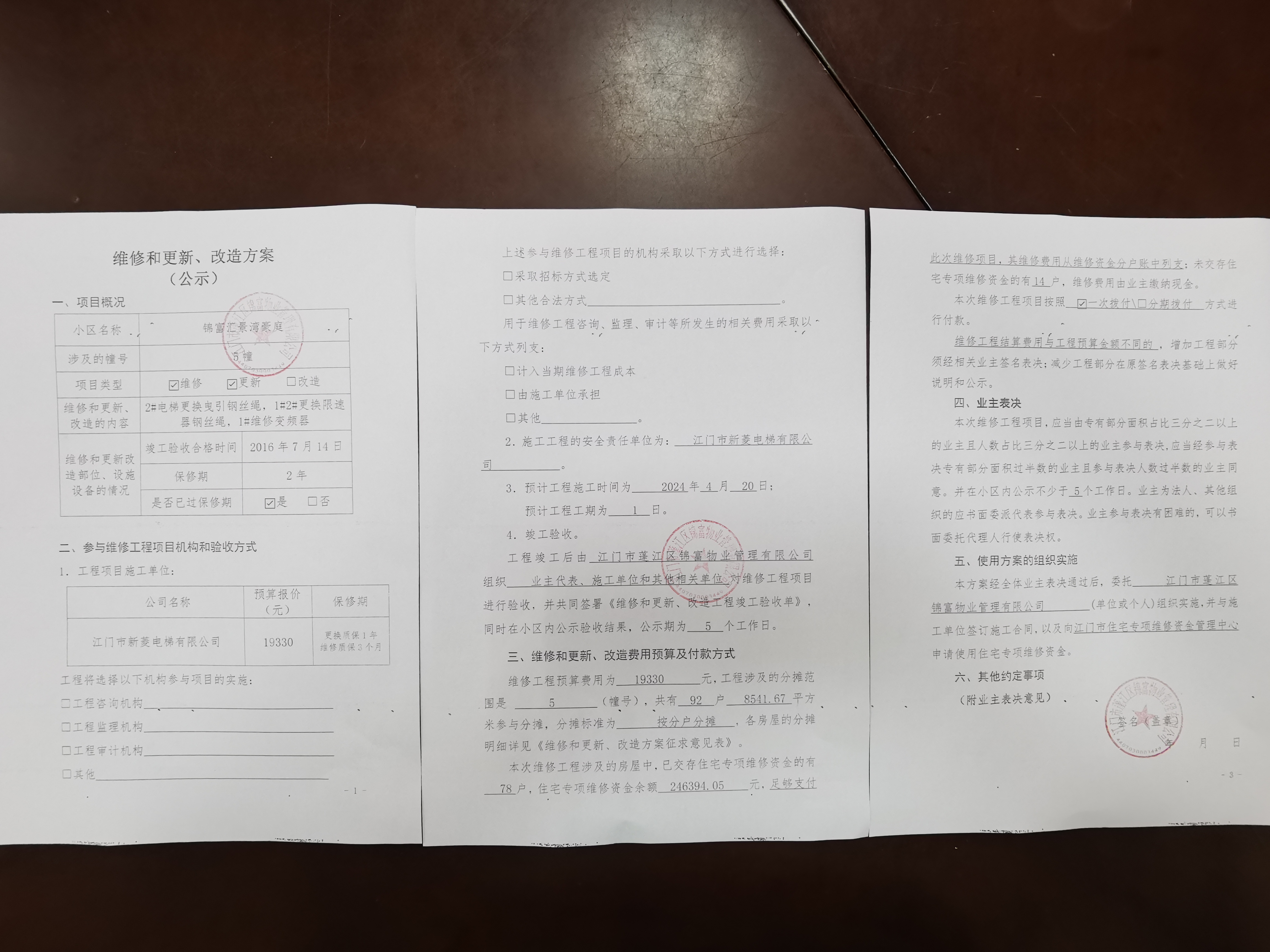 <td VALIGN="top" VALUES="" STYLE="border-width:0" BINDTYPE="0" ROWSPAN="17" COLSPAN="7" DATASOURCE="投票结果" ><font style=" font-family:方正小标宋简体;font-size:14pt;"><p style="line-height: 1.75em;"><span style="font-family: 宋体, SimSun;">各位尊敬的业主:</span><br/></p><p style="text-indent: 2em; line-height: 1.75em;"><span style="font-family: 宋体, SimSun;">根据法律法规的规定,本小区业主利用“江门市物业事项表决管理系统”已对本小区公共事务决策事项进行了表决,在经过7日的询异公示期后,未收到业主有效的异议。现将投票结果公告,并就产生的法律效力说明如下:</span></p><p style="line-height: 1.75em; text-indent: 0em;"><strong style="text-indent: 2em;"><span style="font-family: 宋体, SimSun;">一、投票范围</span></strong></p><p style="text-indent: 2em; line-height: 1.75em;"><span style="font-family: 宋体, SimSun;">江门市蓬江区锦富汇景湾豪庭蓬江区棠下镇锦富汇景湾豪庭5幢</span></p><p style="text-indent: 2em; line-height: 1.75em;"><span style="font-family: 宋体, SimSun;">总人数(专有部分人数之和):92</span></p><p style="text-indent: 2em; line-height: 1.75em;"><span style="font-family: 宋体, SimSun;"><span style="font-family: 宋体, SimSun; text-indent: 32px;"><span style="font-family: 宋体; text-indent: 32px;"><span style="font-family: 宋体; text-indent: 32px;">总户数:92</span></span></span></span></p><p style="text-indent: 2em; line-height: 1.75em;"><span style="font-family: 宋体, SimSun;">建筑物总面积(专有部分面积之和):8541.67㎡</span></p><p style="line-height: 1.75em;"><strong><span style="font-family: 宋体, SimSun;">二、投票结果公告时间</span></strong></p><p style="text-indent: 2em; line-height: 1.75em;"><span style="font-family: 宋体, SimSun;">从2024年04月30日开始</span></p><p style="line-height: 1.75em;"><strong><span style="font-family: 宋体, SimSun;">三、计票规则</span></strong></p><p style="text-indent: 2em; line-height: 1.75em;"><span style="font-family: 宋体, SimSun;">表决事项:使用建筑物及其附属设施的维修资金<br /><p style='font-family: 宋体, SimSun;line-height: 1.75em; text-indent: 2em;'>计票规则:弃权票不并入其它项&nbsp;&nbsp;&nbsp;&nbsp;未表决票不并入其它项</p></span></p><p style="line-height: 1.75em;"><strong><span style="font-family: 宋体, SimSun;">四、通过规则</span></strong></p><p style="line-height: 1.75em;"><strong><span style="font-family: 宋体, SimSun;">&nbsp; 根据《中华人民共和国民法典》第二百七十八条规定:业主共同决定事项,应当由专有部分面积占比三分之二以上的业主且人数占比三分之二以上的业主参与表决。</span></strong></p><p style="text-indent: 2em; line-height: 1.75em;"><span style="font-family: 宋体, SimSun;"><span style="font-family: 宋体, SimSun; text-indent: 32px;">表决事项:使用建筑物及其附属设施的维修资金<br /><p style='font-family: 宋体, SimSun;line-height: 1.75em; text-indent: 2em;'>通过规则:双2/3以上参与表决,参与表决双过半同意</p></span></span></p><p style="line-height: 1.75em;"><strong><span style="font-family: 宋体, SimSun;">五、投票结果</span></strong></p><p style="line-height: 1.75em; text-indent: 2em;"><span style="font-family: 宋体, SimSun; text-indent: 2em;"><div id='resultTable'><table style='table-layout: fixed; font-size:12px; margin-top:10px' width='100%' border='0' cellspacing='0' cellpadding='0'><tr><td height='28' colspan='10' align='center' style='border: 1px solid #666'><strong style='font-size: 14px;'> 使用建筑物及其附属设施的维修资金</strong></td> </tr><tr id='trfirst'><td height='28' colspan='4' style='border-left: 1px solid #666; border-bottom: 1px solid #666'><strong>&nbsp;申报单位:</strong> 江门市蓬江区锦富物业管理有限公司</td><td colspan='3' style='border-left: 1px solid #666; border-bottom: 1px solid #666'><strong>&nbsp;联系方式:</strong> 3598316 </td><td colspan='3' style='border-left: 1px solid #666; border-bottom: 1px solid #666; border-right: 1px solid #666'><strong>&nbsp;申报日期:</strong> 2024年4月11日 </td></tr><tr> <td height='28' colspan='5' style='border-left: 1px solid #666; border-bottom: 1px solid #666'><strong>&nbsp;列支总人数(专有部分人数之和):</strong>92人 </td><td colspan='5' style='border-left: 1px solid #666; border-bottom: 1px solid #666; border-right: 1px solid #666'><strong>&nbsp;列支建筑物总面积(专有部分面积之和):</strong>8541.67㎡ </td> </tr><tr><td height='28' colspan='10' bgcolor='#F3F3F3' style='border-left: 1px solid #666;border-bottom: 1px solid #666;border-right: 1px solid #666'><strong>&nbsp;参与表决人数及面积统计</strong></td></tr><tr><td height='28' colspan='5' style='border-left: 1px solid #666; border-bottom: 1px solid #666'><strong>&nbsp;参与表决人数:</strong>71人</td><td colspan='5' style='border-left: 1px solid #666; border-bottom: 1px solid #666; border-right: 1px solid #666'><strong>&nbsp;参与表决人数占总人数比例:</strong>77.17%</td></tr><tr><td height='28' colspan='5' style='border-left: 1px solid #666; border-bottom: 1px solid #666'><strong>&nbsp;参与表决面积:</strong>6581.29㎡</td><td colspan='5' style='border-left: 1px solid #666; border-bottom: 1px solid #666; border-right: 1px solid #666'><strong>&nbsp;参与表决面积占总面积比例:</strong>77.05%</td></tr><tr><td height='28' colspan='10' bgcolor='#F3F3F3' style='border-left: 1px solid #666; border-bottom: 1px solid #666;border-right: 1px solid #666'> <strong>&nbsp;参与表决同意人数及面积统计</strong></td> </tr><tr><td height='28' colspan='5' style='border-left: 1px solid #666; border-bottom: 1px solid #666'><strong>&nbsp;参与表决同意人数:</strong>71人 </td><td colspan='5' style='border-left: 1px solid #666; border-bottom: 1p