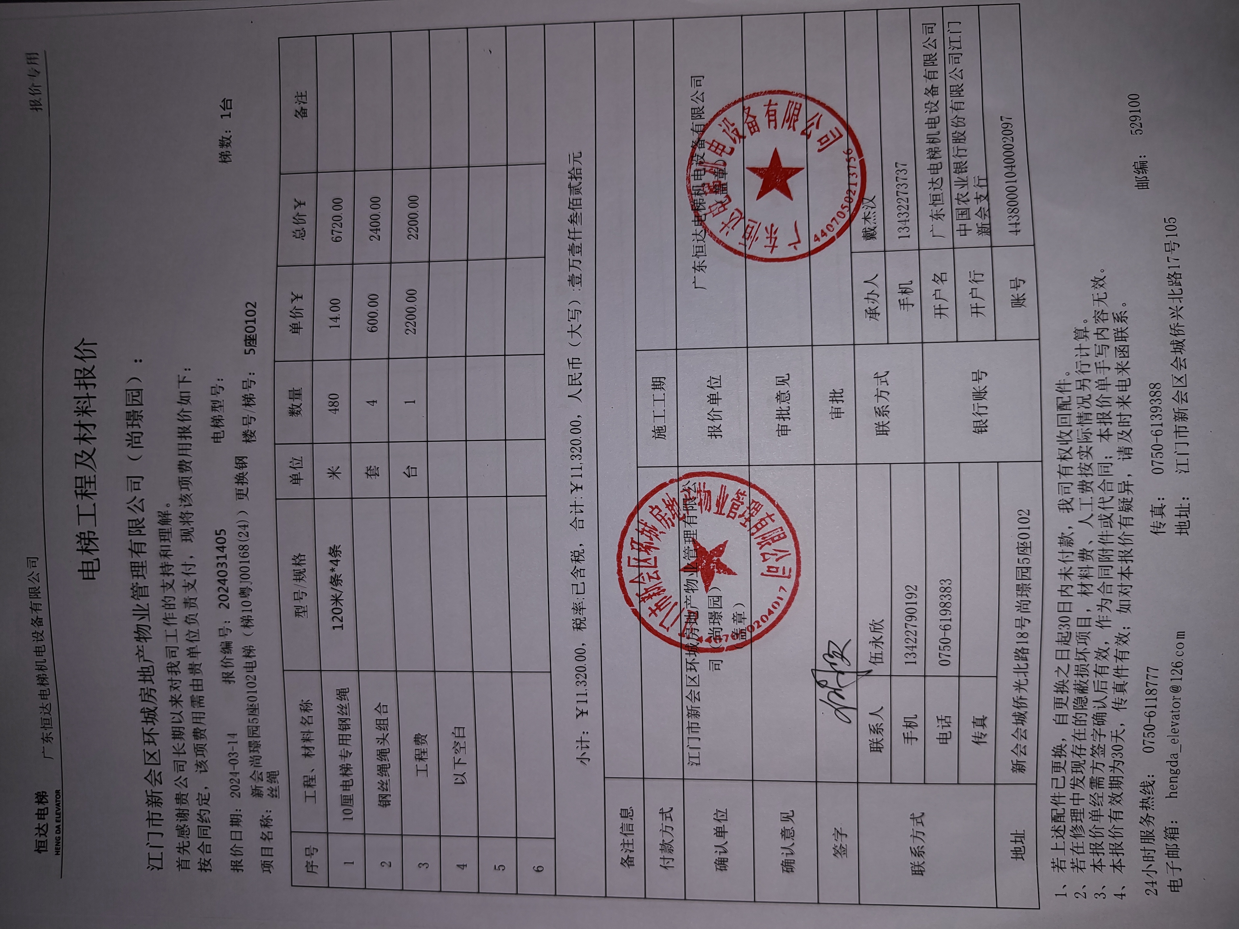 <td VALIGN="top" VALUES="" STYLE="border-width:0" BINDTYPE="0" ROWSPAN="19" COLSPAN="7" DATASOURCE="投票结果" ><font style="font-size:14pt;"><p style="white-space: normal; font-family: 宋体; line-height: 1.75em;">尚璟园尚璟园5座全体业主:</p><p style="white-space: normal; font-family: 宋体; line-height: 1.75em; text-indent: 2em;">本小区关于尚璟园5座0102电梯[梯10粤J00168(24)]更换钢丝绳使用维修资金的投票的投票已表决结束,询异时间从2024年03月19日开始,投票询异公示期间,业主可通过微信查询自己的表决情况或可凭身份证件申请查询自己的表决情况;如公示的业主表决情况与查询的本人表决意见不一致的,可以以书面形式向投票组织机构申诉,投票组织机构予以纠正并重新公示表决结果。异议提出人对投票组织机构的处理仍有异议的,可以向街道办事处(镇人民政府)反映处理,涉及住宅专项维修资金的,可向属地住宅专项维修资金管理中心反映处理。</p><p style="white-space: normal;"><br/></p><p style="white-space: normal; font-family: 宋体; line-height: 1.75em;"><strong>附件:</strong></p><p style="white-space: normal; font-family: 宋体; line-height: 1.75em;"><strong>一、投票范围</strong></p><p style="white-space: normal; font-family: 宋体; line-height: 1.75em; text-indent: 2em;">尚璟园尚璟园5座</p><p style="white-space: normal; font-family: 宋体; line-height: 1.75em; text-indent: 2em;">总人数(专有部分人数之和):20</p><p style="white-space: normal; font-family: 宋体; line-height: 1.75em; text-indent: 2em;"><span style="font-family: 宋体, SimSun;"><span style="font-family: 宋体; text-indent: 32px;"><span style="font-family: 宋体; text-indent: 32px;">总户数:20</span></span></span></p><p style="white-space: normal; font-family: 宋体; line-height: 1.75em; text-indent: 2em;">建筑物总面积(专有部分面积之和):2575.76㎡</p><p style="white-space: normal; font-family: 宋体; line-height: 1.75em;"><strong>二、询异公示起止时间</strong></p><p dir="ltr" style="white-space: normal; font-family: 宋体; line-height: 1.75em; text-indent: 2em;"><span style="text-indent: 36px;">2024年03月19日至2024年03月25日</span></p><p style="white-space: normal; font-family: 宋体; line-height: 1.75em;"><strong>三、投票详细描述</strong></p><p style="white-space: normal; font-family: 宋体; line-height: 1.75em; text-indent: 2em;"><p style="margin-top:5px;margin-right:0;margin-bottom:5px;margin-left: 0"><span style=";color:black;background:white">本小区</span><span style=";color:black;background:white">5</span><span style=";color:black;background:white">座</span><span style=";color:black;background:white">0102</span><span style=";color:black;background:white">[梯10粤J00168(24)]</span><span style=";color:black;background:white">电梯出现故障,经检查,是由于电梯钢丝绳爆股、损坏造成。现需申请使用维修资金对</span><span style=";color:black;background:white"></span><span style="background: white;">5</span><span style="background: white;">座</span><span style="background: white;">0102</span><span style="background: white;">[梯10粤J00168(24)]</span><span style=";color:black;background:white"></span><span style=";color:black;background:white">电梯的钢丝绳进行更换,工程维修预算金额为</span><span style=";color:black;background:white">11320.00</span><span style=";color:black;background:white">元,项目最终费用以施工合同签订金额为准。因已过保修期,维修费用由相关业主按分户分摊,共涉及</span><span style=";color:black;background:white">20</span><span style=";color:black;background:white">户,每户566.00元,详见公示附件。如业主手机不能正常通过微信投票,请联系物业公司进行线下纸质投票,物业公司联系电话:</span><span style=";color:black;background:white">0750-6198383</span><span style=";color:black;background:white">。</span></p></p><p style="white-space: normal; font-family: 宋体; line-height: 1.75em;"><strong>四、计票规则</strong></p><p style="white-space: normal; font-family: 宋体; line-height: 1.75em; text-indent: 2em;">表决事项:使用建筑物及其附属设施的维修资金<br /><p style='text-align: left; font-family: 宋体; font-size: 16px; line-height: 1.75em; text-indent: 2em;'>计票规则:弃权票不并入其它项 未表决票不并入其它项</p></p><p style="white-space: normal; font-family: 宋体; line-height: 1.75em;"><strong>五、通过规则</strong></p><p style="white-space: normal; font-family: 宋体; line-height: 1.75em;"><strong><strong style="white-space: normal;"><span style="font-family: 宋体, SimSun;"> 根据《中华人民共和国民法典》第二百七十八条规定:业主共同决定事项,应当由专有部分面积占比三分之二以上的业主且人数占比三分之二以上的业主参与表决。</span></strong></strong></p><p style="white-space: normal; font-family: 宋体; line-height: 1.75em; text-indent: 2em;">表决事项:使用建筑物及其附属设施的维修资金<br /><p style='text-align: left; font-family: 宋体; font-size: 16px; line-height: 1.75em; text-indent: 2em;'>通过规则:双2/3以上参与表决,参与表决双过半同意</p></p><p style="white-space: normal; font-family: 宋体; line-height: 1.75em;"><strong>六、投票结果</strong></p><p style="white-space: normal; font-family: 宋体; line-height: 1.75em; text-indent: 2em;"><div id='resultTable'><table style='table-layout: fixed; font-size:12px; margin-top:10px' width='100%' border='0' cellspacing='0' cellpadding='0'><tr><td height='28' colspan='10' align='center' style='border: 1px solid #666'><strong style='font-size: 14px;'> 使用建筑物及其附属设施的维修资金</strong></td> </tr><tr id='trfirst'><td height='28' colspan='4' style='border-left: 1px solid #666; border-bottom: 1px solid 