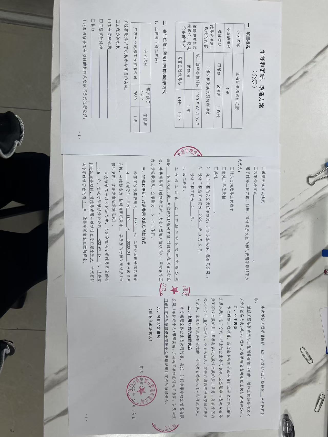 <td VALIGN="top" VALUES="" STYLE="border-width:0" BINDTYPE="0" ROWSPAN="17" COLSPAN="7" DATASOURCE="投票结果" ><font style=" font-family:方正小标宋简体;font-size:14pt;"><p style="line-height: 1.75em;"><span style="font-family: 宋体, SimSun;">各位尊敬的业主:</span><br/></p><p style="text-indent: 2em; line-height: 1.75em;"><span style="font-family: 宋体, SimSun;">根据法律法规的规定,本小区业主利用“江门市物业事项表决管理系统”已对本小区公共事务决策事项进行了表决,在经过7日的询异公示期后,未收到业主有效的异议。现将投票结果公告,并就产生的法律效力说明如下:</span></p><p style="line-height: 1.75em; text-indent: 0em;"><strong style="text-indent: 2em;"><span style="font-family: 宋体, SimSun;">一、投票范围</span></strong></p><p style="text-indent: 2em; line-height: 1.75em;"><span style="font-family: 宋体, SimSun;">江门市江海区怡景湾君铂花园江门市江海区怡景湾君铂花园4栋</span></p><p style="text-indent: 2em; line-height: 1.75em;"><span style="font-family: 宋体, SimSun;">总人数(专有部分人数之和):119</span></p><p style="text-indent: 2em; line-height: 1.75em;"><span style="font-family: 宋体, SimSun;"><span style="font-family: 宋体, SimSun; text-indent: 32px;"><span style="font-family: 宋体; text-indent: 32px;"><span style="font-family: 宋体; text-indent: 32px;">总户数:119</span></span></span></span></p><p style="text-indent: 2em; line-height: 1.75em;"><span style="font-family: 宋体, SimSun;">建筑物总面积(专有部分面积之和):12838.24㎡</span></p><p style="line-height: 1.75em;"><strong><span style="font-family: 宋体, SimSun;">二、投票结果公告时间</span></strong></p><p style="text-indent: 2em; line-height: 1.75em;"><span style="font-family: 宋体, SimSun;"><span style="font-family: 宋体, SimSun; text-indent: 32px;">从2025年03月08日开始</span></span></p><p style="line-height: 1.75em;"><strong><span style="font-family: 宋体, SimSun;">三、计票规则</span></strong></p><p style="text-indent: 2em; line-height: 1.75em;"><span style="font-family: 宋体, SimSun;">表决事项:使用建筑物及其附属设施的维修资金<br /><p style='font-family: 宋体, SimSun;line-height: 1.75em; text-indent: 2em;'>计票规则:弃权票不并入其它项&nbsp;&nbsp;&nbsp;&nbsp;未表决票不并入其它项</p></span></p><p style="line-height: 1.75em;"><strong><span style="font-family: 宋体, SimSun;">四、通过规则</span></strong></p><p style="line-height: 1.75em;"><strong><span style="font-family: 宋体, SimSun;">&nbsp; 根据《中华人民共和国民法典》第二百七十八条规定:业主共同决定事项,应当由专有部分面积占比三分之二以上的业主且人数占比三分之二以上的业主参与表决。</span></strong></p><p style="text-indent: 2em; line-height: 1.75em;"><span style="font-family: 宋体, SimSun;"><span style="font-family: 宋体, SimSun; text-indent: 32px;">表决事项:使用建筑物及其附属设施的维修资金<br /><p style='font-family: 宋体, SimSun;line-height: 1.75em; text-indent: 2em;'>通过规则:双2/3以上参与表决,参与表决双过半同意</p></span></span></p><p style="line-height: 1.75em;"><strong><span style="font-family: 宋体, SimSun;">五、投票结果</span></strong></p><p style="line-height: 1.75em; text-indent: 2em;"><span style="font-family: 宋体, SimSun; text-indent: 2em;"><div id='resultTable'><table style='table-layout: fixed; font-size:12px; margin-top:10px' width='100%' border='0' cellspacing='0' cellpadding='0'><tr><td height='28' colspan='10' align='center' style='border: 1px solid #666'><strong style='font-size: 14px;'> 使用建筑物及其附属设施的维修资金</strong></td> </tr><tr id='trfirst'><td height='28' colspan='4' style='border-left: 1px solid #666; border-bottom: 1px solid #666'><strong>&nbsp;申报单位:</strong> 江门市灏宇物业管理有限公司</td><td colspan='3' style='border-left: 1px solid #666; border-bottom: 1px solid #666'><strong>&nbsp;联系方式:</strong> </td><td colspan='3' style='border-left: 1px solid #666; border-bottom: 1px solid #666; border-right: 1px solid #666'><strong>&nbsp;申报日期:</strong> 2025年2月13日 </td></tr><tr> <td height='28' colspan='5' style='border-left: 1px solid #666; border-bottom: 1px solid #666'><strong>&nbsp;列支总人数(专有部分人数之和):</strong>119人 </td><td colspan='5' style='border-left: 1px solid #666; border-bottom: 1px solid #666; border-right: 1px solid #666'><strong>&nbsp;列支建筑物总面积(专有部分面积之和):</strong>12838.24㎡ </td> </tr><tr><td height='28' colspan='10' bgcolor='#F3F3F3' style='border-left: 1px solid #666;border-bottom: 1px solid #666;border-right: 1px solid #666'><strong>&nbsp;参与表决人数及面积统计</strong></td></tr><tr><td height='28' colspan='5' style='border-left: 1px solid #666; border-bottom: 1px solid #666'><strong>&nbsp;参与表决人数:</strong>88人</td><td colspan='5' style='border-left: 1px solid #666; border-bottom: 1px solid #666; border-right: 1px solid #666'><strong>&nbsp;参与表决人数占总人数比例:</strong>73.95%</td></tr><tr><td height='28' colspan='5' style='border-left: 1px solid #666; border-bottom: 1px solid #666'><strong>&nbsp;参与表决面积:</strong>9528.15㎡</td><td colspan='5' style='border-left: 1px solid #666; border-bottom: 1px solid #666; border-right: 1px solid #666'><strong>&nbsp;参与表决面积占总面积比例:</strong>74.22%</td></tr><tr><td height='28' colspan='10' bgcolor='#F3F3F3' style='border-left: 1px solid #666; border-bottom: 1px solid #666;border-right: 1px solid #666'> <strong>&nbsp;参与表决同意人数及面积统计</strong></td> </tr><tr><td height='28' colspan='5' style='border-left: 1px solid #666; border-bottom: 1px solid #666'><strong>&nbsp;参与表决同意人数:</strong>82人 </td><td colspan=