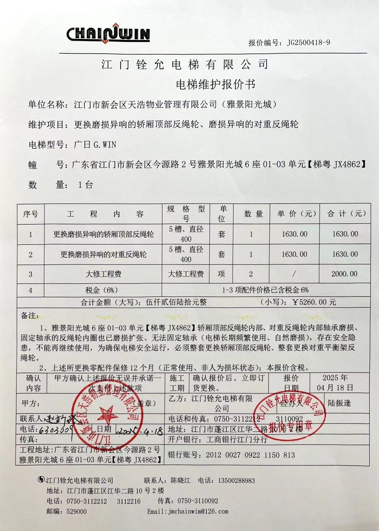 <td VALIGN="top" VALUES="" STYLE="border-width:0" BINDTYPE="0" ROWSPAN="17" COLSPAN="7" DATASOURCE="投票结果" ><font style=" font-family:方正小标宋简体;font-size:14pt;"><p style="line-height: 1.75em;"><span style="font-family: 宋体, SimSun;">各位尊敬的业主:</span><br/></p><p style="text-indent: 2em; line-height: 1.75em;"><span style="font-family: 宋体, SimSun;">根据法律法规的规定,本小区业主利用“江门市物业事项表决管理系统”已对本小区公共事务决策事项(<span style="font-family: 宋体; text-indent: 32px;">雅景阳光城6座01-03电梯【梯粤JX4862】更换轿厢顶部反绳轮、对重反绳轮使用维修资金的投票</span>)进行了表决,在经过7日的询异公示期后,未收到业主有效的异议。现将投票结果公告,并就产生的法律效力说明如下:</span></p><p style="line-height: 1.75em; text-indent: 0em;"><strong style="text-indent: 2em;"><span style="font-family: 宋体, SimSun;">一、投票范围</span></strong></p><p style="text-indent: 2em; line-height: 1.75em;"><span style="font-family: 宋体, SimSun;">雅景阳光城6座</span></p><p style="text-indent: 2em; line-height: 1.75em;"><span style="font-family: 宋体, SimSun;">总人数(专有部分人数之和):52</span></p><p style="text-indent: 2em; line-height: 1.75em;"><span style="font-family: 宋体, SimSun;"><span style="font-family: 宋体, SimSun; text-indent: 32px;"><span style="font-family: 宋体; text-indent: 32px;"><span style="font-family: 宋体; text-indent: 32px;">总户数:52</span></span></span></span></p><p style="text-indent: 2em; line-height: 1.75em;"><span style="font-family: 宋体, SimSun;">建筑物总面积(专有部分面积之和):4984.85㎡</span></p><p style="line-height: 1.75em;"><strong><span style="font-family: 宋体, SimSun;">二、投票结果公告时间</span></strong></p><p style="text-indent: 2em; line-height: 1.75em;"><span style="font-family: 宋体, SimSun;"><span style="font-family: 宋体, SimSun; text-indent: 32px;">从2025年05月15日开始</span></span></p><p style="line-height: 1.75em;"><strong><span style="font-family: 宋体, SimSun;">三、计票规则</span></strong></p><p style="text-indent: 2em; line-height: 1.75em;"><span style="font-family: 宋体, SimSun;">表决事项:使用建筑物及其附属设施的维修资金<br /><p style='font-family: 宋体, SimSun;line-height: 1.75em; text-indent: 2em;'>计票规则:弃权票不并入其它项&nbsp;&nbsp;&nbsp;&nbsp;未表决票不并入其它项</p></span></p><p style="line-height: 1.75em;"><strong><span style="font-family: 宋体, SimSun;">四、通过规则</span></strong></p><p style="line-height: 1.75em;"><strong><span style="font-family: 宋体, SimSun;">&nbsp; 根据《中华人民共和国民法典》第二百七十八条规定:业主共同决定事项,应当由专有部分面积占比三分之二以上的业主且人数占比三分之二以上的业主参与表决。</span></strong></p><p style="text-indent: 2em; line-height: 1.75em;"><span style="font-family: 宋体, SimSun;"><span style="font-family: 宋体, SimSun; text-indent: 32px;">表决事项:使用建筑物及其附属设施的维修资金<br /><p style='font-family: 宋体, SimSun;line-height: 1.75em; text-indent: 2em;'>通过规则:双2/3以上参与表决,参与表决双过半同意</p></span></span></p><p style="line-height: 1.75em;"><strong><span style="font-family: 宋体, SimSun;">五、投票结果</span></strong></p><p style="line-height: 1.75em; text-indent: 2em;"><span style="font-family: 宋体, SimSun; text-indent: 2em;"><div id='resultTable'><table style='table-layout: fixed; font-size:12px; margin-top:10px' width='100%' border='0' cellspacing='0' cellpadding='0'><tr><td height='28' colspan='10' align='center' style='border: 1px solid #666'><strong style='font-size: 14px;'> 使用建筑物及其附属设施的维修资金</strong></td> </tr><tr id='trfirst'><td height='28' colspan='4' style='border-left: 1px solid #666; border-bottom: 1px solid #666'><strong>&nbsp;申报单位:</strong> 江门市新会区天浩物业管理有限公司</td><td colspan='3' style='border-left: 1px solid #666; border-bottom: 1px solid #666'><strong>&nbsp;联系方式:</strong> </td><td colspan='3' style='border-left: 1px solid #666; border-bottom: 1px solid #666; border-right: 1px solid #666'><strong>&nbsp;申报日期:</strong> 2025年4月23日 </td></tr><tr> <td height='28' colspan='5' style='border-left: 1px solid #666; border-bottom: 1px solid #666'><strong>&nbsp;列支总人数(专有部分人数之和):</strong>52人 </td><td colspan='5' style='border-left: 1px solid #666; border-bottom: 1px solid #666; border-right: 1px solid #666'><strong>&nbsp;列支建筑物总面积(专有部分面积之和):</strong>4984.85㎡ </td> </tr><tr><td height='28' colspan='10' bgcolor='#F3F3F3' style='border-left: 1px solid #666;border-bottom: 1px solid #666;border-right: 1px solid #666'><strong>&nbsp;参与表决人数及面积统计</strong></td></tr><tr><td height='28' colspan='5' style='border-left: 1px solid #666; border-bottom: 1px solid #666'><strong>&nbsp;参与表决人数:</strong>37人</td><td colspan='5' style='border-left: 1px solid #666; border-bottom: 1px solid #666; border-right: 1px solid #666'><strong>&nbsp;参与表决人数占总人数比例:</strong>71.15%</td></tr><tr><td height='28' colspan='5' style='border-left: 1px solid #666; border-bottom: 1px solid #666'><strong>&nbsp;参与表决面积:</strong>3558.22㎡</td><td colspan='5' style='border-left: 1px solid #666; border-bottom: 1px solid #666; border-right: 1px solid #666'><strong>&nbsp;参与表决面积占总面积比例:</strong>71.38%</td></tr><tr><td height='28' colspan='10' bgcolor='#F3F3F3' style='border-left: 1px solid #666; border-bottom: 1px solid #666;border-right: 1px solid #666'> <strong>&nbsp;参与表决同意人数及面积统计</strong></td> </tr><tr><td height='28' colspan='5' style='border-