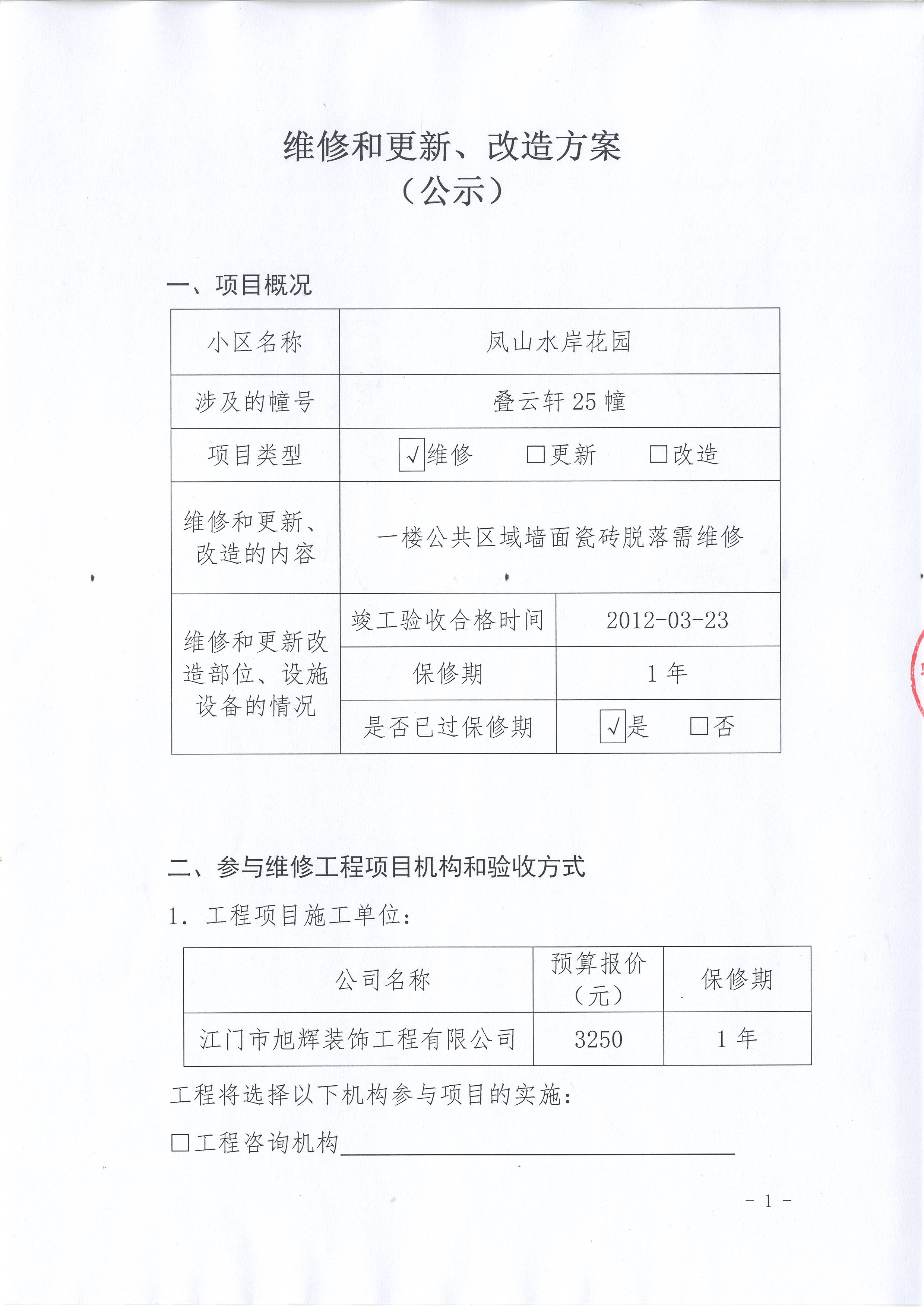 <div style="font-family: 宋体; font-size: 16px;"><p style="text-align: left;">各位尊敬的业主:</p><p style="text-align: left;"> 根据法律法规的规定,本小区业主利用“江门市物业管理公众服务平台”已对本小区公共事务决策事项进行了表决,在经过7日的询异公示期后,未收到业主有效的异议。现将投票结果公告,并就产生的法律效力说明如下:</p><p style="text-align: left;">一、投票范围</p><p style="text-align: left;"> 凤山水岸花园叠云轩25幢</p><p style="text-align: left;"> 总人数(专有部分人数之和):84</p><p style="text-align: left;"> 建筑物总面积(专有部分面积之和):10852.31㎡</p><p style="text-align: left;">二、投票起止时间</p><p style="text-align: left;"> 投票表决时间:从2018年02月05日到2018年03月28日止</p><p style="text-align: left;"> 投票询异公示时间:从2018年03月29日开始</p><p style="text-align: left;"> 投票结果通知公告时间:从2018年04月05日开始</p><p style="text-align: left;">三、投票结果 </p><p style="text-align: left;"><table style='table-layout: fixed; font-size:12px; margin-top:10px' width='100%' border='0' cellspacing='0' cellpadding='0'><tr><td height='28' colspan='10' align='center' style='border: 1px solid #666'><strong style='font-size: 14px;'> 叠云轩25幢一楼公共区域墙面瓷砖脱落需维修</strong></td> </tr><tr><td height='28' colspan='4' style='border-left: 1px solid #666; border-bottom: 1px solid #666'><strong> 申报单位:</strong> 江门市丰乐物业管理有限公司</td><td colspan='3' style='border-left: 1px solid #666; border-bottom: 1px solid #666'><strong> 联系方式:</strong> (0750) 3871336 3829717 </td><td colspan='3' style='border-left: 1px solid #666; border-bottom: 1px solid #666; border-right: 1px solid #666'><strong> 申报日期:</strong> 2018年2月2日 </td></tr><tr> <td height='28' colspan='5' style='border-left: 1px solid #666; border-bottom: 1px solid #666'><strong> 总人数(专有部分人数之和):</strong>84人 </td><td colspan='5' style='border-left: 1px solid #666; border-bottom: 1px solid #666; border-right: 1px solid #666'><strong> 建筑物总面积(专有部分面积之和):</strong>10852.31㎡ </td> </tr><tr><td height='28' colspan='10' bgcolor='#F3F3F3' style='border-left: 1px solid #666;border-bottom: 1px solid #666;border-right: 1px solid #666'><strong> 参与人数及面积统计</strong></td></tr><tr><td height='28' colspan='5' style='border-left: 1px solid #666; border-bottom: 1px solid #666'><strong> 参与表决专有部分人数之和:</strong>8人</td><td colspan='5' style='border-left: 1px solid #666; border-bottom: 1px solid #666; border-right: 1px solid #666'><strong> 参与表决占有表决权总人数比例:</strong>9.52%</td></tr><tr><td height='28' colspan='5' style='border-left: 1px solid #666; border-bottom: 1px solid #666'><strong> 参与表决专有部分面积之和:</strong>883.59㎡</td><td colspan='5' style='border-left: 1px solid #666; border-bottom: 1px solid #666; border-right: 1px solid #666'><strong> 参与表决占有表决权总面积比例:</strong>8.14%</td></tr><tr><td height='28' colspan='10' bgcolor='#F3F3F3' style='border-left: 1px solid #666; border-bottom: 1px solid #666;border-right: 1px solid #666'> <strong> 未参与人数及面积统计</strong></td> </tr><tr><td height='28' colspan='5' style='border-left: 1px solid #666; border-bottom: 1px solid #666'><strong> 未参与表决专有部分人数之和:</strong>76人 </td><td colspan='5' style='border-left: 1px solid #666; border-bottom: 1px solid #666; border-right: 1px solid #666'><strong> 未参与表决占有表决权总人数比例:</strong>90.48%</td></tr><tr><td height='28' colspan='5' style='border-left: 1px solid #666; border-bottom: 1px solid #666'><strong> 未参与表决专有部分面积之和:</strong>9968.72㎡</td><td colspan='5' style='border-left: 1px solid #666; border-bottom: 1px solid #666; border-right: 1px solid #666'><strong> 未参与表决占有表决权总面积比例:</strong>91.86% </td> </tr><tr><td width='6%' rowspan='2' align='center' bgcolor='#F3F3F3' style='border-left: 1px solid #666; border-bottom: 1px solid #666'><strong>序号</strong></td><td width='11%' rowspan='2' align='center' bgcolor='#F3F3F3' style='border-left: 1px solid #666; border-bottom: 1px solid #666'><strong>候选项</strong></td><td height='28' colspan='2' align='center' bgcolor='#F3F3F3' style='border-left: 1px solid #666; border-bottom: 1px solid #666'><strong>表决人数情况</strong> </td><td colspan='2' align='center' bgcolor='#F3F3F3' style='border-left: 1px solid #666; border-bottom: 1px solid #666'><strong>表决面积情况</strong></td><td colspan='4' align='center' bgcolor='#F3F3F3' style='border-left: 1px solid #666; border-bottom: 1px solid #666; border-right: 1px solid #666'><strong>表决方式</strong></td></tr><tr><td width='11%' height='28' align='center' bgcolor='#F3F3F3' style='border-left: 1px solid #666;border-bottom: 1px solid #666'><strong>参与表决<br />专有部分<br />人数之和</strong> </td><td width='11%' align='center' bgcolor='#F3F3F3' style='border-left: 1px solid #666; border-bottom: 1px solid #666'><strong>占有<br /> 表决权<br /> 总人数比例<br /> </strong></td><td width='11%' align='center' bgcolor='#F3F3F3' style='border-left: 1px solid #666; border-bottom: 1px solid #666'><strong>参与表决<br /> 专有部分<br /> 面积之和<br /> </strong></td><td width='13%' align='center' bgcolor='#F3F3F3' style='border-left: 1px solid #666; border-bottom: 1px solid #666'><strong>占有<br />表决权<br />总面积比例</strong></td><td width='9%' align='center' bgcolor='#F3F3F3' style='border-left: 1px solid #666; border-bottom: 1px solid #666'><strong>微信<br /> 投票<br /> </strong></td><td width='7%' align='center' bgcolor='#F3F3F3' style='border-left: 1px solid #666; border-bottom: 1px solid #666'><st