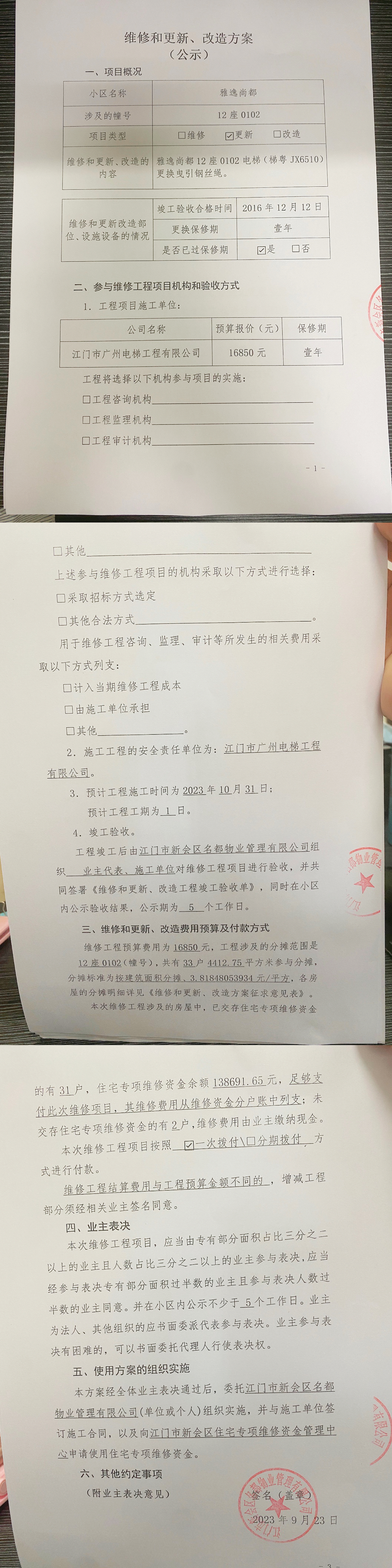 <td valign="top" values="" style="border-width:0" bindtype="0" rowspan="17" colspan="7" datasource="投票结果"><font style=" font-family:方正小标宋简体;font-size:14pt;"><p style="line-height: 1.75em;"><span style="font-family: 宋体, SimSun;">各位尊敬的业主:</span><br></p><p style="text-indent: 2em; line-height: 1.75em;"><span style="font-family: 宋体, SimSun;">根据法律法规的规定,本小区业主利用“江门市物业事项表决管理系统”已对本小区公共事务决策事项进行了表决,在经过7日的询异公示期后,未收到业主有效的异议。现将投票结果公告,并就产生的法律效力说明如下:</span></p><p style="line-height: 1.75em; text-indent: 0em;"><strong style="text-indent: 2em;"><span style="font-family: 宋体, SimSun;">一、投票范围</span></strong></p><p style="text-indent: 2em; line-height: 1.75em;"><span style="font-family: 宋体, SimSun;">雅逸尚都雅逸尚都12座</span></p><p style="text-indent: 2em; line-height: 1.75em;"><span style="font-family: 宋体, SimSun;">总人数(专有部分人数之和):33</span></p><p style="text-indent: 2em; line-height: 1.75em;"><span style="font-family: 宋体, SimSun;"><span style="font-family: 宋体, SimSun; text-indent: 32px;"><span style="font-family: 宋体; text-indent: 32px;">总户数:33</span></span></span></p><p style="text-indent: 2em; line-height: 1.75em;"><span style="font-family: 宋体, SimSun;">建筑物总面积(专有部分面积之和):4412.75㎡</span></p><p style="line-height: 1.75em;"><strong><span style="font-family: 宋体, SimSun;">二、投票结果公告时间</span></strong></p><p style="text-indent: 2em; line-height: 1.75em;"><span style="font-family: 宋体, SimSun;">从2023年10月31日开始</span></p><p style="line-height: 1.75em;"><strong><span style="font-family: 宋体, SimSun;">三、计票规则</span></strong></p><p style="text-indent: 2em; line-height: 1.75em;"><span style="font-family: 宋体, SimSun;">表决事项:使用建筑物及其附属设施的维修资金<br></span></p><p style="font-family: 宋体, SimSun;line-height: 1.75em; text-indent: 2em;">计票规则:弃权票不并入其它项 未表决票不并入其它项</p><p></p><p style="line-height: 1.75em;"><strong><span style="font-family: 宋体, SimSun;">四、通过规则</span></strong></p><p style="line-height: 1.75em;"><strong><span style="font-family: 宋体, SimSun;"> 根据《中华人民共和国民法典》第二百七十八条规定:业主共同决定事项,应当由专有部分面积占比三分之二以上的业主且人数占比三分之二以上的业主参与表决。</span></strong></p><p style="text-indent: 2em; line-height: 1.75em;"><span style="font-family: 宋体, SimSun;"><span style="font-family: 宋体, SimSun; text-indent: 32px;">表决事项:使用建筑物及其附属设施的维修资金<br></span></span></p><p style="font-family: 宋体, SimSun;line-height: 1.75em; text-indent: 2em;">通过规则:参与表决专有部分面积过半数的业主且参与表决人数过半数的业主同意</p><p></p><p style="line-height: 1.75em;"><strong><span style="font-family: 宋体, SimSun;">五、投票结果</span></strong></p><p style="line-height: 1.75em; text-indent: 2em;"><span style="font-family: 宋体, SimSun; text-indent: 2em;"></span></p><div id="resultTable"><table style="table-layout: fixed; font-size:12px; margin-top:10px" width="100%" border="0" cellspacing="0" cellpadding="0"><tbody><tr><td height="28" colspan="10" align="center" style="border: 1px solid #666"><strong style="font-size: 14px;"> 使用建筑物及其附属设施的维修资金</strong></td> </tr><tr id="trfirst"><td height="28" colspan="4" style="border-left: 1px solid #666; border-bottom: 1px solid #666"><strong> 申报单位:</strong> 江门市新会区名都物业管理有限公司</td><td colspan="3" style="border-left: 1px solid #666; border-bottom: 1px solid #666"><strong> 联系方式:</strong> 6609908 </td><td colspan="3" style="border-left: 1px solid #666; border-bottom: 1px solid #666; border-right: 1px solid #666"><strong> 申报日期:</strong> 2023年9月23日 </td></tr><tr> <td height="28" colspan="5" style="border-left: 1px solid #666; border-bottom: 1px solid #666"><strong> 总人数(专有部分人数之和):</strong>33人 </td><td colspan="5" style="border-left: 1px solid #666; border-bottom: 1px solid #666; border-right: 1px solid #666"><strong> 建筑物总面积(专有部分面积之和):</strong>4412.75㎡ </td> </tr><tr><td height="28" colspan="10" bgcolor="#F3F3F3" style="border-left: 1px solid #666;border-bottom: 1px solid #666;border-right: 1px solid #666"><strong> 参与人数及面积统计</strong></td></tr><tr><td height="28" colspan="5" style="border-left: 1px solid #666; border-bottom: 1px solid #666"><strong> 参与表决专有部分人数之和:</strong>24人</td><td colspan="5" style="border-left: 1px solid #666; border-bottom: 1px solid #666; border-right: 1px solid #666"><strong> 参与表决占有表决权总人数比例:</strong>72.73%</td></tr><tr><td height="28" colspan="5" style="border-left: 1px solid #666; border-bottom: 1px solid #666"><strong> 参与表决专有部分面积之和:</strong>3256.85㎡</td><td colspan="5" style="border-left: 1px solid #666; border-bottom: 1px solid #666; border-right: 1px solid #666"><strong> 参与表决占有表决权总面积比例:</strong>73.81%</td></tr><tr><td height="28" colspan="10" bgcolor="#F3F3F3" style="border-left: 1px solid #666; border-bottom: 1px solid #666;border-right: 1px solid #666"> <strong> 未参与人数及面积统计</strong></td> </tr><tr><td height="28" colspan="5" style="border-left: 1px solid #666; border-bottom: 1px solid #666"><strong> 未参与表决专有部分人数之和:</strong>9人 </td><td colspan="5" style="border-left: 1px solid #666; border-bottom: 1px solid #666; border-right: 1px solid #666"><strong> 未参与表决占有表决权总人数比例:</