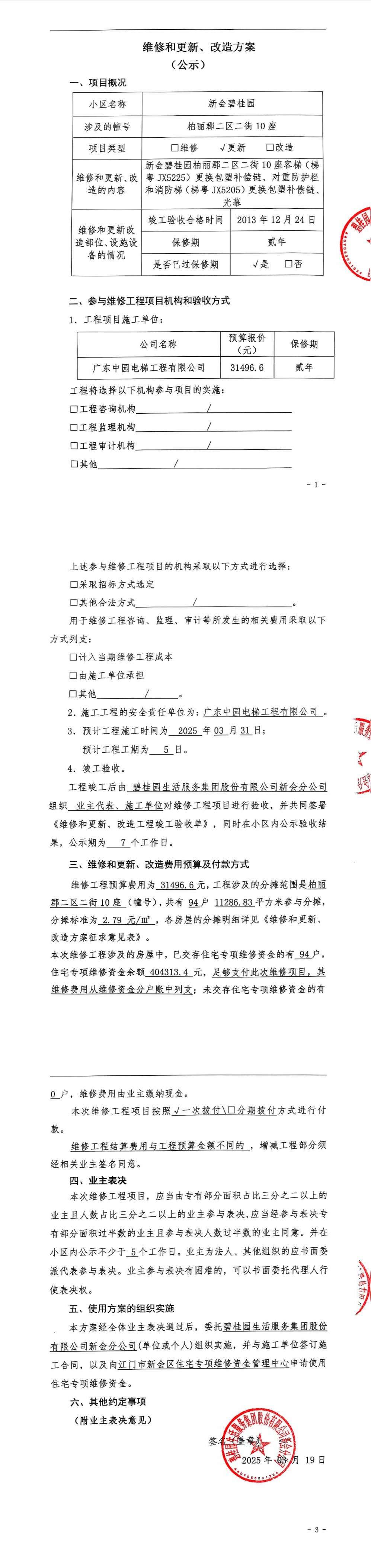 <td VALIGN="top" VALUES="" STYLE="border-width:0" BINDTYPE="0" ROWSPAN="17" COLSPAN="7" DATASOURCE="投票结果" ><font style=" font-family:方正小标宋简体;font-size:14pt;"><p style="line-height: 1.75em;"><span style="font-family: 宋体, SimSun;">各位尊敬的业主:</span><br/></p><p style="text-indent: 2em; line-height: 1.75em;"><span style="font-family: 宋体, SimSun;">根据法律法规的规定,本小区业主利用“江门市物业事项表决管理系统”已对本小区公共事务决策事项进行了表决,在经过7日的询异公示期后,未收到业主有效的异议。现将投票结果公告,并就产生的法律效力说明如下:</span></p><p style="line-height: 1.75em; text-indent: 0em;"><strong style="text-indent: 2em;"><span style="font-family: 宋体, SimSun;">一、投票范围</span></strong></p><p style="text-indent: 2em; line-height: 1.75em;"><span style="font-family: 宋体, SimSun;">新会碧桂园碧桂园柏丽郡二区二街10座</span></p><p style="text-indent: 2em; line-height: 1.75em;"><span style="font-family: 宋体, SimSun;">总人数(专有部分人数之和):94</span></p><p style="text-indent: 2em; line-height: 1.75em;"><span style="font-family: 宋体, SimSun;"><span style="font-family: 宋体, SimSun; text-indent: 32px;"><span style="font-family: 宋体; text-indent: 32px;"><span style="font-family: 宋体; text-indent: 32px;">总户数:94</span></span></span></span></p><p style="text-indent: 2em; line-height: 1.75em;"><span style="font-family: 宋体, SimSun;">建筑物总面积(专有部分面积之和):11286.83㎡</span></p><p style="line-height: 1.75em;"><strong><span style="font-family: 宋体, SimSun;">二、投票结果公告时间</span></strong></p><p style="text-indent: 2em; line-height: 1.75em;"><span style="font-family: 宋体, SimSun;"><span style="font-family: 宋体, SimSun; text-indent: 32px;">从2025年04月25日开始</span></span></p><p style="line-height: 1.75em;"><strong><span style="font-family: 宋体, SimSun;">三、计票规则</span></strong></p><p style="text-indent: 2em; line-height: 1.75em;"><span style="font-family: 宋体, SimSun;">表决事项:使用建筑物及其附属设施的维修资金<br /><p style='font-family: 宋体, SimSun;line-height: 1.75em; text-indent: 2em;'>计票规则:弃权票不并入其它项&nbsp;&nbsp;&nbsp;&nbsp;未表决票不并入其它项</p></span></p><p style="line-height: 1.75em;"><strong><span style="font-family: 宋体, SimSun;">四、通过规则</span></strong></p><p style="line-height: 1.75em;"><strong><span style="font-family: 宋体, SimSun;">&nbsp; 根据《中华人民共和国民法典》第二百七十八条规定:业主共同决定事项,应当由专有部分面积占比三分之二以上的业主且人数占比三分之二以上的业主参与表决。</span></strong></p><p style="text-indent: 2em; line-height: 1.75em;"><span style="font-family: 宋体, SimSun;"><span style="font-family: 宋体, SimSun; text-indent: 32px;">表决事项:使用建筑物及其附属设施的维修资金<br /><p style='font-family: 宋体, SimSun;line-height: 1.75em; text-indent: 2em;'>通过规则:双2/3以上参与表决,参与表决双过半同意</p></span></span></p><p style="line-height: 1.75em;"><strong><span style="font-family: 宋体, SimSun;">五、投票结果</span></strong></p><p style="line-height: 1.75em; text-indent: 2em;"><span style="font-family: 宋体, SimSun; text-indent: 2em;"><div id='resultTable'><table style='table-layout: fixed; font-size:12px; margin-top:10px' width='100%' border='0' cellspacing='0' cellpadding='0'><tr><td height='28' colspan='10' align='center' style='border: 1px solid #666'><strong style='font-size: 14px;'> 使用建筑物及其附属设施的维修资金</strong></td> </tr><tr id='trfirst'><td height='28' colspan='4' style='border-left: 1px solid #666; border-bottom: 1px solid #666'><strong>&nbsp;申报单位:</strong> 碧桂园生活服务集团股份有限公司新会分公司</td><td colspan='3' style='border-left: 1px solid #666; border-bottom: 1px solid #666'><strong>&nbsp;联系方式:</strong> </td><td colspan='3' style='border-left: 1px solid #666; border-bottom: 1px solid #666; border-right: 1px solid #666'><strong>&nbsp;申报日期:</strong> 2025年3月21日 </td></tr><tr> <td height='28' colspan='5' style='border-left: 1px solid #666; border-bottom: 1px solid #666'><strong>&nbsp;列支总人数(专有部分人数之和):</strong>94人 </td><td colspan='5' style='border-left: 1px solid #666; border-bottom: 1px solid #666; border-right: 1px solid #666'><strong>&nbsp;列支建筑物总面积(专有部分面积之和):</strong>11286.83㎡ </td> </tr><tr><td height='28' colspan='10' bgcolor='#F3F3F3' style='border-left: 1px solid #666;border-bottom: 1px solid #666;border-right: 1px solid #666'><strong>&nbsp;参与表决人数及面积统计</strong></td></tr><tr><td height='28' colspan='5' style='border-left: 1px solid #666; border-bottom: 1px solid #666'><strong>&nbsp;参与表决人数:</strong>67人</td><td colspan='5' style='border-left: 1px solid #666; border-bottom: 1px solid #666; border-right: 1px solid #666'><strong>&nbsp;参与表决人数占总人数比例:</strong>71.28%</td></tr><tr><td height='28' colspan='5' style='border-left: 1px solid #666; border-bottom: 1px solid #666'><strong>&nbsp;参与表决面积:</strong>7990.65㎡</td><td colspan='5' style='border-left: 1px solid #666; border-bottom: 1px solid #666; border-right: 1px solid #666'><strong>&nbsp;参与表决面积占总面积比例:</strong>70.80%</td></tr><tr><td height='28' colspan='10' bgcolor='#F3F3F3' style='border-left: 1px solid #666; border-bottom: 1px solid #666;border-right: 1px solid #666'> <strong>&nbsp;参与表决同意人数及面积统计</strong></td> </tr><tr><td height='28' colspan='5' style='border-left: 1px solid #666; border-bottom: 1px solid #666'><strong>&nbsp;参与表决同意人数:</strong>63人 </td><td colspan='5' style='bor