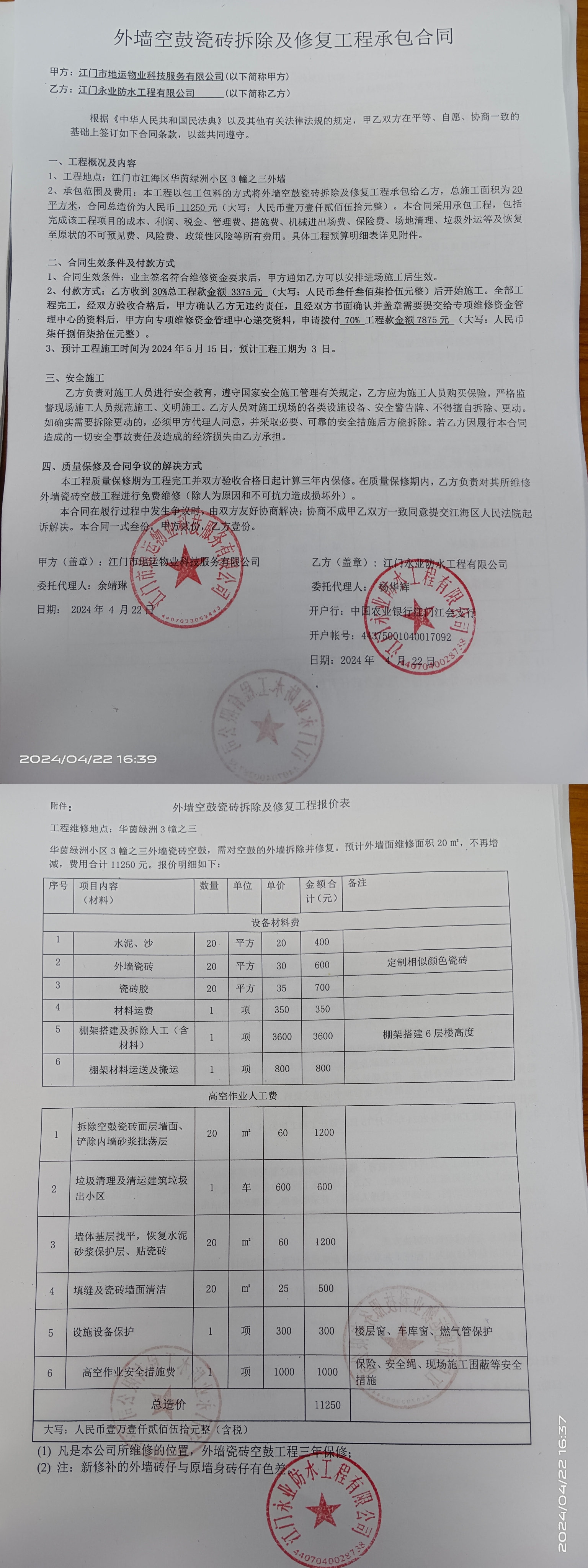 <td VALIGN="top" VALUES="" STYLE="border-width:0" BINDTYPE="0" ROWSPAN="19" COLSPAN="7" DATASOURCE="投票结果" ><font style="font-size:14pt;"><p style="white-space: normal; font-family: 宋体; line-height: 1.75em;">华茵绿洲江门市江海区华茵绿洲3幢全体业主:</p><p style="white-space: normal; font-family: 宋体; line-height: 1.75em; text-indent: 2em;">本小区关于华茵绿洲3幢之三外墙空鼓瓷砖拆除及修复工程的投票的投票已表决结束,询异时间从2024年05月14日开始,投票询异公示期间,业主可通过微信查询自己的表决情况或可凭身份证件申请查询自己的表决情况;如公示的业主表决情况与查询的本人表决意见不一致的,可以以书面形式向投票组织机构申诉,投票组织机构予以纠正并重新公示表决结果。异议提出人对投票组织机构的处理仍有异议的,可以向街道办事处(镇人民政府)反映处理,涉及住宅专项维修资金的,可向属地住宅专项维修资金管理中心反映处理。</p><p style="white-space: normal;"><br/></p><p style="white-space: normal; font-family: 宋体; line-height: 1.75em;"><strong>附件:</strong></p><p style="white-space: normal; font-family: 宋体; line-height: 1.75em;"><strong>一、投票范围</strong></p><p style="white-space: normal; font-family: 宋体; line-height: 1.75em; text-indent: 2em;">华茵绿洲江门市江海区华茵绿洲3幢</p><p style="white-space: normal; font-family: 宋体; line-height: 1.75em; text-indent: 2em;">总人数(专有部分人数之和):35</p><p style="white-space: normal; font-family: 宋体; line-height: 1.75em; text-indent: 2em;"><span style="font-family: 宋体, SimSun;"><span style="font-family: 宋体; text-indent: 32px;"><span style="font-family: 宋体; text-indent: 32px;">总户数:35</span></span></span></p><p style="white-space: normal; font-family: 宋体; line-height: 1.75em; text-indent: 2em;">建筑物总面积(专有部分面积之和):3446.54㎡</p><p style="white-space: normal; font-family: 宋体; line-height: 1.75em;"><strong>二、询异公示起止时间</strong></p><p dir="ltr" style="white-space: normal; font-family: 宋体; line-height: 1.75em; text-indent: 2em;"><span style="text-indent: 36px;">2024年05月14日至2024年05月20日</span></p><p style="white-space: normal; font-family: 宋体; line-height: 1.75em;"><strong>三、投票详细描述</strong></p><p style="white-space: normal; font-family: 宋体; line-height: 1.75em; text-indent: 2em;"><p><span style=";font-family:宋体;font-size:14px">华茵绿洲</span><span style=";font-family:宋体;font-size:14px"><span style="font-family:Calibri">3</span><span style="font-family:宋体">幢之三外墙瓷砖</span></span><span style="font-family: 宋体;letter-spacing: 0;font-size: 15px;background: rgb(255, 255, 255)"><span style="font-family:宋体">出现空鼓</span></span><span style=";font-family:宋体;font-size:14px">,</span><span style=";font-family:宋体;font-size:14px">存在安全隐患,万一瓷砖掉落砸到人,由<span style="font-size: 14px; text-wrap: wrap; font-family: Calibri;">3</span><span style="font-family: 宋体; font-size: 14px; text-wrap: wrap;">幢之三</span>整栋业主共同负责,长期未维修也可能导致房屋渗水严重和瓷砖空鼓扩大情况。建筑</span><span style=";font-family:宋体;font-size:14px">外墙</span><span style=";font-family:宋体;font-size:14px"><span style="font-family:宋体">投入使用时间已有</span><span style="font-family:Calibri">1</span></span><span style=";font-family:宋体;font-size:14px"><span style="font-family:Calibri">3</span></span><span style=";font-family:宋体;font-size:14px">年</span><span style=";font-family:宋体;font-size:14px">,</span><span style=";font-family:宋体;font-size:14px">已过保修期。现需申请使用维修资金对</span><span style=";font-family:宋体;font-size:14px"><span style="font-family:Calibri">3</span><span style="font-family:宋体">幢之三外墙</span></span><span style=";font-family:宋体;font-size:14px">进行维修,工程维修预算金额为</span><span style=";font-family:宋体;font-size:14px"><span style="font-family:Calibri">11250</span></span><span style=";font-family:宋体;font-size:14px">元,项目最终费用以施工合同签订金额为准。维修费用的分摊标准为按</span><span style=";font-family:宋体;font-size:14px">自定义</span><span style=";font-family:宋体;font-size:14px">分摊,每户分摊约</span><span style=";font-family:宋体;font-size:14px"><span style="font-family:Calibri">321.43</span></span><span style=";font-family:宋体;font-size:14px"><span style="font-family:宋体">元,详见公示附件。如业主手机不能正常通过维修投票,请联系物业公司进行线下纸质投票,物业电话:</span><span style="font-family:Calibri">18924686903</span><span style="font-family:宋体">。</span></span></p><p><br/></p></p><p style="white-space: normal; font-family: 宋体; line-height: 1.75em;"><strong>四、计票规则</strong></p><p style="white-space: normal; font-family: 宋体; line-height: 1.75em; text-indent: 2em;">表决事项:使用建筑物及其附属设施的维修资金<br /><p style='text-align: left; font-family: 宋体; font-size: 16px; line-height: 1.75em; text-indent: 2em;'>计票规则:弃权票不并入其它项 未表决票不并入其它项</p></p><p style="white-space: normal; font-family: 宋体; line-height: 1.75em;"><strong>五、通过规则</strong></p><p style="white-space: normal; font-family: 宋体; line-height: 1.75em;"><strong><strong style="white-space: normal;"><span style="font-family: 宋体, SimSun;"> 根据《中华人民共和国民法典》第二百七十八条规定:业主共同决定事项,应当由专有部分面积占比三分之二以上的业主且人数占比三分之二以上的业主参与表决。</span></strong></strong></p><p style="white-space: normal; font-family
