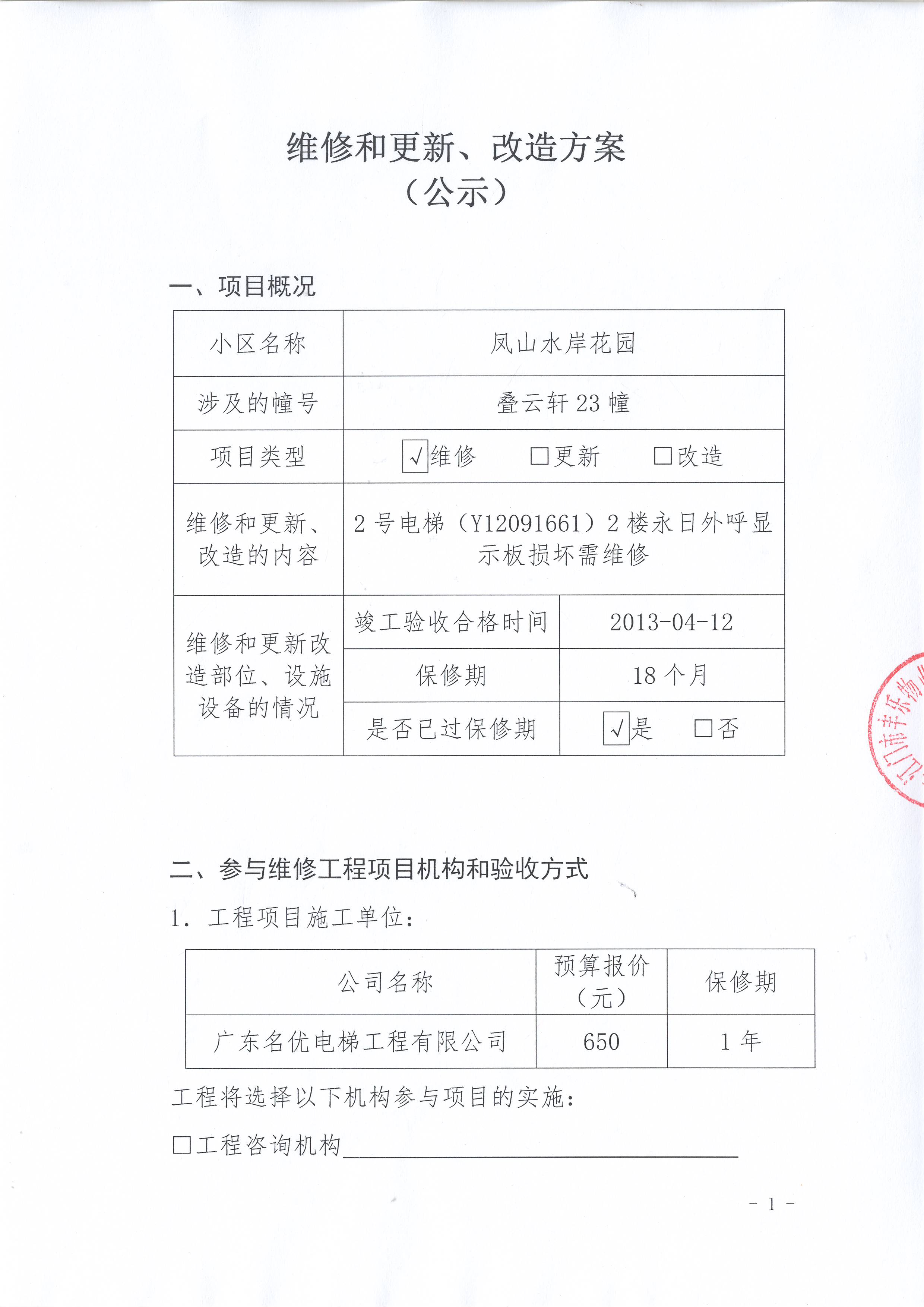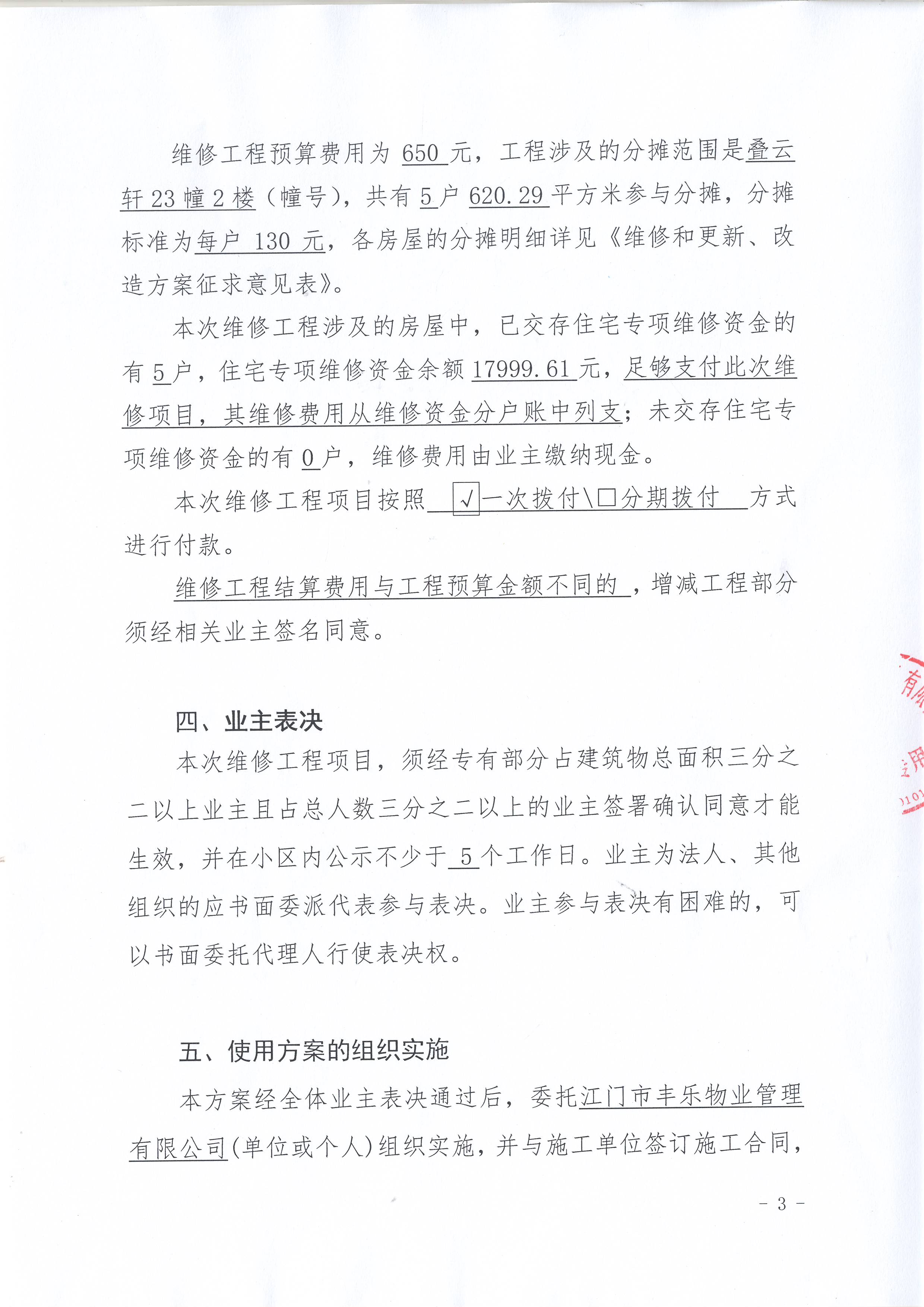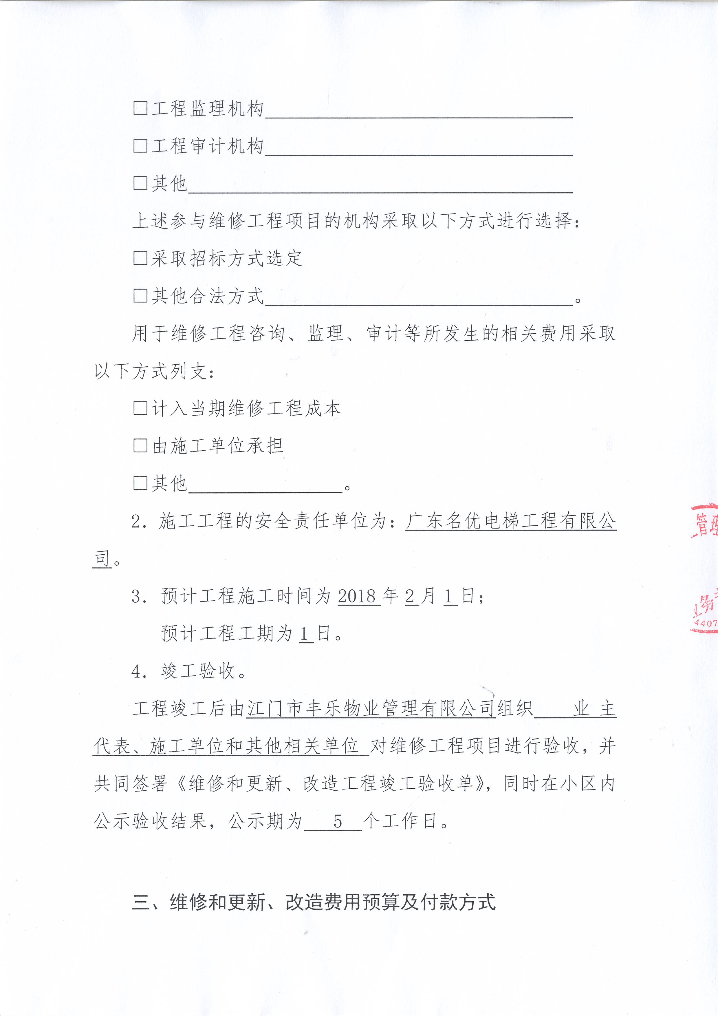<div style="font-family: 宋体; font-size: 16px;"><p style="text-align: left;">各位尊敬的业主:</p><p style="text-align: left;"> 根据法律法规的规定,本小区业主利用“江门市物业管理公众服务平台”已对本小区公共事务决策事项进行了表决,在经过7日的询异公示期后,未收到业主有效的异议。现将投票结果公告,并就产生的法律效力说明如下:</p><p style="text-align: left;">一、投票范围</p><p style="text-align: left;"> 凤山水岸花园叠云轩23幢</p><p style="text-align: left;"> 总人数(专有部分人数之和):5</p><p style="text-align: left;"> 建筑物总面积(专有部分面积之和):620.29㎡</p><p style="text-align: left;">二、投票起止时间</p><p style="text-align: left;"> 投票表决时间:从2018年01月29日到2018年02月12日止</p><p style="text-align: left;"> 投票询异公示时间:从2018年02月13日开始</p><p style="text-align: left;"> 投票结果通知公告时间:从2018年02月20日开始</p><p style="text-align: left;">三、投票结果 </p><p style="text-align: left;"><table style='table-layout: fixed; font-size:12px; margin-top:10px' width='100%' border='0' cellspacing='0' cellpadding='0'><tr><td height='28' colspan='10' align='center' style='border: 1px solid #666'><strong style='font-size: 14px;'> 叠云轩23幢2号电梯2楼永日外呼显示板损坏需维修</strong></td> </tr><tr><td height='28' colspan='4' style='border-left: 1px solid #666; border-bottom: 1px solid #666'><strong> 申报单位:</strong> 江门市丰乐物业管理有限公司</td><td colspan='3' style='border-left: 1px solid #666; border-bottom: 1px solid #666'><strong> 联系方式:</strong> 13512344321 </td><td colspan='3' style='border-left: 1px solid #666; border-bottom: 1px solid #666; border-right: 1px solid #666'><strong> 申报日期:</strong> 2018年1月25日 </td></tr><tr> <td height='28' colspan='5' style='border-left: 1px solid #666; border-bottom: 1px solid #666'><strong> 总人数(专有部分人数之和):</strong>5人 </td><td colspan='5' style='border-left: 1px solid #666; border-bottom: 1px solid #666; border-right: 1px solid #666'><strong> 建筑物总面积(专有部分面积之和):</strong>620.29㎡ </td> </tr><tr><td height='28' colspan='10' bgcolor='#F3F3F3' style='border-left: 1px solid #666;border-bottom: 1px solid #666;border-right: 1px solid #666'><strong> 参与人数及面积统计</strong></td></tr><tr><td height='28' colspan='5' style='border-left: 1px solid #666; border-bottom: 1px solid #666'><strong> 参与表决专有部分人数之和:</strong>1人</td><td colspan='5' style='border-left: 1px solid #666; border-bottom: 1px solid #666; border-right: 1px solid #666'><strong> 参与表决占有表决权总人数比例:</strong>20.00%</td></tr><tr><td height='28' colspan='5' style='border-left: 1px solid #666; border-bottom: 1px solid #666'><strong> 参与表决专有部分面积之和:</strong>125.45㎡</td><td colspan='5' style='border-left: 1px solid #666; border-bottom: 1px solid #666; border-right: 1px solid #666'><strong> 参与表决占有表决权总面积比例:</strong>20.22%</td></tr><tr><td height='28' colspan='10' bgcolor='#F3F3F3' style='border-left: 1px solid #666; border-bottom: 1px solid #666;border-right: 1px solid #666'> <strong> 未参与人数及面积统计</strong></td> </tr><tr><td height='28' colspan='5' style='border-left: 1px solid #666; border-bottom: 1px solid #666'><strong> 未参与表决专有部分人数之和:</strong>4人 </td><td colspan='5' style='border-left: 1px solid #666; border-bottom: 1px solid #666; border-right: 1px solid #666'><strong> 未参与表决占有表决权总人数比例:</strong>80.00%</td></tr><tr><td height='28' colspan='5' style='border-left: 1px solid #666; border-bottom: 1px solid #666'><strong> 未参与表决专有部分面积之和:</strong>494.84㎡</td><td colspan='5' style='border-left: 1px solid #666; border-bottom: 1px solid #666; border-right: 1px solid #666'><strong> 未参与表决占有表决权总面积比例:</strong>79.78% </td> </tr><tr><td width='6%' rowspan='2' align='center' bgcolor='#F3F3F3' style='border-left: 1px solid #666; border-bottom: 1px solid #666'><strong>序号</strong></td><td width='11%' rowspan='2' align='center' bgcolor='#F3F3F3' style='border-left: 1px solid #666; border-bottom: 1px solid #666'><strong>候选项</strong></td><td height='28' colspan='2' align='center' bgcolor='#F3F3F3' style='border-left: 1px solid #666; border-bottom: 1px solid #666'><strong>表决人数情况</strong> </td><td colspan='2' align='center' bgcolor='#F3F3F3' style='border-left: 1px solid #666; border-bottom: 1px solid #666'><strong>表决面积情况</strong></td><td colspan='4' align='center' bgcolor='#F3F3F3' style='border-left: 1px solid #666; border-bottom: 1px solid #666; border-right: 1px solid #666'><strong>表决方式</strong></td></tr><tr><td width='11%' height='28' align='center' bgcolor='#F3F3F3' style='border-left: 1px solid #666;border-bottom: 1px solid #666'><strong>参与表决<br />专有部分<br />人数之和</strong> </td><td width='11%' align='center' bgcolor='#F3F3F3' style='border-left: 1px solid #666; border-bottom: 1px solid #666'><strong>占有<br /> 表决权<br /> 总人数比例<br /> </strong></td><td width='11%' align='center' bgcolor='#F3F3F3' style='border-left: 1px solid #666; border-bottom: 1px solid #666'><strong>参与表决<br /> 专有部分<br /> 面积之和<br /> </strong></td><td width='13%' align='center' bgcolor='#F3F3F3' style='border-left: 1px solid #666; border-bottom: 1px solid #666'><strong>占有<br />表决权<br />总面积比例</strong></td><td width='9%' align='center' bgcolor='#F3F3F3' style='border-left: 1px solid #666; border-bottom: 1px solid #666'><strong>微信<br /> 投票<br /> </strong></td><td width='7%' align='center' bgcolor='#F3F3F3' style='border-left: 1px solid #666; border-bottom: 1px solid #666'><strong>投票