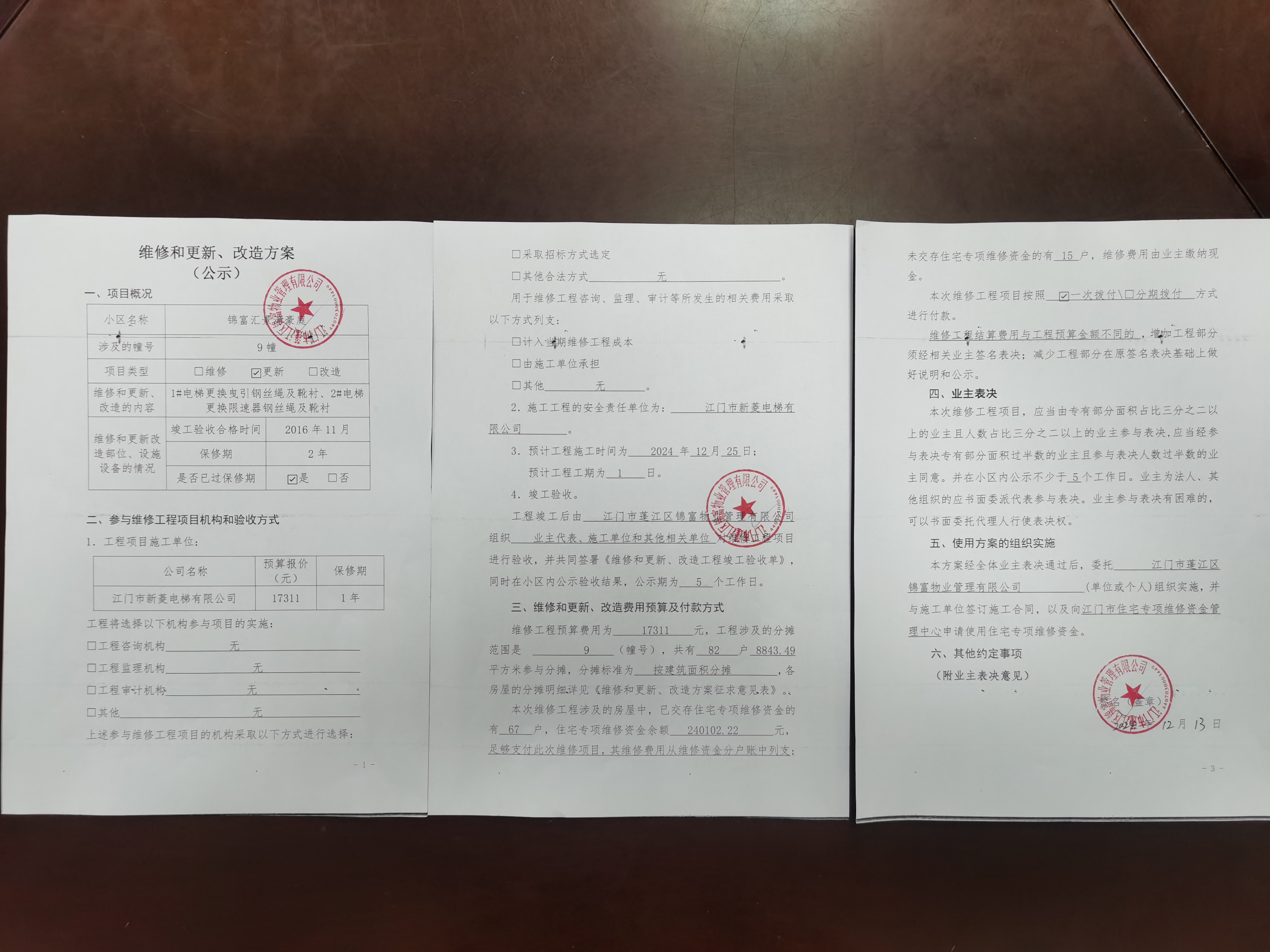 <td VALIGN="top" VALUES="" STYLE="border-width:0" BINDTYPE="0" ROWSPAN="17" COLSPAN="7" DATASOURCE="投票结果" ><font style=" font-family:方正小标宋简体;font-size:14pt;"><p style="line-height: 1.75em;"><span style="font-family: 宋体, SimSun;">各位尊敬的业主:</span><br/></p><p style="text-indent: 2em; line-height: 1.75em;"><span style="font-family: 宋体, SimSun;">根据法律法规的规定,本小区业主利用“江门市物业事项表决管理系统”已对本小区公共事务决策事项进行了表决,在经过7日的询异公示期后,未收到业主有效的异议。现将投票结果公告,并就产生的法律效力说明如下:</span></p><p style="line-height: 1.75em; text-indent: 0em;"><strong style="text-indent: 2em;"><span style="font-family: 宋体, SimSun;">一、投票范围</span></strong></p><p style="text-indent: 2em; line-height: 1.75em;"><span style="font-family: 宋体, SimSun;">江门市蓬江区锦富汇景湾豪庭蓬江区棠下镇锦富汇景湾豪庭9幢</span></p><p style="text-indent: 2em; line-height: 1.75em;"><span style="font-family: 宋体, SimSun;">总人数(专有部分人数之和):80</span></p><p style="text-indent: 2em; line-height: 1.75em;"><span style="font-family: 宋体, SimSun;"><span style="font-family: 宋体, SimSun; text-indent: 32px;"><span style="font-family: 宋体; text-indent: 32px;"><span style="font-family: 宋体; text-indent: 32px;">总户数:82</span></span></span></span></p><p style="text-indent: 2em; line-height: 1.75em;"><span style="font-family: 宋体, SimSun;">建筑物总面积(专有部分面积之和):8843.49㎡</span></p><p style="line-height: 1.75em;"><strong><span style="font-family: 宋体, SimSun;">二、投票结果公告时间</span></strong></p><p style="text-indent: 2em; line-height: 1.75em;"><span style="font-family: 宋体, SimSun;"><span style="font-family: 宋体, SimSun; text-indent: 32px;">从2024年12月27日开始</span></span></p><p style="line-height: 1.75em;"><strong><span style="font-family: 宋体, SimSun;">三、计票规则</span></strong></p><p style="text-indent: 2em; line-height: 1.75em;"><span style="font-family: 宋体, SimSun;">表决事项:使用建筑物及其附属设施的维修资金<br /><p style='font-family: 宋体, SimSun;line-height: 1.75em; text-indent: 2em;'>计票规则:弃权票不并入其它项&nbsp;&nbsp;&nbsp;&nbsp;未表决票不并入其它项</p></span></p><p style="line-height: 1.75em;"><strong><span style="font-family: 宋体, SimSun;">四、通过规则</span></strong></p><p style="line-height: 1.75em;"><strong><span style="font-family: 宋体, SimSun;">&nbsp; 根据《中华人民共和国民法典》第二百七十八条规定:业主共同决定事项,应当由专有部分面积占比三分之二以上的业主且人数占比三分之二以上的业主参与表决。</span></strong></p><p style="text-indent: 2em; line-height: 1.75em;"><span style="font-family: 宋体, SimSun;"><span style="font-family: 宋体, SimSun; text-indent: 32px;">表决事项:使用建筑物及其附属设施的维修资金<br /><p style='font-family: 宋体, SimSun;line-height: 1.75em; text-indent: 2em;'>通过规则:双2/3以上参与表决,参与表决双过半同意</p></span></span></p><p style="line-height: 1.75em;"><strong><span style="font-family: 宋体, SimSun;">五、投票结果</span></strong></p><p style="line-height: 1.75em; text-indent: 2em;"><span style="font-family: 宋体, SimSun; text-indent: 2em;"><div id='resultTable'><table style='table-layout: fixed; font-size:12px; margin-top:10px' width='100%' border='0' cellspacing='0' cellpadding='0'><tr><td height='28' colspan='10' align='center' style='border: 1px solid #666'><strong style='font-size: 14px;'> 使用建筑物及其附属设施的维修资金</strong></td> </tr><tr id='trfirst'><td height='28' colspan='4' style='border-left: 1px solid #666; border-bottom: 1px solid #666'><strong>&nbsp;申报单位:</strong> 江门市蓬江区锦富物业管理有限公司</td><td colspan='3' style='border-left: 1px solid #666; border-bottom: 1px solid #666'><strong>&nbsp;联系方式:</strong> 3598316 </td><td colspan='3' style='border-left: 1px solid #666; border-bottom: 1px solid #666; border-right: 1px solid #666'><strong>&nbsp;申报日期:</strong> 2024年12月13日 </td></tr><tr> <td height='28' colspan='5' style='border-left: 1px solid #666; border-bottom: 1px solid #666'><strong>&nbsp;列支总人数(专有部分人数之和):</strong>80人 </td><td colspan='5' style='border-left: 1px solid #666; border-bottom: 1px solid #666; border-right: 1px solid #666'><strong>&nbsp;列支建筑物总面积(专有部分面积之和):</strong>8843.49㎡ </td> </tr><tr><td height='28' colspan='10' bgcolor='#F3F3F3' style='border-left: 1px solid #666;border-bottom: 1px solid #666;border-right: 1px solid #666'><strong>&nbsp;参与表决人数及面积统计</strong></td></tr><tr><td height='28' colspan='5' style='border-left: 1px solid #666; border-bottom: 1px solid #666'><strong>&nbsp;参与表决人数:</strong>63人</td><td colspan='5' style='border-left: 1px solid #666; border-bottom: 1px solid #666; border-right: 1px solid #666'><strong>&nbsp;参与表决人数占总人数比例:</strong>78.75%</td></tr><tr><td height='28' colspan='5' style='border-left: 1px solid #666; border-bottom: 1px solid #666'><strong>&nbsp;参与表决面积:</strong>6621.31㎡</td><td colspan='5' style='border-left: 1px solid #666; border-bottom: 1px solid #666; border-right: 1px solid #666'><strong>&nbsp;参与表决面积占总面积比例:</strong>74.87%</td></tr><tr><td height='28' colspan='10' bgcolor='#F3F3F3' style='border-left: 1px solid #666; border-bottom: 1px solid #666;border-right: 1px solid #666'> <strong>&nbsp;参与表决同意人数及面积统计</strong></td> </tr><tr><td height='28' colspan='5' style='border-left: 1px solid #666; border-bottom: 1px solid #666'><strong>&nbsp;参与表决同意人数:</strong>63人 </td