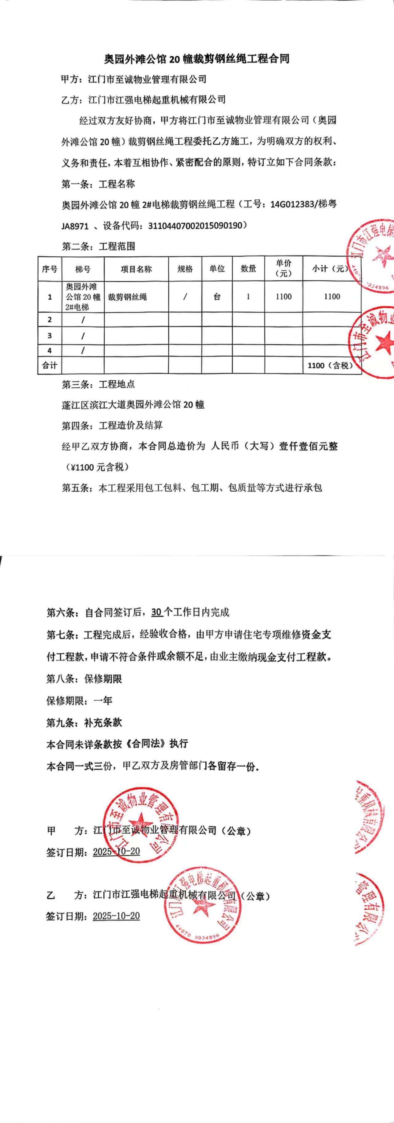 <td VALIGN="top" VALUES="" STYLE="border-width:0" BINDTYPE="0" ROWSPAN="17" COLSPAN="7" DATASOURCE="投票结果" ><font style=" font-family:方正小标宋简体;font-size:14pt;"><p style="line-height: 1.75em;"><span style="font-family: 宋体, SimSun;">各位尊敬的业主:</span><br/></p><p style="text-indent: 2em; line-height: 1.75em;"><span style="font-family: 宋体, SimSun;">根据法律法规的规定,本小区业主利用“江门市物业事项表决管理系统”已对本小区公共事务决策事项(<span style="font-family: 宋体; text-indent: 32px;">奥园外滩公馆20幢2#电梯裁剪钢丝绳使用维修资金的投票</span>)进行了表决,在经过7日的询异公示期后,未收到业主有效的异议。现将投票结果公告,并就产生的法律效力说明如下:</span></p><p style="line-height: 1.75em; text-indent: 0em;"><strong style="text-indent: 2em;"><span style="font-family: 宋体, SimSun;">一、投票范围</span></strong></p><p style="text-indent: 2em; line-height: 1.75em;"><span style="font-family: 宋体, SimSun;">奥园外滩公馆蓬江区棠下镇奥园外滩公馆20幢</span></p><p style="text-indent: 2em; line-height: 1.75em;"><span style="font-family: 宋体, SimSun;">总人数(专有部分人数之和):118</span></p><p style="text-indent: 2em; line-height: 1.75em;"><span style="font-family: 宋体, SimSun;"><span style="font-family: 宋体, SimSun; text-indent: 32px;"><span style="font-family: 宋体; text-indent: 32px;"><span style="font-family: 宋体; text-indent: 32px;">总户数:118</span></span></span></span></p><p style="text-indent: 2em; line-height: 1.75em;"><span style="font-family: 宋体, SimSun;">建筑物总面积(专有部分面积之和):11187.42㎡</span></p><p style="line-height: 1.75em;"><strong><span style="font-family: 宋体, SimSun;">二、投票结果公告时间</span></strong></p><p style="text-indent: 2em; line-height: 1.75em;"><span style="font-family: 宋体, SimSun;"><span style="font-family: 宋体, SimSun; text-indent: 32px;">从2025年12月21日开始</span></span></p><p style="line-height: 1.75em;"><strong><span style="font-family: 宋体, SimSun;">三、计票规则</span></strong></p><p style="text-indent: 2em; line-height: 1.75em;"><span style="font-family: 宋体, SimSun;">表决事项:使用建筑物及其附属设施的维修资金<br /><p style='font-family: 宋体, SimSun;line-height: 1.75em; text-indent: 2em;'>计票规则:弃权票不并入其它项&nbsp;&nbsp;&nbsp;&nbsp;未表决票不并入其它项</p></span></p><p style="line-height: 1.75em;"><strong><span style="font-family: 宋体, SimSun;">四、通过规则</span></strong></p><p style="line-height: 1.75em;"><strong><span style="font-family: 宋体, SimSun;">&nbsp; 根据《中华人民共和国民法典》第二百七十八条规定:业主共同决定事项,应当由专有部分面积占比三分之二以上的业主且人数占比三分之二以上的业主参与表决。</span></strong></p><p style="text-indent: 2em; line-height: 1.75em;"><span style="font-family: 宋体, SimSun;"><span style="font-family: 宋体, SimSun; text-indent: 32px;">表决事项:使用建筑物及其附属设施的维修资金<br /><p style='font-family: 宋体, SimSun;line-height: 1.75em; text-indent: 2em;'>通过规则:双2/3以上参与表决,参与表决双过半同意</p></span></span></p><p style="line-height: 1.75em;"><strong><span style="font-family: 宋体, SimSun;">五、投票结果</span></strong></p><p style="line-height: 1.75em; text-indent: 2em;"><span style="font-family: 宋体, SimSun; text-indent: 2em;"><div id='resultTable'><table style='table-layout: fixed; font-size:12px; margin-top:10px' width='100%' border='0' cellspacing='0' cellpadding='0'><tr><td height='28' colspan='10' align='center' style='border: 1px solid #666'><strong style='font-size: 14px;'> 使用建筑物及其附属设施的维修资金</strong></td> </tr><tr id='trfirst'><td height='28' colspan='4' style='border-left: 1px solid #666; border-bottom: 1px solid #666'><strong>&nbsp;申报单位:</strong> 江门市至诚物业管理有限公司</td><td colspan='3' style='border-left: 1px solid #666; border-bottom: 1px solid #666'><strong>&nbsp;联系方式:</strong> 3851968 </td><td colspan='3' style='border-left: 1px solid #666; border-bottom: 1px solid #666; border-right: 1px solid #666'><strong>&nbsp;申报日期:</strong> 2025年10月24日 </td></tr><tr> <td height='28' colspan='5' style='border-left: 1px solid #666; border-bottom: 1px solid #666'><strong>&nbsp;列支总人数(专有部分人数之和):</strong>118人 </td><td colspan='5' style='border-left: 1px solid #666; border-bottom: 1px solid #666; border-right: 1px solid #666'><strong>&nbsp;列支建筑物总面积(专有部分面积之和):</strong>11187.42㎡ </td> </tr><tr><td height='28' colspan='10' bgcolor='#F3F3F3' style='border-left: 1px solid #666;border-bottom: 1px solid #666;border-right: 1px solid #666'><strong>&nbsp;参与表决人数及面积统计</strong></td></tr><tr><td height='28' colspan='5' style='border-left: 1px solid #666; border-bottom: 1px solid #666'><strong>&nbsp;参与表决人数:</strong>85人</td><td colspan='5' style='border-left: 1px solid #666; border-bottom: 1px solid #666; border-right: 1px solid #666'><strong>&nbsp;参与表决人数占总人数比例:</strong>72.03%</td></tr><tr><td height='28' colspan='5' style='border-left: 1px solid #666; border-bottom: 1px solid #666'><strong>&nbsp;参与表决面积:</strong>8105.35㎡</td><td colspan='5' style='border-left: 1px solid #666; border-bottom: 1px solid #666; border-right: 1px solid #666'><strong>&nbsp;参与表决面积占总面积比例:</strong>72.45%</td></tr><tr><td height='28' colspan='10' bgcolor='#F3F3F3' style='border-left: 1px solid #666; border-bottom: 1px solid #666;border-right: 1px solid #666'> <strong>&nbsp;参与表决同意人数及面积统计</strong></td> </tr><tr><td height='28' colspan='5' style='border-le