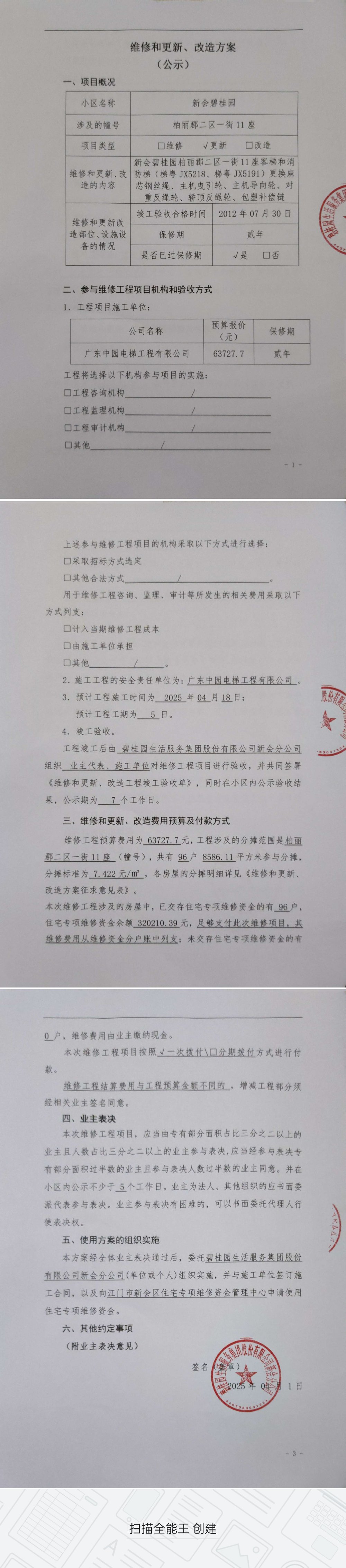 <td VALIGN="top" VALUES="" STYLE="border-width:0" BINDTYPE="0" ROWSPAN="17" COLSPAN="7" DATASOURCE="投票结果" ><font style=" font-family:方正小标宋简体;font-size:14pt;"><p style="line-height: 1.75em;"><span style="font-family: 宋体, SimSun;">各位尊敬的业主:</span><br/></p><p style="text-indent: 2em; line-height: 1.75em;"><span style="font-family: 宋体, SimSun;">根据法律法规的规定,本小区业主利用“江门市物业事项表决管理系统”已对本小区公共事务决策事项进行了表决,在经过7日的询异公示期后,未收到业主有效的异议。现将投票结果公告,并就产生的法律效力说明如下:</span></p><p style="line-height: 1.75em; text-indent: 0em;"><strong style="text-indent: 2em;"><span style="font-family: 宋体, SimSun;">一、投票范围</span></strong></p><p style="text-indent: 2em; line-height: 1.75em;"><span style="font-family: 宋体, SimSun;">新会碧桂园柏丽郡二区一街11座</span></p><p style="text-indent: 2em; line-height: 1.75em;"><span style="font-family: 宋体, SimSun;">总人数(专有部分人数之和):95</span></p><p style="text-indent: 2em; line-height: 1.75em;"><span style="font-family: 宋体, SimSun;"><span style="font-family: 宋体, SimSun; text-indent: 32px;"><span style="font-family: 宋体; text-indent: 32px;"><span style="font-family: 宋体; text-indent: 32px;">总户数:96</span></span></span></span></p><p style="text-indent: 2em; line-height: 1.75em;"><span style="font-family: 宋体, SimSun;">建筑物总面积(专有部分面积之和):8586.11㎡</span></p><p style="line-height: 1.75em;"><strong><span style="font-family: 宋体, SimSun;">二、投票结果公告时间</span></strong></p><p style="text-indent: 2em; line-height: 1.75em;"><span style="font-family: 宋体, SimSun;"><span style="font-family: 宋体, SimSun; text-indent: 32px;">从2025年04月23日开始</span></span></p><p style="line-height: 1.75em;"><strong><span style="font-family: 宋体, SimSun;">三、计票规则</span></strong></p><p style="text-indent: 2em; line-height: 1.75em;"><span style="font-family: 宋体, SimSun;">表决事项:使用建筑物及其附属设施的维修资金<br /><p style='font-family: 宋体, SimSun;line-height: 1.75em; text-indent: 2em;'>计票规则:弃权票不并入其它项&nbsp;&nbsp;&nbsp;&nbsp;未表决票不并入其它项</p></span></p><p style="line-height: 1.75em;"><strong><span style="font-family: 宋体, SimSun;">四、通过规则</span></strong></p><p style="line-height: 1.75em;"><strong><span style="font-family: 宋体, SimSun;">&nbsp; 根据《中华人民共和国民法典》第二百七十八条规定:业主共同决定事项,应当由专有部分面积占比三分之二以上的业主且人数占比三分之二以上的业主参与表决。</span></strong></p><p style="text-indent: 2em; line-height: 1.75em;"><span style="font-family: 宋体, SimSun;"><span style="font-family: 宋体, SimSun; text-indent: 32px;">表决事项:使用建筑物及其附属设施的维修资金<br /><p style='font-family: 宋体, SimSun;line-height: 1.75em; text-indent: 2em;'>通过规则:双2/3以上参与表决,参与表决双过半同意</p></span></span></p><p style="line-height: 1.75em;"><strong><span style="font-family: 宋体, SimSun;">五、投票结果</span></strong></p><p style="line-height: 1.75em; text-indent: 2em;"><span style="font-family: 宋体, SimSun; text-indent: 2em;"><div id='resultTable'><table style='table-layout: fixed; font-size:12px; margin-top:10px' width='100%' border='0' cellspacing='0' cellpadding='0'><tr><td height='28' colspan='10' align='center' style='border: 1px solid #666'><strong style='font-size: 14px;'> 使用建筑物及其附属设施的维修资金</strong></td> </tr><tr id='trfirst'><td height='28' colspan='4' style='border-left: 1px solid #666; border-bottom: 1px solid #666'><strong>&nbsp;申报单位:</strong> 碧桂园生活服务集团股份有限公司新会分公司</td><td colspan='3' style='border-left: 1px solid #666; border-bottom: 1px solid #666'><strong>&nbsp;联系方式:</strong> </td><td colspan='3' style='border-left: 1px solid #666; border-bottom: 1px solid #666; border-right: 1px solid #666'><strong>&nbsp;申报日期:</strong> 2025年4月9日 </td></tr><tr> <td height='28' colspan='5' style='border-left: 1px solid #666; border-bottom: 1px solid #666'><strong>&nbsp;列支总人数(专有部分人数之和):</strong>95人 </td><td colspan='5' style='border-left: 1px solid #666; border-bottom: 1px solid #666; border-right: 1px solid #666'><strong>&nbsp;列支建筑物总面积(专有部分面积之和):</strong>8586.11㎡ </td> </tr><tr><td height='28' colspan='10' bgcolor='#F3F3F3' style='border-left: 1px solid #666;border-bottom: 1px solid #666;border-right: 1px solid #666'><strong>&nbsp;参与表决人数及面积统计</strong></td></tr><tr><td height='28' colspan='5' style='border-left: 1px solid #666; border-bottom: 1px solid #666'><strong>&nbsp;参与表决人数:</strong>67人</td><td colspan='5' style='border-left: 1px solid #666; border-bottom: 1px solid #666; border-right: 1px solid #666'><strong>&nbsp;参与表决人数占总人数比例:</strong>70.53%</td></tr><tr><td height='28' colspan='5' style='border-left: 1px solid #666; border-bottom: 1px solid #666'><strong>&nbsp;参与表决面积:</strong>6089.77㎡</td><td colspan='5' style='border-left: 1px solid #666; border-bottom: 1px solid #666; border-right: 1px solid #666'><strong>&nbsp;参与表决面积占总面积比例:</strong>70.93%</td></tr><tr><td height='28' colspan='10' bgcolor='#F3F3F3' style='border-left: 1px solid #666; border-bottom: 1px solid #666;border-right: 1px solid #666'> <strong>&nbsp;参与表决同意人数及面积统计</strong></td> </tr><tr><td height='28' colspan='5' style='border-left: 1px solid #666; border-bottom: 1px solid #666'><strong>&nbsp;参与表决同意人数:</strong>65人 </td><td colspan='5' style='border-left: 1p