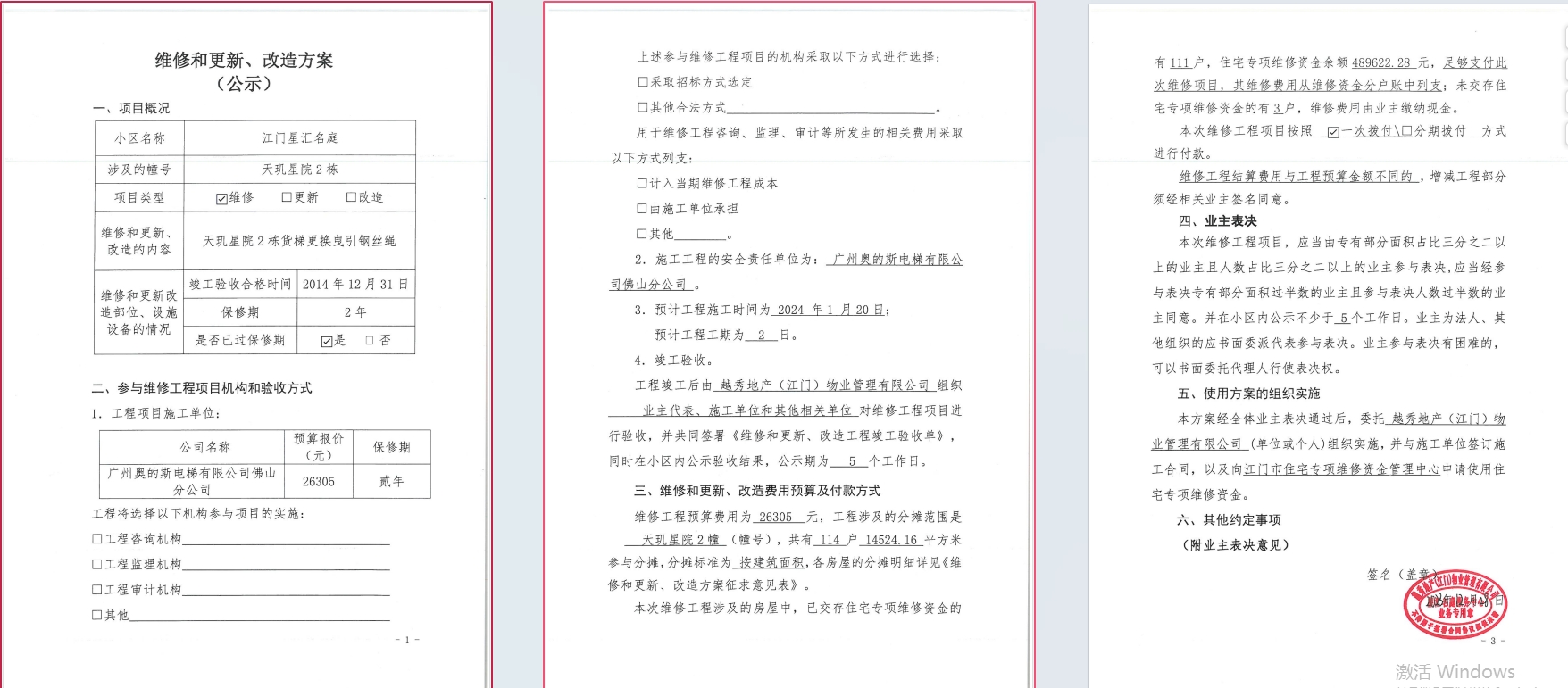 <td valign="top" values="" style="border-width:0" bindtype="0" rowspan="17" colspan="7" datasource="投票结果"><font style=" font-family:方正小标宋简体;font-size:14pt;"><p style="line-height: 1.75em;"><span style="font-family: 宋体, SimSun;">各位尊敬的业主:</span><br></p><p style="text-indent: 2em; line-height: 1.75em;"><span style="font-family: 宋体, SimSun;">根据法律法规的规定,本小区业主利用“江门市物业事项表决管理系统”已对本小区公共事务决策事项进行了表决,在经过7日的询异公示期后,未收到业主有效的异议。现将投票结果公告,并就产生的法律效力说明如下:</span></p><p style="line-height: 1.75em; text-indent: 0em;"><strong style="text-indent: 2em;"><span style="font-family: 宋体, SimSun;">一、投票范围</span></strong></p><p style="text-indent: 2em; line-height: 1.75em;"><span style="font-family: 宋体, SimSun;">星汇名庭蓬江区星汇名庭天玑星院2幢</span></p><p style="text-indent: 2em; line-height: 1.75em;"><span style="font-family: 宋体, SimSun;">总人数(专有部分人数之和):113</span></p><p style="text-indent: 2em; line-height: 1.75em;"><span style="font-family: 宋体, SimSun;"><span style="font-family: 宋体, SimSun; text-indent: 32px;"><span style="font-family: 宋体; text-indent: 32px;"><span style="font-family: 宋体; text-indent: 32px;">总户数:114</span></span></span></span></p><p style="text-indent: 2em; line-height: 1.75em;"><span style="font-family: 宋体, SimSun;">建筑物总面积(专有部分面积之和):14524.16㎡</span></p><p style="line-height: 1.75em;"><strong><span style="font-family: 宋体, SimSun;">二、投票结果公告时间</span></strong></p><p style="text-indent: 2em; line-height: 1.75em;"><span style="font-family: 宋体, SimSun;">从2024年01月13日开始</span></p><p style="line-height: 1.75em;"><strong><span style="font-family: 宋体, SimSun;">三、计票规则</span></strong></p><p style="text-indent: 2em; line-height: 1.75em;"><span style="font-family: 宋体, SimSun;">表决事项:使用建筑物及其附属设施的维修资金<br></span></p><p style="font-family: 宋体, SimSun;line-height: 1.75em; text-indent: 2em;">计票规则:弃权票不并入其它项 未表决票不并入其它项</p><p></p><p style="line-height: 1.75em;"><strong><span style="font-family: 宋体, SimSun;">四、通过规则</span></strong></p><p style="line-height: 1.75em;"><strong><span style="font-family: 宋体, SimSun;"> 根据《中华人民共和国民法典》第二百七十八条规定:业主共同决定事项,应当由专有部分面积占比三分之二以上的业主且人数占比三分之二以上的业主参与表决。</span></strong></p><p style="text-indent: 2em; line-height: 1.75em;"><span style="font-family: 宋体, SimSun;"><span style="font-family: 宋体, SimSun; text-indent: 32px;">表决事项:使用建筑物及其附属设施的维修资金<br></span></span></p><p style="font-family: 宋体, SimSun;line-height: 1.75em; text-indent: 2em;">通过规则:参与表决专有部分面积过半数的业主且参与表决人数过半数的业主同意</p><p></p><p style="line-height: 1.75em;"><strong><span style="font-family: 宋体, SimSun;">五、投票结果</span></strong></p><p style="line-height: 1.75em; text-indent: 2em;"><span style="font-family: 宋体, SimSun; text-indent: 2em;"></span></p><div id="resultTable"><table style="table-layout: fixed; font-size:12px; margin-top:10px" width="100%" border="0" cellspacing="0" cellpadding="0"><tbody><tr><td height="28" colspan="10" align="center" style="border: 1px solid #666"><strong style="font-size: 14px;"> 使用建筑物及其附属设施的维修资金</strong></td> </tr><tr id="trfirst"><td height="28" colspan="4" style="border-left: 1px solid #666; border-bottom: 1px solid #666"><strong> 申报单位:</strong> 越秀地产(江门)物业管理有限公司</td><td colspan="3" style="border-left: 1px solid #666; border-bottom: 1px solid #666"><strong> 联系方式:</strong> </td><td colspan="3" style="border-left: 1px solid #666; border-bottom: 1px solid #666; border-right: 1px solid #666"><strong> 申报日期:</strong> 2023年12月28日 </td></tr><tr> <td height="28" colspan="5" style="border-left: 1px solid #666; border-bottom: 1px solid #666"><strong> 总人数(专有部分人数之和):</strong>113人 </td><td colspan="5" style="border-left: 1px solid #666; border-bottom: 1px solid #666; border-right: 1px solid #666"><strong> 建筑物总面积(专有部分面积之和):</strong>14524.16㎡ </td> </tr><tr><td height="28" colspan="10" bgcolor="#F3F3F3" style="border-left: 1px solid #666;border-bottom: 1px solid #666;border-right: 1px solid #666"><strong> 参与人数及面积统计</strong></td></tr><tr><td height="28" colspan="5" style="border-left: 1px solid #666; border-bottom: 1px solid #666"><strong> 参与表决专有部分人数之和:</strong>85人</td><td colspan="5" style="border-left: 1px solid #666; border-bottom: 1px solid #666; border-right: 1px solid #666"><strong> 参与表决占有表决权总人数比例:</strong>75.22%</td></tr><tr><td height="28" colspan="5" style="border-left: 1px solid #666; border-bottom: 1px solid #666"><strong> 参与表决专有部分面积之和:</strong>10810.20㎡</td><td colspan="5" style="border-left: 1px solid #666; border-bottom: 1px solid #666; border-right: 1px solid #666"><strong> 参与表决占有表决权总面积比例:</strong>74.43%</td></tr><tr><td height="28" colspan="10" bgcolor="#F3F3F3" style="border-left: 1px solid #666; border-bottom: 1px solid #666;border-right: 1px solid #666"> <strong> 未参与人数及面积统计</strong></td> </tr><tr><td height="28" colspan="5" style="border-left: 1px solid #666; border-bottom: 1px solid #666"><strong> 未参与表决专有部分人数之和:</strong>28人 </td><td colspan="5" style="border-left: 1px solid #666; border-bottom: 1px solid #666; border-rig