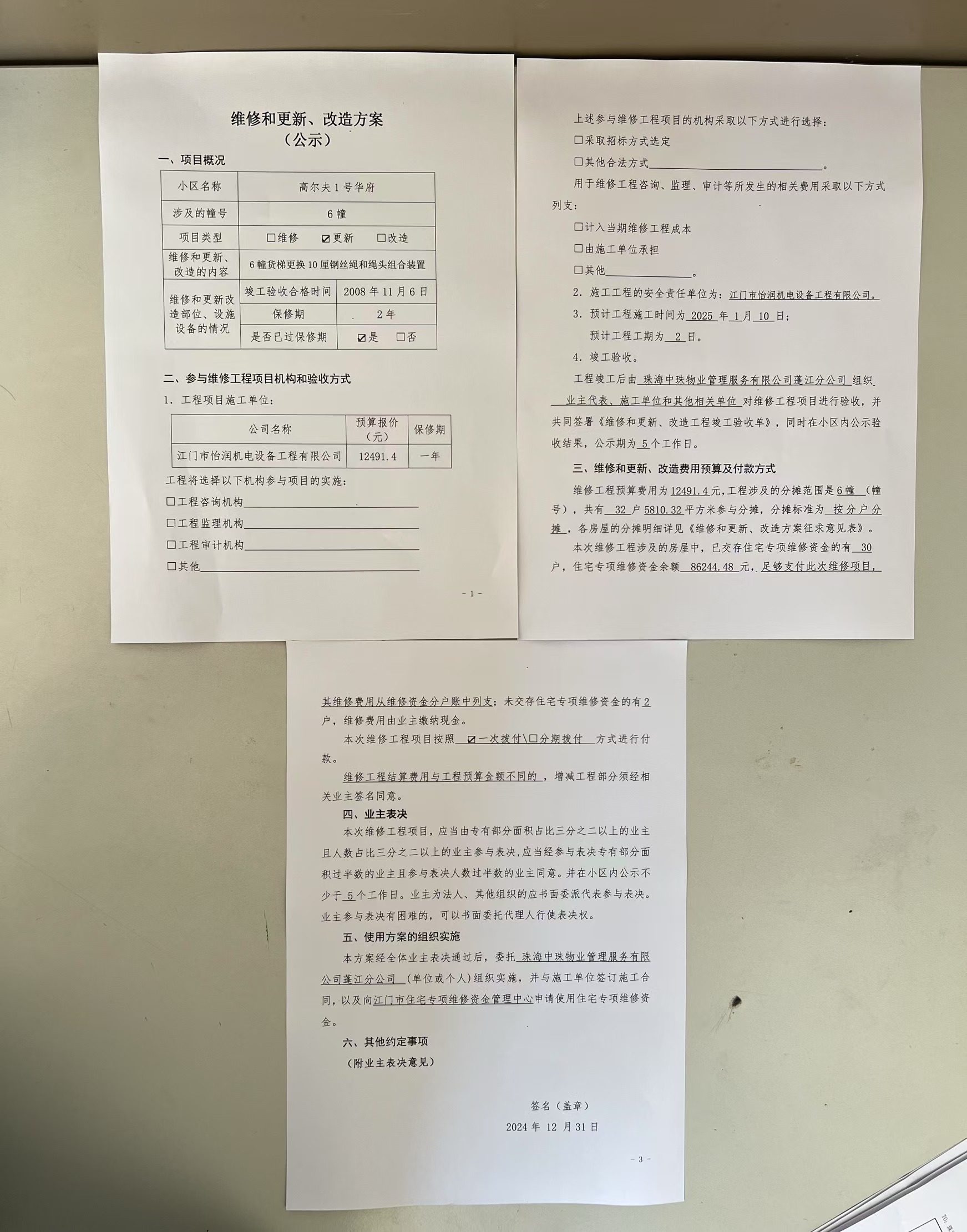 <td VALIGN="top" VALUES="" STYLE="border-width:0" BINDTYPE="0" ROWSPAN="17" COLSPAN="7" DATASOURCE="投票结果" ><font style=" font-family:方正小标宋简体;font-size:14pt;"><p style="line-height: 1.75em;"><span style="font-family: 宋体, SimSun;">各位尊敬的业主:</span><br/></p><p style="text-indent: 2em; line-height: 1.75em;"><span style="font-family: 宋体, SimSun;">根据法律法规的规定,本小区业主利用“江门市物业事项表决管理系统”已对本小区公共事务决策事项进行了表决,在经过7日的询异公示期后,未收到业主有效的异议。现将投票结果公告,并就产生的法律效力说明如下:</span></p><p style="line-height: 1.75em; text-indent: 0em;"><strong style="text-indent: 2em;"><span style="font-family: 宋体, SimSun;">一、投票范围</span></strong></p><p style="text-indent: 2em; line-height: 1.75em;"><span style="font-family: 宋体, SimSun;">高尔夫1号华府蓬江区绿茵豪苑高尔夫1号华府6幢</span></p><p style="text-indent: 2em; line-height: 1.75em;"><span style="font-family: 宋体, SimSun;">总人数(专有部分人数之和):32</span></p><p style="text-indent: 2em; line-height: 1.75em;"><span style="font-family: 宋体, SimSun;"><span style="font-family: 宋体, SimSun; text-indent: 32px;"><span style="font-family: 宋体; text-indent: 32px;"><span style="font-family: 宋体; text-indent: 32px;">总户数:32</span></span></span></span></p><p style="text-indent: 2em; line-height: 1.75em;"><span style="font-family: 宋体, SimSun;">建筑物总面积(专有部分面积之和):5810.32㎡</span></p><p style="line-height: 1.75em;"><strong><span style="font-family: 宋体, SimSun;">二、投票结果公告时间</span></strong></p><p style="text-indent: 2em; line-height: 1.75em;"><span style="font-family: 宋体, SimSun;"><span style="font-family: 宋体, SimSun; text-indent: 32px;">从2025年02月19日开始</span></span></p><p style="line-height: 1.75em;"><strong><span style="font-family: 宋体, SimSun;">三、计票规则</span></strong></p><p style="text-indent: 2em; line-height: 1.75em;"><span style="font-family: 宋体, SimSun;">表决事项:使用建筑物及其附属设施的维修资金<br /><p style='font-family: 宋体, SimSun;line-height: 1.75em; text-indent: 2em;'>计票规则:弃权票不并入其它项&nbsp;&nbsp;&nbsp;&nbsp;未表决票不并入其它项</p></span></p><p style="line-height: 1.75em;"><strong><span style="font-family: 宋体, SimSun;">四、通过规则</span></strong></p><p style="line-height: 1.75em;"><strong><span style="font-family: 宋体, SimSun;">&nbsp; 根据《中华人民共和国民法典》第二百七十八条规定:业主共同决定事项,应当由专有部分面积占比三分之二以上的业主且人数占比三分之二以上的业主参与表决。</span></strong></p><p style="text-indent: 2em; line-height: 1.75em;"><span style="font-family: 宋体, SimSun;"><span style="font-family: 宋体, SimSun; text-indent: 32px;">表决事项:使用建筑物及其附属设施的维修资金<br /><p style='font-family: 宋体, SimSun;line-height: 1.75em; text-indent: 2em;'>通过规则:双2/3以上参与表决,参与表决双过半同意</p></span></span></p><p style="line-height: 1.75em;"><strong><span style="font-family: 宋体, SimSun;">五、投票结果</span></strong></p><p style="line-height: 1.75em; text-indent: 2em;"><span style="font-family: 宋体, SimSun; text-indent: 2em;"><div id='resultTable'><table style='table-layout: fixed; font-size:12px; margin-top:10px' width='100%' border='0' cellspacing='0' cellpadding='0'><tr><td height='28' colspan='10' align='center' style='border: 1px solid #666'><strong style='font-size: 14px;'> 使用建筑物及其附属设施的维修资金</strong></td> </tr><tr id='trfirst'><td height='28' colspan='4' style='border-left: 1px solid #666; border-bottom: 1px solid #666'><strong>&nbsp;申报单位:</strong> 珠海中珠物业管理服务有限公司蓬江分公司</td><td colspan='3' style='border-left: 1px solid #666; border-bottom: 1px solid #666'><strong>&nbsp;联系方式:</strong> </td><td colspan='3' style='border-left: 1px solid #666; border-bottom: 1px solid #666; border-right: 1px solid #666'><strong>&nbsp;申报日期:</strong> 2025年1月3日 </td></tr><tr> <td height='28' colspan='5' style='border-left: 1px solid #666; border-bottom: 1px solid #666'><strong>&nbsp;列支总人数(专有部分人数之和):</strong>32人 </td><td colspan='5' style='border-left: 1px solid #666; border-bottom: 1px solid #666; border-right: 1px solid #666'><strong>&nbsp;列支建筑物总面积(专有部分面积之和):</strong>5810.32㎡ </td> </tr><tr><td height='28' colspan='10' bgcolor='#F3F3F3' style='border-left: 1px solid #666;border-bottom: 1px solid #666;border-right: 1px solid #666'><strong>&nbsp;参与表决人数及面积统计</strong></td></tr><tr><td height='28' colspan='5' style='border-left: 1px solid #666; border-bottom: 1px solid #666'><strong>&nbsp;参与表决人数:</strong>26人</td><td colspan='5' style='border-left: 1px solid #666; border-bottom: 1px solid #666; border-right: 1px solid #666'><strong>&nbsp;参与表决人数占总人数比例:</strong>81.25%</td></tr><tr><td height='28' colspan='5' style='border-left: 1px solid #666; border-bottom: 1px solid #666'><strong>&nbsp;参与表决面积:</strong>4776.42㎡</td><td colspan='5' style='border-left: 1px solid #666; border-bottom: 1px solid #666; border-right: 1px solid #666'><strong>&nbsp;参与表决面积占总面积比例:</strong>82.21%</td></tr><tr><td height='28' colspan='10' bgcolor='#F3F3F3' style='border-left: 1px solid #666; border-bottom: 1px solid #666;border-right: 1px solid #666'> <strong>&nbsp;参与表决同意人数及面积统计</strong></td> </tr><tr><td height='28' colspan='5' style='border-left: 1px solid #666; border-bottom: 1px solid #666'><strong>&nbsp;参与表决同意人数:</strong>26人 </td><td colspan='5' sty