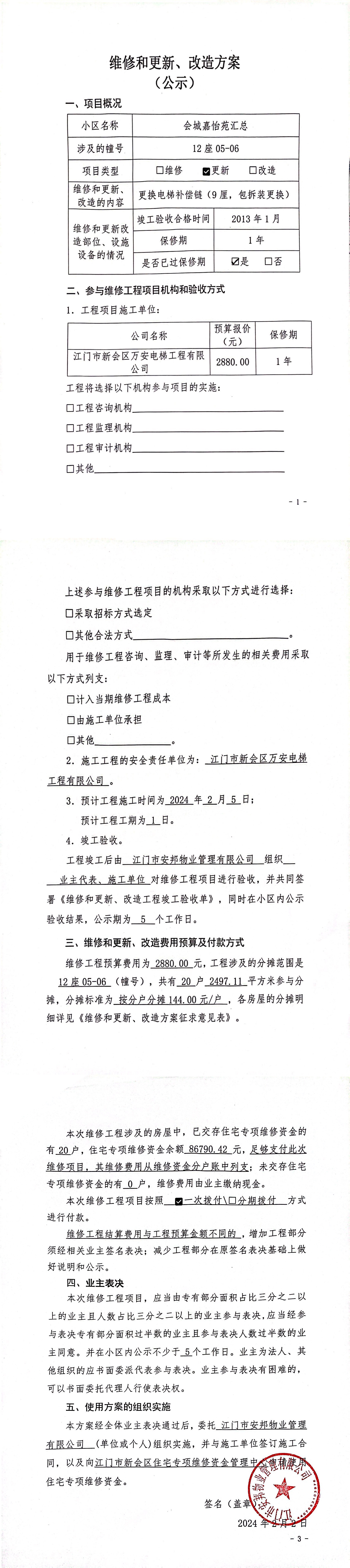 <br/>决定“(一)制定和修改业主大会议事规则”、“(二)制定和修改管理规约”、“(三)选举业主委员会或者更换业主委员会成员”、“(四)选聘和解聘物业服务企业或者其他管理人”、“(五)使用建筑物及其附属设施的维修资金”、“(九)有关共有和共同管理权利的其他重大事项”事项,应当经参与表决专有部分面积过半数的业主且参与表决人数过半数的业主同意。<span style="font-family: 宋体, SimSun; text-indent: 32px;"></span></span></p><p style="text-indent: 2em; line-height: 1.75em;"><span style="font-family: 宋体, SimSun;"></span></p><p style="text-indent: 2em; line-height: 1.75em;"><span style="font-family: 宋体, SimSun;">特此公告。</span></p><p><br/></p><p style="text-align: right; font-family: 宋体; font-size: 16px; line-height: 1.75em;"><span style="font-family: 宋体, SimSun;">江门市安邦物业管理有限公司</span></p><p style="text-align: right; font-family: 宋体; font-size: 16px; line-height: 1.75em;"><span style="font-family: 宋体, SimSun;">2024年02月27日</span></p></font></td>
