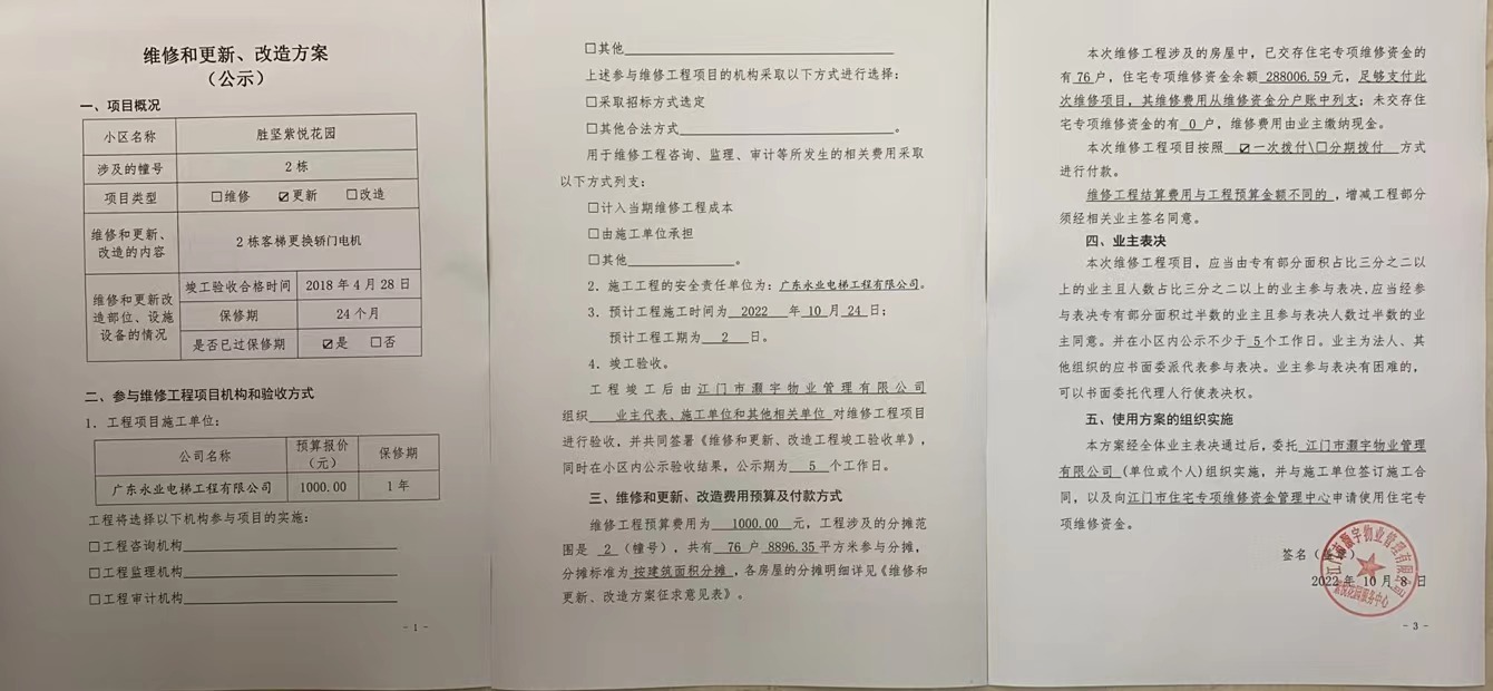 <td VALIGN="top" VALUES="" STYLE="border-width:0" BINDTYPE="0" ROWSPAN="17" COLSPAN="7" DATASOURCE="投票结果" ><font style=" font-family:方正小标宋简体;font-size:14pt;"><p style="line-height: 1.75em;"><span style="font-family: 宋体, SimSun;">各位尊敬的业主:</span><br/></p><p style="text-indent: 2em; line-height: 1.75em;"><span style="font-family: 宋体, SimSun;">根据法律法规的规定,本小区业主利用“物业公共事务决策系统”已对本小区公共事务决策事项进行了表决,在经过7日的询异公示期后,未收到业主有效的异议。现将投票结果公告,并就产生的法律效力说明如下:</span></p><p style="line-height: 1.75em; text-indent: 0em;"><strong style="text-indent: 2em;"><span style="font-family: 宋体, SimSun;">一、投票范围</span></strong></p><p style="text-indent: 2em; line-height: 1.75em;"><span style="font-family: 宋体, SimSun;">蓬江区胜坚紫悦花园蓬江区胜坚紫悦花园2幢</span></p><p style="text-indent: 2em; line-height: 1.75em;"><span style="font-family: 宋体, SimSun;">总人数(专有部分人数之和):75</span></p><p style="text-indent: 2em; line-height: 1.75em;"><span style="font-family: 宋体, SimSun;"><span style="font-family: 宋体, SimSun; text-indent: 32px;">总户数:{TotalHouseCount}</span></span></p><p style="text-indent: 2em; line-height: 1.75em;"><span style="font-family: 宋体, SimSun;">建筑物总面积(专有部分面积之和):8896.35㎡</span></p><p style="line-height: 1.75em;"><strong><span style="font-family: 宋体, SimSun;">二、投票起止时间</span></strong></p><p style="text-indent: 2em; line-height: 1.75em;"><span style="font-family: 宋体, SimSun;">投票表决时间:从2022年10月08日到2022年10月10日止</span></p><p style="text-indent: 2em; line-height: 1.75em;"><span style="font-family: 宋体, SimSun;">投票询异公示时间:从2022年10月11日开始</span></p><p style="text-indent: 2em; line-height: 1.75em;"><span style="font-family: 宋体, SimSun;">投票结果通知公告时间:从2022年10月18日开始</span></p><p style="line-height: 1.75em;"><strong><span style="font-family: 宋体, SimSun;">三、计票规则</span></strong></p><p style="text-indent: 2em; line-height: 1.75em;"><span style="font-family: 宋体, SimSun;">表决事项:使用建筑物及其附属设施的维修资金<br /><p style='font-family: 宋体, SimSun;line-height: 1.75em; text-indent: 2em;'>计票规则:弃权票不并入其它项&nbsp;&nbsp;&nbsp;&nbsp;未表决票不并入其它项</p></span></p><p style="line-height: 1.75em;"><strong><span style="font-family: 宋体, SimSun;">四、通过规则</span></strong></p><p style="text-indent: 2em; line-height: 1.75em;"><span style="font-family: 宋体, SimSun;"><span style="font-family: 宋体, SimSun; text-indent: 32px;">表决事项:使用建筑物及其附属设施的维修资金<br /><p style='font-family: 宋体, SimSun;line-height: 1.75em; text-indent: 2em;'>通过规则:参与表决专有部分面积过半数的业主且参与表决人数过半数的业主同意</p></span></span></p><p style="line-height: 1.75em;"><strong><span style="font-family: 宋体, SimSun;">五、投票结果</span></strong></p><p style="line-height: 1.75em; text-indent: 2em;"><span style="font-family: 宋体, SimSun; text-indent: 2em;"><div id='resultTable'><table style='table-layout: fixed; font-size:12px; margin-top:10px' width='100%' border='0' cellspacing='0' cellpadding='0'><tr><td height='28' colspan='10' align='center' style='border: 1px solid #666'><strong style='font-size: 14px;'> 使用建筑物及其附属设施的维修资金</strong></td> </tr><tr id='trfirst'><td height='28' colspan='4' style='border-left: 1px solid #666; border-bottom: 1px solid #666'><strong>&nbsp;申报单位:</strong> 江门市灏宇物业管理有限公司</td><td colspan='3' style='border-left: 1px solid #666; border-bottom: 1px solid #666'><strong>&nbsp;联系方式:</strong> </td><td colspan='3' style='border-left: 1px solid #666; border-bottom: 1px solid #666; border-right: 1px solid #666'><strong>&nbsp;申报日期:</strong> 2022年10月8日 </td></tr><tr> <td height='28' colspan='5' style='border-left: 1px solid #666; border-bottom: 1px solid #666'><strong>&nbsp;总人数(专有部分人数之和):</strong>75人 </td><td colspan='5' style='border-left: 1px solid #666; border-bottom: 1px solid #666; border-right: 1px solid #666'><strong>&nbsp;建筑物总面积(专有部分面积之和):</strong>8896.35㎡ </td> </tr><tr><td height='28' colspan='10' style='border: 1px solid #666'><strong>&nbsp;该事项表决是否通过:通过(选项为:A:同意)</strong></td></tr><tr><td height='28' colspan='10' bgcolor='#F3F3F3' style='border-left: 1px solid #666;border-bottom: 1px solid #666;border-right: 1px solid #666'><strong>&nbsp;参与人数及面积统计</strong></td></tr><tr><td height='28' colspan='5' style='border-left: 1px solid #666; border-bottom: 1px solid #666'><strong>&nbsp;参与表决专有部分人数之和:</strong>61人</td><td colspan='5' style='border-left: 1px solid #666; border-bottom: 1px solid #666; border-right: 1px solid #666'><strong>&nbsp;参与表决占有表决权总人数比例:</strong>81.33%</td></tr><tr><td height='28' colspan='5' style='border-left: 1px solid #666; border-bottom: 1px solid #666'><strong>&nbsp;参与表决专有部分面积之和:</strong>7211.07㎡</td><td colspan='5' style='border-left: 1px solid #666; border-bottom: 1px solid #666; border-right: 1px solid #666'><strong>&nbsp;参与表决占有表决权总面积比例:</strong>81.06%</td></tr><tr><td height='28' colspan='10' bgcolor='#F3F3F3' style='border-left: 1px solid #666; border-bottom: 1px solid #666;border-right: 1px solid #666'> <strong>&nbsp;未参与人数及面积统计</strong></td> </tr><tr><td height='28' colspan='5' style='border-left: 1px solid #666; border-bottom: 1px solid #666'><strong>&nbsp;未参与表决专有部分人数