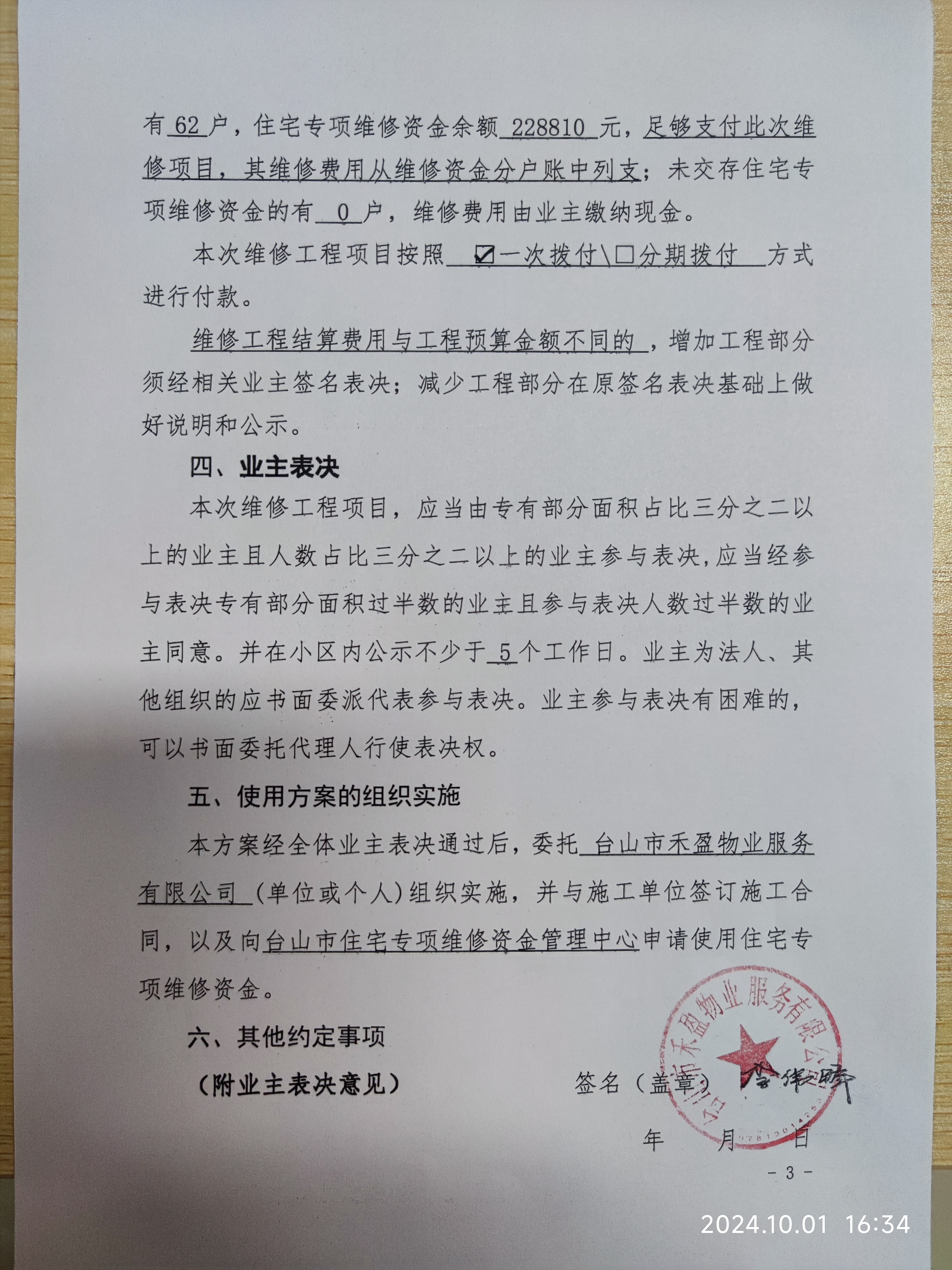 <td VALIGN="top" VALUES="" STYLE="border-width:0" BINDTYPE="0" ROWSPAN="19" COLSPAN="7" DATASOURCE="投票结果" ><font style="font-size:14pt;"><p style="white-space: normal; font-family: 宋体; line-height: 1.75em;">台山市广海新城花园台山市广海新城花园7幢全体业主:</p><p style="white-space: normal; font-family: 宋体; line-height: 1.75em; text-indent: 2em;">本小区关于广海新城花园7幢左梯更换电梯专用钢丝绳的使用维修资金表决的投票已表决结束,询异时间从2024年10月23日开始,投票询异公示期间,业主可通过微信查询自己的表决情况或可凭身份证件申请查询自己的表决情况;如公示的业主表决情况与查询的本人表决意见不一致的,可以以书面形式向投票组织机构申诉,投票组织机构予以纠正并重新公示表决结果。异议提出人对投票组织机构的处理仍有异议的,可以向街道办事处(镇人民政府)反映处理,涉及住宅专项维修资金的,可向属地住宅专项维修资金管理中心反映处理。</p><p style="white-space: normal;"><br/></p><p style="white-space: normal; font-family: 宋体; line-height: 1.75em;"><strong>附件:</strong></p><p style="white-space: normal; font-family: 宋体; line-height: 1.75em;"><strong>一、投票范围</strong></p><p style="white-space: normal; font-family: 宋体; line-height: 1.75em; text-indent: 2em;">台山市广海新城花园台山市广海新城花园7幢</p><p style="white-space: normal; font-family: 宋体; line-height: 1.75em; text-indent: 2em;">总人数(专有部分人数之和):62</p><p style="white-space: normal; font-family: 宋体; line-height: 1.75em; text-indent: 2em;"><span style="font-family: 宋体, SimSun;"><span style="font-family: 宋体; text-indent: 32px;"><span style="font-family: 宋体; text-indent: 32px;">总户数:62</span></span></span></p><p style="white-space: normal; font-family: 宋体; line-height: 1.75em; text-indent: 2em;">建筑物总面积(专有部分面积之和):7212.60㎡</p><p style="white-space: normal; font-family: 宋体; line-height: 1.75em;"><strong>二、询异公示起止时间</strong></p><p dir="ltr" style="white-space: normal; font-family: 宋体; line-height: 1.75em; text-indent: 2em;"><span style="text-indent: 36px;">2024年10月23日至2024年11月02日</span></p><p style="white-space: normal; font-family: 宋体; line-height: 1.75em;"><strong>三、投票详细描述</strong></p><p style="white-space: normal; font-family: 宋体; line-height: 1.75em; text-indent: 2em;"><p><span style="font-size: 14px; text-wrap: wrap; background-color: rgb(255, 255, 255); font-family: 宋体;">小区</span><span style="font-size: 14px; text-wrap: wrap; background-color: rgb(255, 255, 0);"><span style="font-family:Calibri">7幢</span></span><span style="font-size: 14px; text-wrap: wrap; background-color: rgb(255, 255, 255); font-family: 宋体;">的</span><span style="font-size: 14px; text-wrap: wrap; font-family: 宋体; background: rgb(255, 255, 0);">左梯需更换钢丝绳</span><span style="font-size: 14px; text-wrap: wrap; background-color: rgb(255, 255, 255); font-family: 宋体;">,经检查,是由于</span><span style="font-size: 14px; text-wrap: wrap; font-family: 宋体; background: rgb(255, 255, 0);">容载情况上行打滑曳引试验不符合使用要求</span><span style="font-size: 14px; text-wrap: wrap; background-color: rgb(255, 255, 255); font-family: 宋体;">。<br/></span><span style="font-family: "Helvetica Neue", Helvetica, Arial, sans-serif; font-size: 14px; text-wrap: wrap; background-color: rgb(255, 255, 255);"></span><span style="font-size: 14px; text-wrap: wrap; background-color: rgb(255, 255, 255); font-family: 宋体;"> 现对</span><span style="font-size: 14px; text-wrap: wrap; background-color: rgb(255, 255, 255);"><span style="font-family:Calibri">7幢左梯</span></span><span style="font-size: 14px; text-wrap: wrap; font-family: 宋体; background: rgb(255, 255, 0);">进行维修</span><span style="font-size: 14px; text-wrap: wrap; background-color: rgb(255, 255, 255); font-family: 宋体;">,工程维修预算金额为</span><span style="font-size: 14px; text-wrap: wrap; font-family: 宋体; background: rgb(255, 255, 0);"><span style="font-family: Calibri;">11880</span>元</span><span style="font-size: 14px; text-wrap: wrap; background-color: rgb(255, 255, 255); font-family: 宋体;">,项目最终费用以施工合同签订金额为准。因已过保修期,维修费用由相关业主</span><span style="font-size: 14px; text-wrap: wrap; font-family: 宋体; background: rgb(255, 255, 0);">按分户</span><span style="font-size: 14px; text-wrap: wrap; background-color: rgb(255, 255, 255); font-family: 宋体;">分摊,</span><span style="font-size: 14px; text-wrap: wrap; font-family: 宋体; background: rgb(255, 255, 0);">每户约<span style="font-family: Calibri;">191.61</span>元</span><span style="font-size: 14px; text-wrap: wrap; background-color: rgb(255, 255, 255); font-family: 宋体;">,详见公示附件。如业主手机不能正常通过微信投票,请联系物业公司进行线下纸质投票,物业电话</span><span style="font-size: 14px; text-wrap: wrap; font-family: 宋体; background: rgb(255, 255, 0);">:13326805101</span></p></p><p style="white-space: normal; font-family: 宋体; line-height: 1.75em;"><strong>四、计票规则</strong></p><p style="white-space: normal; font-family: 宋体; line-height: 1.75em; text-indent: 2em;">表决事项:使用建筑物及其附属设施的维修资金<br /><p style='text-align: left; font-family: 宋体; font-size: 16px; line-height: 1.75em; text-indent: 2em;'>计票规则:弃权票不并入其它项 未表决票不并入其它项</p></p><p style="white-space: normal; font-family: 宋体; line-height: 1.75em;"><strong>五、通过规则</strong></p><p style="white-space: normal; font-family: 宋体; line-height: 1.75em;"><strong><strong style="white-space: normal;"