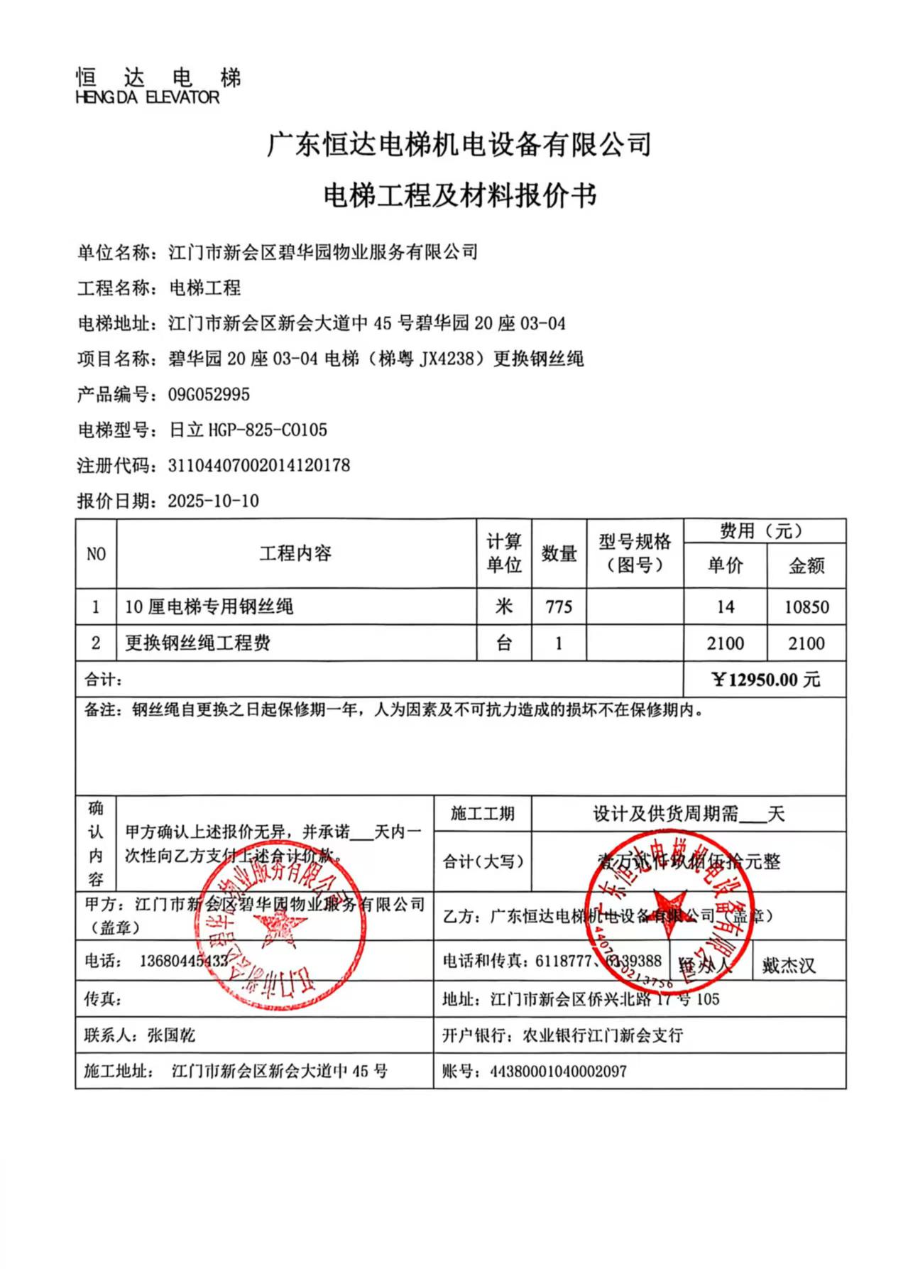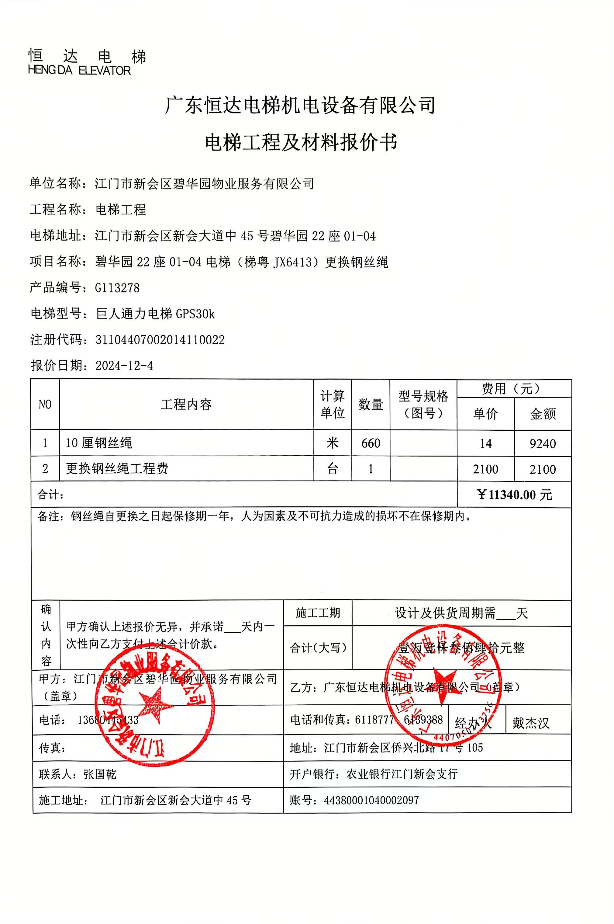 <td VALIGN="top" VALUES="" STYLE="border-width:0" BINDTYPE="0" ROWSPAN="19" COLSPAN="7" DATASOURCE="投票结果" ><font style="font-size:14pt;"><p style="white-space: normal; font-family: 宋体; line-height: 1.75em;">碧华园碧华园20座全体业主:</p><p style="white-space: normal; font-family: 宋体; line-height: 1.75em; text-indent: 2em;">本小区关于碧华园20座03-04电梯(梯粤JX4238)更换钢丝绳使用维修资金的投票的投票已表决结束,询异时间从2025年11月13日开始,投票询异公示期间,业主可通过微信查询自己的表决情况或可凭身份证件申请查询自己的表决情况;如公示的业主表决情况与查询的本人表决意见不一致的,可以以书面形式向投票组织机构申诉,投票组织机构予以纠正并重新公示表决结果。异议提出人对投票组织机构的处理仍有异议的,可以向街道办事处(镇人民政府)反映处理,涉及住宅专项维修资金的,可向属地住宅专项维修资金管理中心反映处理。</p><p style="white-space: normal;"><br/></p><p style="white-space: normal; font-family: 宋体; line-height: 1.75em;"><strong>附件:</strong></p><p style="white-space: normal; font-family: 宋体; line-height: 1.75em;"><strong>一、投票范围</strong></p><p style="white-space: normal; font-family: 宋体; line-height: 1.75em; text-indent: 2em;">碧华园碧华园20座</p><p style="white-space: normal; font-family: 宋体; line-height: 1.75em; text-indent: 2em;">总人数(专有部分人数之和):34</p><p style="white-space: normal; font-family: 宋体; line-height: 1.75em; text-indent: 2em;"><span style="font-family: 宋体, SimSun;"><span style="font-family: 宋体; text-indent: 32px;"><span style="font-family: 宋体; text-indent: 32px;">总户数:34</span></span></span></p><p style="white-space: normal; font-family: 宋体; line-height: 1.75em; text-indent: 2em;">建筑物总面积(专有部分面积之和):4415.34㎡</p><p style="white-space: normal; font-family: 宋体; line-height: 1.75em;"><strong>二、询异公示起止时间</strong></p><p dir="ltr" style="white-space: normal; font-family: 宋体; line-height: 1.75em; text-indent: 2em;"><span style="text-indent: 36px;">2025年11月13日至2025年11月23日</span></p><p style="white-space: normal; font-family: 宋体; line-height: 1.75em;"><strong>三、投票详细描述</strong></p><p style="white-space: normal; font-family: 宋体; line-height: 1.75em; text-indent: 2em;"><p style="font-family: "Helvetica Neue", Helvetica, Arial, sans-serif; font-size: 14px; white-space: normal; background-color: rgb(255, 255, 255);"><span style="font-family: 宋体; letter-spacing: 0px; background-image: initial; background-position: initial; background-size: initial; background-repeat: initial; background-attachment: initial; background-origin: initial; background-clip: initial;">碧华园20座03-04电梯(梯粤JX4238)的日常运行时出现异响,经检查,是由于钢丝绳绣蚀严重,且张力不均导致,因使用时间较长,钢丝绳出现绣蚀而不能正常安全运行。</span></p><p style="font-family: "Helvetica Neue", Helvetica, Arial, sans-serif; font-size: 14px; white-space: normal; background-color: rgb(255, 255, 255);"><span style="font-family: 宋体; letter-spacing: 0px; background-image: initial; background-position: initial; background-size: initial; background-repeat: initial; background-attachment: initial; background-origin: initial; background-clip: initial;"> 现对碧华园<span style="font-family: 宋体; font-size: 14px; text-wrap-mode: wrap; background-color: rgb(255, 255, 255);">20座03-04电梯(梯粤JX4238)</span>进行维修,工程维修预算金额为12950元,项目最终费用以施工合同签订金额为准。因已过保修期,维修费用由相关业主按建筑面积分摊,每平方约2.93元,详见公示附件。如业主手机不能正常通过微信投票,请联系物业公司进行线下纸质投票,物业电话:0750-6329973。</span></p><p><br/></p></p><p style="white-space: normal; font-family: 宋体; line-height: 1.75em;"><strong>四、计票规则</strong></p><p style="white-space: normal; font-family: 宋体; line-height: 1.75em; text-indent: 2em;">表决事项:使用建筑及其附属设施的维修资金<br /><p style='text-align: left; font-family: 宋体; font-size: 16px; line-height: 1.75em; text-indent: 2em;'>计票规则:弃权票不并入其它项 未表决票不并入其它项</p></p><p style="white-space: normal; font-family: 宋体; line-height: 1.75em;"><strong>五、通过规则</strong></p><p style="white-space: normal; font-family: 宋体; line-height: 1.75em;"><strong><strong style="white-space: normal;"><span style="font-family: 宋体, SimSun;"> 根据《中华人民共和国民法典》第二百七十八条规定:业主共同决定事项,应当由专有部分面积占比三分之二以上的业主且人数占比三分之二以上的业主参与表决。</span></strong></strong></p><p style="white-space: normal; font-family: 宋体; line-height: 1.75em; text-indent: 2em;">表决事项:使用建筑及其附属设施的维修资金<br /><p style='text-align: left; font-family: 宋体; font-size: 16px; line-height: 1.75em; text-indent: 2em;'>通过规则:双2/3以上参与表决,参与表决双过半同意</p></p><p style="white-space: normal; font-family: 宋体; line-height: 1.75em;"><strong>六、投票结果</strong></p><p style="white-space: normal; font-family: 宋体; line-height: 1.75em; text-indent: 2em;"><div id='resultTable'><table style='table-layout: fixed; font-size:12px; margin-top:10px' width='100%' border='0' cellspacing='0' cellpadding='0'><tr><td height='28' colspan='10' align='center' style='border: 1px solid #666'><strong style='font-size: 14px;'> 使用建筑及其附属设施的维修资金</strong></td> </tr><tr id='trfirst'><td height='28' colspan='4' style='border-left: 1px solid #666; border-bottom: 1px solid #666'><strong> 申