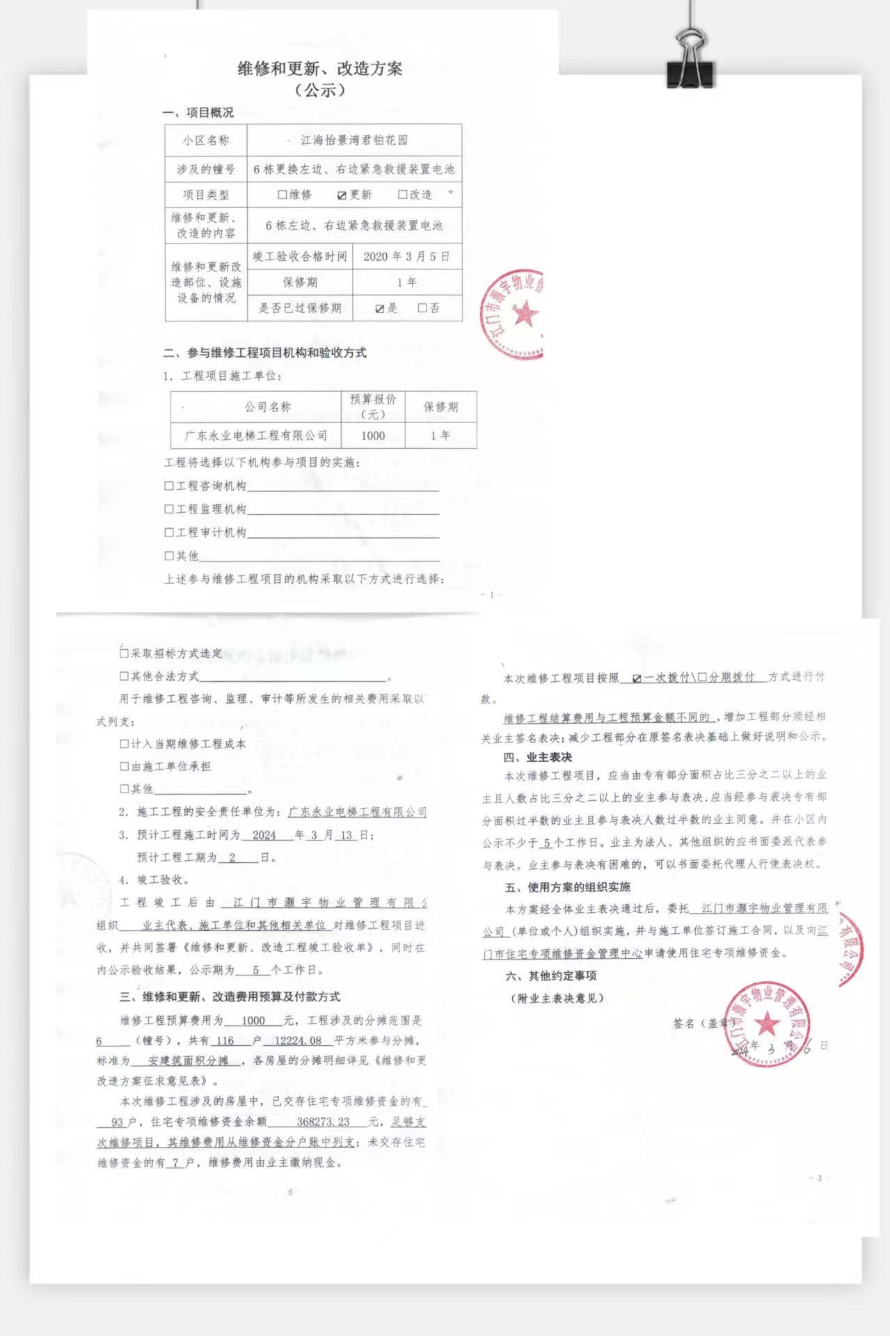 <td VALIGN="top" VALUES="" STYLE="border-width:0" BINDTYPE="0" ROWSPAN="17" COLSPAN="7" DATASOURCE="投票结果" ><font style=" font-family:方正小标宋简体;font-size:14pt;"><p style="line-height: 1.75em;"><span style="font-family: 宋体, SimSun;">各位尊敬的业主:</span><br/></p><p style="text-indent: 2em; line-height: 1.75em;"><span style="font-family: 宋体, SimSun;">根据法律法规的规定,本小区业主利用“江门市物业事项表决管理系统”已对本小区公共事务决策事项进行了表决,在经过7日的询异公示期后,未收到业主有效的异议。现将投票结果公告,并就产生的法律效力说明如下:</span></p><p style="line-height: 1.75em; text-indent: 0em;"><strong style="text-indent: 2em;"><span style="font-family: 宋体, SimSun;">一、投票范围</span></strong></p><p style="text-indent: 2em; line-height: 1.75em;"><span style="font-family: 宋体, SimSun;">江门市江海区怡景湾君铂花园江门市江海区怡景湾君铂花园6栋</span></p><p style="text-indent: 2em; line-height: 1.75em;"><span style="font-family: 宋体, SimSun;">总人数(专有部分人数之和):110</span></p><p style="text-indent: 2em; line-height: 1.75em;"><span style="font-family: 宋体, SimSun;"><span style="font-family: 宋体, SimSun; text-indent: 32px;"><span style="font-family: 宋体; text-indent: 32px;"><span style="font-family: 宋体; text-indent: 32px;">总户数:116</span></span></span></span></p><p style="text-indent: 2em; line-height: 1.75em;"><span style="font-family: 宋体, SimSun;">建筑物总面积(专有部分面积之和):12224.08㎡</span></p><p style="line-height: 1.75em;"><strong><span style="font-family: 宋体, SimSun;">二、投票结果公告时间</span></strong></p><p style="text-indent: 2em; line-height: 1.75em;"><span style="font-family: 宋体, SimSun;">从2024年03月22日开始</span></p><p style="line-height: 1.75em;"><strong><span style="font-family: 宋体, SimSun;">三、计票规则</span></strong></p><p style="text-indent: 2em; line-height: 1.75em;"><span style="font-family: 宋体, SimSun;">表决事项:使用建筑物及其附属设施的维修资金<br /><p style='font-family: 宋体, SimSun;line-height: 1.75em; text-indent: 2em;'>计票规则:弃权票不并入其它项&nbsp;&nbsp;&nbsp;&nbsp;未表决票不并入其它项</p></span></p><p style="line-height: 1.75em;"><strong><span style="font-family: 宋体, SimSun;">四、通过规则</span></strong></p><p style="line-height: 1.75em;"><strong><span style="font-family: 宋体, SimSun;">&nbsp; 根据《中华人民共和国民法典》第二百七十八条规定:业主共同决定事项,应当由专有部分面积占比三分之二以上的业主且人数占比三分之二以上的业主参与表决。</span></strong></p><p style="text-indent: 2em; line-height: 1.75em;"><span style="font-family: 宋体, SimSun;"><span style="font-family: 宋体, SimSun; text-indent: 32px;">表决事项:使用建筑物及其附属设施的维修资金<br /><p style='font-family: 宋体, SimSun;line-height: 1.75em; text-indent: 2em;'>通过规则:双2/3以上参与表决,参与表决双过半同意</p></span></span></p><p style="line-height: 1.75em;"><strong><span style="font-family: 宋体, SimSun;">五、投票结果</span></strong></p><p style="line-height: 1.75em; text-indent: 2em;"><span style="font-family: 宋体, SimSun; text-indent: 2em;"><div id='resultTable'><table style='table-layout: fixed; font-size:12px; margin-top:10px' width='100%' border='0' cellspacing='0' cellpadding='0'><tr><td height='28' colspan='10' align='center' style='border: 1px solid #666'><strong style='font-size: 14px;'> 使用建筑物及其附属设施的维修资金</strong></td> </tr><tr id='trfirst'><td height='28' colspan='4' style='border-left: 1px solid #666; border-bottom: 1px solid #666'><strong>&nbsp;申报单位:</strong> 江门市灏宇物业管理有限公司</td><td colspan='3' style='border-left: 1px solid #666; border-bottom: 1px solid #666'><strong>&nbsp;联系方式:</strong> </td><td colspan='3' style='border-left: 1px solid #666; border-bottom: 1px solid #666; border-right: 1px solid #666'><strong>&nbsp;申报日期:</strong> 2024年3月7日 </td></tr><tr> <td height='28' colspan='5' style='border-left: 1px solid #666; border-bottom: 1px solid #666'><strong>&nbsp;列支总人数(专有部分人数之和):</strong>110人 </td><td colspan='5' style='border-left: 1px solid #666; border-bottom: 1px solid #666; border-right: 1px solid #666'><strong>&nbsp;列支建筑物总面积(专有部分面积之和):</strong>12224.08㎡ </td> </tr><tr><td height='28' colspan='10' bgcolor='#F3F3F3' style='border-left: 1px solid #666;border-bottom: 1px solid #666;border-right: 1px solid #666'><strong>&nbsp;参与表决人数及面积统计</strong></td></tr><tr><td height='28' colspan='5' style='border-left: 1px solid #666; border-bottom: 1px solid #666'><strong>&nbsp;参与表决人数:</strong>86人</td><td colspan='5' style='border-left: 1px solid #666; border-bottom: 1px solid #666; border-right: 1px solid #666'><strong>&nbsp;参与表决人数占总人数比例:</strong>78.18%</td></tr><tr><td height='28' colspan='5' style='border-left: 1px solid #666; border-bottom: 1px solid #666'><strong>&nbsp;参与表决面积:</strong>9079.29㎡</td><td colspan='5' style='border-left: 1px solid #666; border-bottom: 1px solid #666; border-right: 1px solid #666'><strong>&nbsp;参与表决面积占总面积比例:</strong>74.27%</td></tr><tr><td height='28' colspan='10' bgcolor='#F3F3F3' style='border-left: 1px solid #666; border-bottom: 1px solid #666;border-right: 1px solid #666'> <strong>&nbsp;参与表决同意人数及面积统计</strong></td> </tr><tr><td height='28' colspan='5' style='border-left: 1px solid #666; border-bottom: 1px solid #666'><strong>&nbsp;参与表决同意人数:</strong>81人 </td><td colspan='5' style='border-left: 1px solid #666; border-bottom: 1px solid #666;