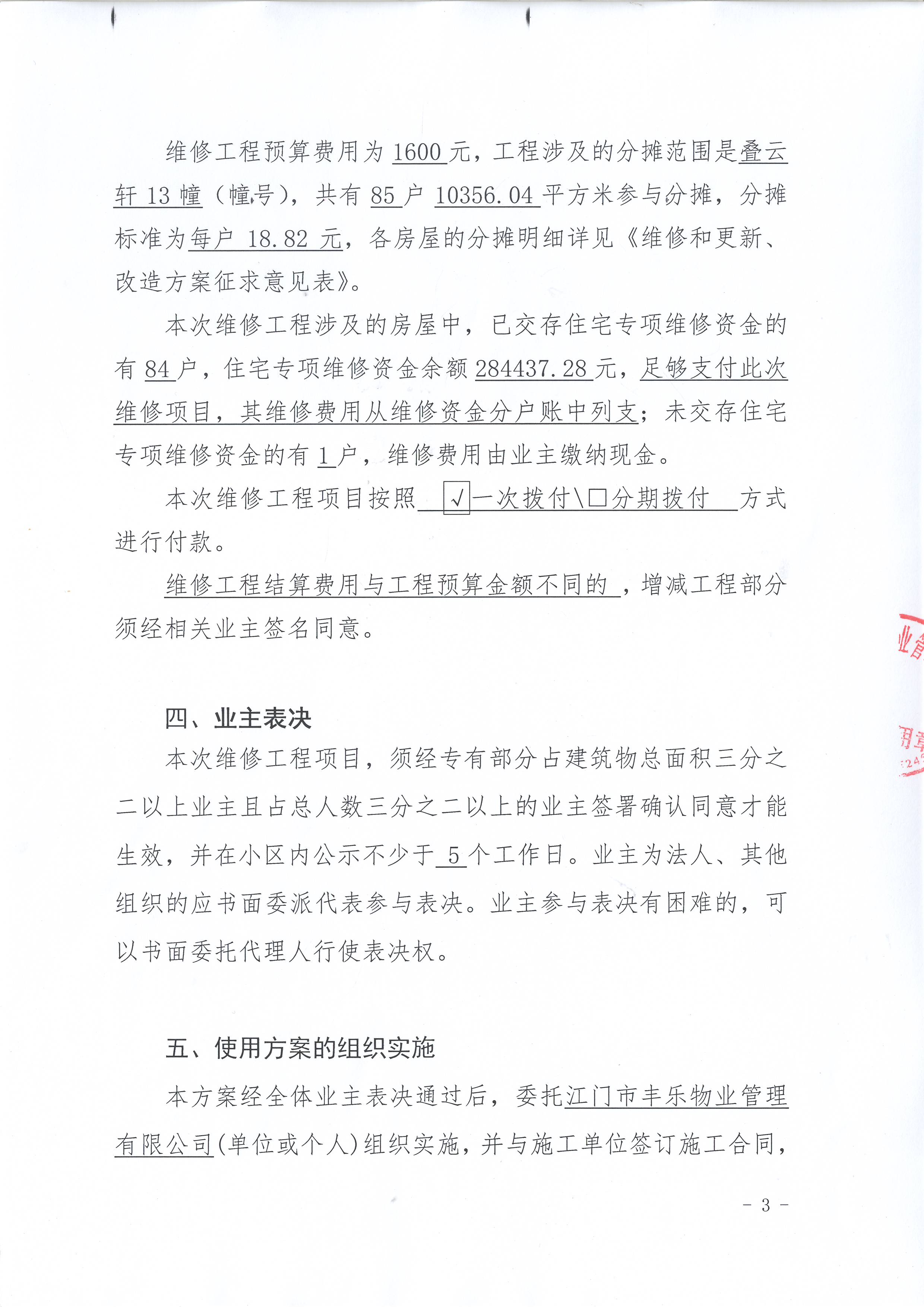 <div style="font-family: 宋体; font-size: 16px;"><p style="text-align: left;">各位尊敬的业主:</p><p style="text-align: left;"> 根据法律法规的规定,本小区业主利用“江门市物业管理公众服务平台”已对本小区公共事务决策事项进行了表决,在经过7日的询异公示期后,未收到业主有效的异议。现将投票结果公告,并就产生的法律效力说明如下:</p><p style="text-align: left;">一、投票范围</p><p style="text-align: left;"> 凤山水岸花园叠云轩13幢</p><p style="text-align: left;"> 总人数(专有部分人数之和):84</p><p style="text-align: left;"> 建筑物总面积(专有部分面积之和):10356.04㎡</p><p style="text-align: left;">二、投票起止时间</p><p style="text-align: left;"> 投票表决时间:从2018年01月22日到2018年02月06日止</p><p style="text-align: left;"> 投票询异公示时间:从2018年02月07日开始</p><p style="text-align: left;"> 投票结果通知公告时间:从2018年02月14日开始</p><p style="text-align: left;">三、投票结果 </p><p style="text-align: left;"><table style='table-layout: fixed; font-size:12px; margin-top:10px' width='100%' border='0' cellspacing='0' cellpadding='0'><tr><td height='28' colspan='10' align='center' style='border: 1px solid #666'><strong style='font-size: 14px;'> 叠云轩13幢2号电梯稳压电源损坏需维修</strong></td> </tr><tr><td height='28' colspan='4' style='border-left: 1px solid #666; border-bottom: 1px solid #666'><strong> 申报单位:</strong> 江门市丰乐物业管理有限公司</td><td colspan='3' style='border-left: 1px solid #666; border-bottom: 1px solid #666'><strong> 联系方式:</strong> 13512344321 </td><td colspan='3' style='border-left: 1px solid #666; border-bottom: 1px solid #666; border-right: 1px solid #666'><strong> 申报日期:</strong> 2018年1月16日 </td></tr><tr> <td height='28' colspan='5' style='border-left: 1px solid #666; border-bottom: 1px solid #666'><strong> 总人数(专有部分人数之和):</strong>84人 </td><td colspan='5' style='border-left: 1px solid #666; border-bottom: 1px solid #666; border-right: 1px solid #666'><strong> 建筑物总面积(专有部分面积之和):</strong>10356.04㎡ </td> </tr><tr><td height='28' colspan='10' bgcolor='#F3F3F3' style='border-left: 1px solid #666;border-bottom: 1px solid #666;border-right: 1px solid #666'><strong> 参与人数及面积统计</strong></td></tr><tr><td height='28' colspan='5' style='border-left: 1px solid #666; border-bottom: 1px solid #666'><strong> 参与表决专有部分人数之和:</strong>7人</td><td colspan='5' style='border-left: 1px solid #666; border-bottom: 1px solid #666; border-right: 1px solid #666'><strong> 参与表决占有表决权总人数比例:</strong>8.33%</td></tr><tr><td height='28' colspan='5' style='border-left: 1px solid #666; border-bottom: 1px solid #666'><strong> 参与表决专有部分面积之和:</strong>854.64㎡</td><td colspan='5' style='border-left: 1px solid #666; border-bottom: 1px solid #666; border-right: 1px solid #666'><strong> 参与表决占有表决权总面积比例:</strong>8.25%</td></tr><tr><td height='28' colspan='10' bgcolor='#F3F3F3' style='border-left: 1px solid #666; border-bottom: 1px solid #666;border-right: 1px solid #666'> <strong> 未参与人数及面积统计</strong></td> </tr><tr><td height='28' colspan='5' style='border-left: 1px solid #666; border-bottom: 1px solid #666'><strong> 未参与表决专有部分人数之和:</strong>77人 </td><td colspan='5' style='border-left: 1px solid #666; border-bottom: 1px solid #666; border-right: 1px solid #666'><strong> 未参与表决占有表决权总人数比例:</strong>91.67%</td></tr><tr><td height='28' colspan='5' style='border-left: 1px solid #666; border-bottom: 1px solid #666'><strong> 未参与表决专有部分面积之和:</strong>9501.40㎡</td><td colspan='5' style='border-left: 1px solid #666; border-bottom: 1px solid #666; border-right: 1px solid #666'><strong> 未参与表决占有表决权总面积比例:</strong>91.75% </td> </tr><tr><td width='6%' rowspan='2' align='center' bgcolor='#F3F3F3' style='border-left: 1px solid #666; border-bottom: 1px solid #666'><strong>序号</strong></td><td width='11%' rowspan='2' align='center' bgcolor='#F3F3F3' style='border-left: 1px solid #666; border-bottom: 1px solid #666'><strong>候选项</strong></td><td height='28' colspan='2' align='center' bgcolor='#F3F3F3' style='border-left: 1px solid #666; border-bottom: 1px solid #666'><strong>表决人数情况</strong> </td><td colspan='2' align='center' bgcolor='#F3F3F3' style='border-left: 1px solid #666; border-bottom: 1px solid #666'><strong>表决面积情况</strong></td><td colspan='4' align='center' bgcolor='#F3F3F3' style='border-left: 1px solid #666; border-bottom: 1px solid #666; border-right: 1px solid #666'><strong>表决方式</strong></td></tr><tr><td width='11%' height='28' align='center' bgcolor='#F3F3F3' style='border-left: 1px solid #666;border-bottom: 1px solid #666'><strong>参与表决<br />专有部分<br />人数之和</strong> </td><td width='11%' align='center' bgcolor='#F3F3F3' style='border-left: 1px solid #666; border-bottom: 1px solid #666'><strong>占有<br /> 表决权<br /> 总人数比例<br /> </strong></td><td width='11%' align='center' bgcolor='#F3F3F3' style='border-left: 1px solid #666; border-bottom: 1px solid #666'><strong>参与表决<br /> 专有部分<br /> 面积之和<br /> </strong></td><td width='13%' align='center' bgcolor='#F3F3F3' style='border-left: 1px solid #666; border-bottom: 1px solid #666'><strong>占有<br />表决权<br />总面积比例</strong></td><td width='9%' align='center' bgcolor='#F3F3F3' style='border-left: 1px solid #666; border-bottom: 1px solid #666'><strong>微信<br /> 投票<br /> </strong></td><td width='7%' align='center' bgcolor='#F3F3F3' style='border-left: 1px solid #666; border-bottom: 1px solid #666'><strong>投票器<br 