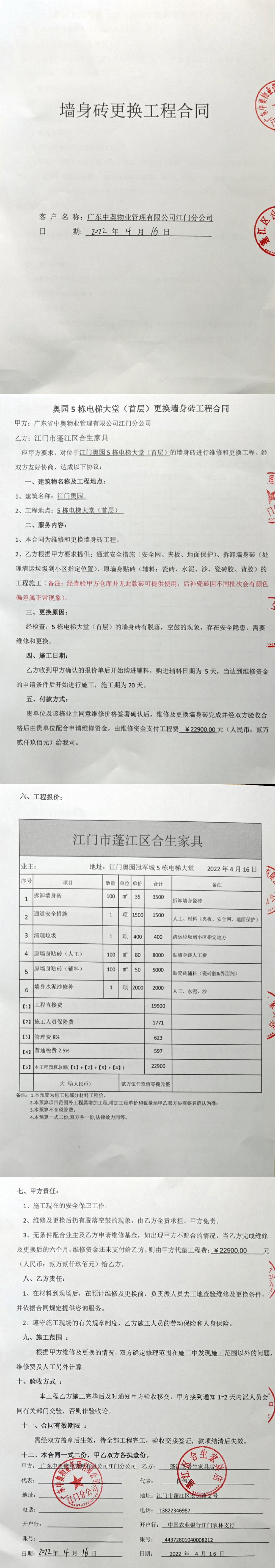 <td VALIGN="top" VALUES="" STYLE="border-width:0" BINDTYPE="0" ROWSPAN="18" COLSPAN="7" DATASOURCE="投票内容" ><font style="font-size:12pt;"><p style="text-align: left; font-family: 宋体; font-size: 16px; line-height: 1.75em; text-indent: 0em;">江门奥园江门奥园5幢全体业主:</p><p style="text-align: left; font-family: 宋体; font-size: 16px; line-height: 1.75em; text-indent: 2em;">本小区关于江门奥园关于使用维修资金修复5栋大堂首层公共部位墙身砖的投票的投票因投票人数不足而延期,延期后投票结束时间由2022年05月16日延至2022年06月10日,由此带来不便,敬请谅解。<br/><br/></p><p style="text-align: left; font-family: 宋体; font-size: 18px; line-height: 1.75em;"><span style="font-size: 16px;"><strong>附件:</strong></span></p><p style="text-align: left; font-family: 宋体; font-size: 16px; line-height: 1.75em;"><br/></p><p style="white-space: normal; font-family: 宋体; font-size: 16px;line-height: 1.75em;"><strong>一、投票范围</strong></p><p style="white-space: normal; font-family: 宋体; font-size: 16px; line-height: 1.75em; text-indent: 2em;">江门奥园江门奥园5幢</p><p style="white-space: normal; font-family: 宋体; font-size: 16px; line-height: 1.75em; text-indent: 2em;">总人数(专有部分人数之和):66</p><p style="white-space: normal; font-family: 宋体; font-size: 16px; line-height: 1.75em; text-indent: 2em;">建筑物总面积(专有部分面积之和):6108.47㎡</p><p style="white-space: normal; font-family: 宋体;font-size: 16px; line-height: 1.75em;"><strong>二、投票起止时间</strong></p><p dir="ltr" style="white-space: normal; font-family: 宋体; font-size: 16px; line-height: 1.75em; text-indent: 2em;">投票表决时间:从2022年04月24日到2022年06月10日止</p><p dir="ltr" style="white-space: normal; font-family: 宋体; font-size: 16px; line-height: 1.75em; text-indent: 2em;">投票询异公示时间:从2022年06月11日开始</p><p dir="ltr" style="white-space: normal; font-family: 宋体; font-size: 16px; line-height: 1.75em; text-indent: 2em;">投票结果通知公告时间:从2022年06月18日开始<br/></p><p style="white-space: normal; font-family: 宋体; font-size: 16px;line-height: 1.75em;"><strong>三、投票详细描述</strong></p><p style="white-space: normal; font-family: 宋体; font-size: 16px; line-height: 1.75em; text-indent: 2em;"><p>5栋的首层大堂出现空鼓、脱离,经检查,是由于 时间年限问题,导致瓷砖胶黏接力不足,已过保修期。现需申请使用维修资金对5栋首层大堂维修,工程维修预算金额为 22900.00 元,项目最终费用以施工合同签订金额为准。维修费用的分摊标准为 按建筑面积分摊 每平方约3.75元 ,详见公示附件。如业主手机不能正常通过微信投票,请联系物业公司进行线下纸质投票,物业电话:0750-3288221</p></p><p style="white-space: normal; font-family: 宋体;font-size: 16px; line-height: 1.75em;"><strong>四、计票规则</strong></p><p style="white-space: normal; font-family: 宋体; font-size: 16px; line-height: 1.75em; text-indent: 2em;">表决事项:使用建筑物及其附属设施的维修资金<br /><p style='text-align: left; font-family: 宋体; font-size: 16px; line-height: 1.75em; text-indent: 2em;'>计票规则:弃权票不并入其它项&nbsp;&nbsp;&nbsp;&nbsp;未表决票不并入其它项</p></p><p style="white-space: normal; font-family: 宋体;font-size: 16px; line-height: 1.75em;"><strong>五、通过规则</strong></p><p style="white-space: normal; font-family: 宋体; font-size: 16px; line-height: 1.75em; text-indent: 2em;"><span style="font-family: 宋体; text-indent: 32px;">表决事项:使用建筑物及其附属设施的维修资金<br /><p style='text-align: left; font-family: 宋体; font-size: 16px; line-height: 1.75em; text-indent: 2em;'>通过规则:参与表决专有部分面积过半数的业主且参与表决人数过半数的业主同意</p></span></p><p style="text-align: left; font-family: 宋体; font-size: 16px; line-height: 1.75em;"><strong>六、投票方式</strong></p><p style="text-align: left; font-family: 宋体; font-size: 16px; line-height: 1.75em; text-indent: 2em;"><span style="font-family: 宋体; line-height: 28px;">在投票事项通知公告日起,请业主扫描二维码或者关注微信公众号(<strong>江门住建</strong>)查看详细情况并进行投票。</span></p><p><br/></p><p style="text-align: right; font-family: 宋体; font-size: 16px; line-height: 1.75em;">申报单位:广东中奥物业管理有限公司江门分公司<br/> &nbsp;&nbsp; &nbsp; &nbsp; &nbsp;&nbsp; &nbsp;2022年05月17日</p></font></td>