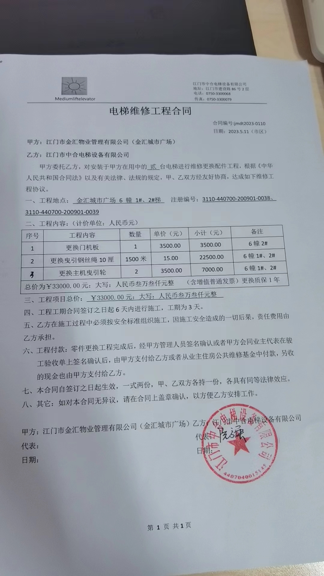 <td VALIGN="top" VALUES="" STYLE="border-width:0" BINDTYPE="0" ROWSPAN="19" COLSPAN="7" DATASOURCE="投票结果" ><font style="font-size:14pt;"><p style="white-space: normal; font-family: 宋体; line-height: 1.75em;">金汇城市广场金汇城市广场6栋全体业主:</p><p style="white-space: normal; font-family: 宋体; line-height: 1.75em; text-indent: 2em;">本小区关于金汇城市广场6幢1#2#电梯更换门机板;更换钢丝绳;更换主机曳引轮工程维修资金的投票的投票已表决结束,询异时间从2023年06月06日开始,投票询异公示期间,业主可通过微信查询自己的表决情况或可凭身份证件申请查询自己的表决情况;如公示的业主表决情况与查询的本人表决意见不一致的,可以以书面形式向投票组织机构申诉,投票组织机构予以纠正并重新公示表决结果。异议提出人对投票组织机构的处理仍有异议的,可以向街道办事处(镇人民政府)反映处理,涉及住宅专项维修资金的,可向属地住宅专项维修资金管理中心反映处理。</p><p style="white-space: normal;"><br/></p><p style="white-space: normal; font-family: 宋体; line-height: 1.75em;"><strong>附件:</strong></p><p style="white-space: normal; font-family: 宋体; line-height: 1.75em;"><strong>一、投票范围</strong></p><p style="white-space: normal; font-family: 宋体; line-height: 1.75em; text-indent: 2em;">金汇城市广场金汇城市广场6栋</p><p style="white-space: normal; font-family: 宋体; line-height: 1.75em; text-indent: 2em;">总人数(专有部分人数之和):36</p><p style="white-space: normal; font-family: 宋体; line-height: 1.75em; text-indent: 2em;"><span style="font-family: 宋体, SimSun;">总户数:39</span></p><p style="white-space: normal; font-family: 宋体; line-height: 1.75em; text-indent: 2em;">建筑物总面积(专有部分面积之和):7310.11㎡</p><p style="white-space: normal; font-family: 宋体; line-height: 1.75em;"><strong>二、询异公示起止时间</strong></p><p dir="ltr" style="white-space: normal; font-family: 宋体; line-height: 1.75em; text-indent: 2em;"><span style="text-indent: 36px;">2023年06月06日至2023年06月12日</span></p><p style="white-space: normal; font-family: 宋体; line-height: 1.75em;"><strong>三、投票详细描述</strong></p><p style="white-space: normal; font-family: 宋体; line-height: 1.75em; text-indent: 2em;"><p>本小区6幢的 1#2#电梯发生故障,经检查,是由于 门机板老化损坏,钢丝绳老化不可再使用,主机曳引轮已老化 ,曳引钢丝绳散股脱离绳槽不能运行,已过保修期。现需申请使用维修资金对6幢1#2#电梯进行维修、更新、改造,工程维修预算金额为33000 元,项目最终费用以施工合同签订金额为准。维修费用的分摊标准为按建筑面积分摊,详见公示附件。物业公司联系电话:3929003。</p></p><p style="white-space: normal; font-family: 宋体; line-height: 1.75em;"><strong>四、计票规则</strong></p><p style="white-space: normal; font-family: 宋体; line-height: 1.75em; text-indent: 2em;">表决事项:使用建筑物及其附属设施的维修资金<br /><p style='text-align: left; font-family: 宋体; font-size: 16px; line-height: 1.75em; text-indent: 2em;'>计票规则:弃权票不并入其它项 未表决票不并入其它项</p></p><p style="white-space: normal; font-family: 宋体; line-height: 1.75em;"><strong>五、通过规则</strong></p><p style="white-space: normal; font-family: 宋体; line-height: 1.75em; text-indent: 2em;">表决事项:使用建筑物及其附属设施的维修资金<br /><p style='text-align: left; font-family: 宋体; font-size: 16px; line-height: 1.75em; text-indent: 2em;'>通过规则:参与表决专有部分面积过半数的业主且参与表决人数过半数的业主同意</p></p><p style="white-space: normal; font-family: 宋体; line-height: 1.75em;"><strong>六、投票结果</strong></p><p style="white-space: normal; font-family: 宋体; line-height: 1.75em; text-indent: 2em;"><div id='resultTable'><table style='table-layout: fixed; font-size:12px; margin-top:10px' width='100%' border='0' cellspacing='0' cellpadding='0'><tr><td height='28' colspan='10' align='center' style='border: 1px solid #666'><strong style='font-size: 14px;'> 使用建筑物及其附属设施的维修资金</strong></td> </tr><tr id='trfirst'><td height='28' colspan='4' style='border-left: 1px solid #666; border-bottom: 1px solid #666'><strong> 申报单位:</strong> 江门市金汇物业管理有限公司</td><td colspan='3' style='border-left: 1px solid #666; border-bottom: 1px solid #666'><strong> 联系方式:</strong> 3929093 </td><td colspan='3' style='border-left: 1px solid #666; border-bottom: 1px solid #666; border-right: 1px solid #666'><strong> 申报日期:</strong> 2023年5月16日 </td></tr><tr> <td height='28' colspan='5' style='border-left: 1px solid #666; border-bottom: 1px solid #666'><strong> 总人数(专有部分人数之和):</strong>36人 </td><td colspan='5' style='border-left: 1px solid #666; border-bottom: 1px solid #666; border-right: 1px solid #666'><strong> 建筑物总面积(专有部分面积之和):</strong>7310.11㎡ </td> </tr><tr><td height='28' colspan='10' bgcolor='#F3F3F3' style='border-left: 1px solid #666;border-bottom: 1px solid #666;border-right: 1px solid #666'><strong> 参与人数及面积统计</strong></td></tr><tr><td height='28' colspan='5' style='border-left: 1px solid #666; border-bottom: 1px solid #666'><strong> 参与表决专有部分人数之和:</strong>26人</td><td colspan='5' style='border-left: 1px solid #666; border-bottom: 1px solid #666; border-right: 1px solid #666'><strong> 参与表决占有表决权总人数比例:</strong>72.22%</td></tr><tr><td height='28' colspan='5' style='border-left: 1px solid #666; border-bottom: 1px solid #666'><strong> 参与表决专有部分面积之和:</strong>5428.41㎡</td><td colspan='5