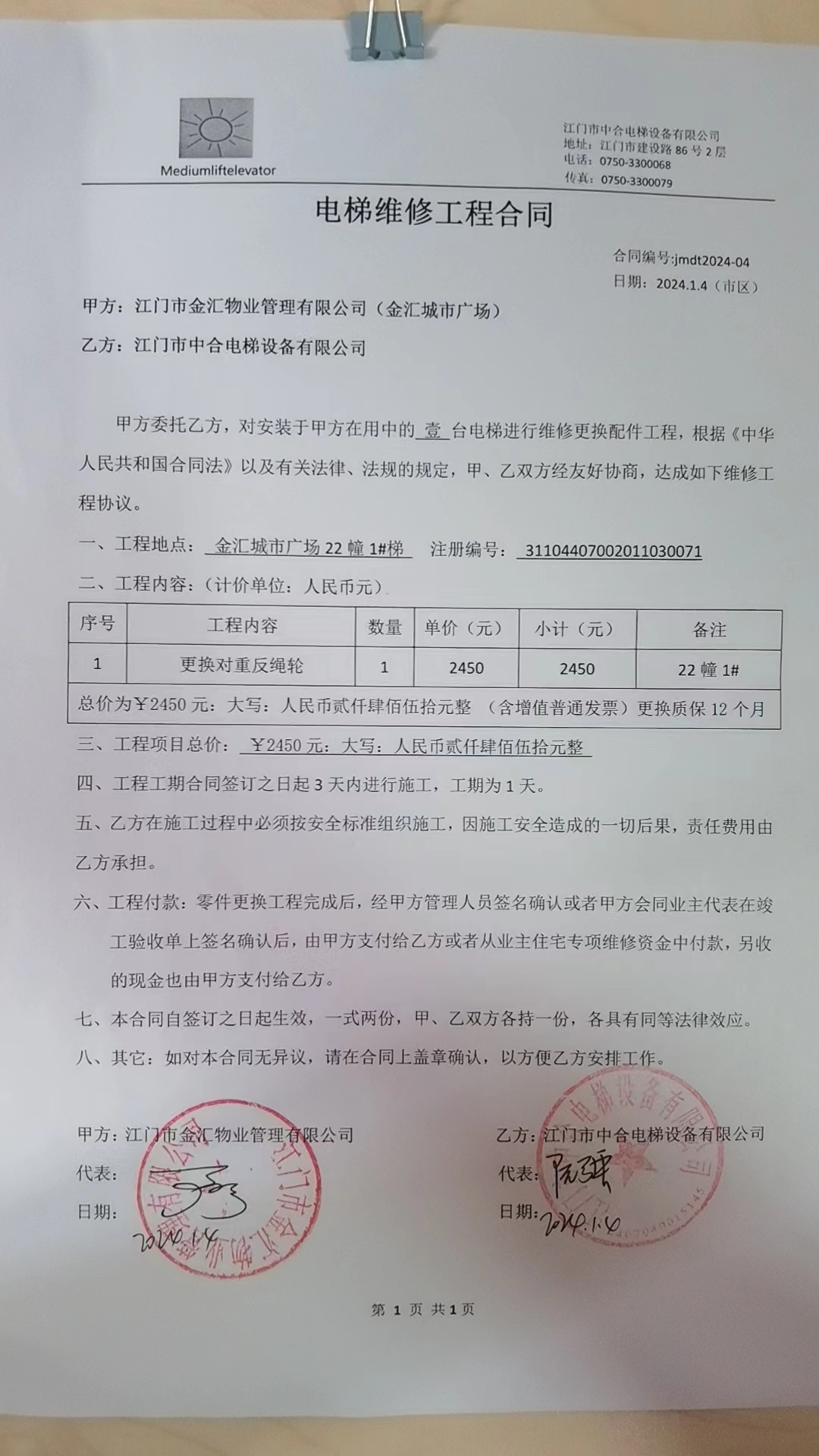 <td VALIGN="top" VALUES="" STYLE="border-width:0" BINDTYPE="0" ROWSPAN="19" COLSPAN="7" DATASOURCE="投票结果" ><font style="font-size:14pt;"><p style="white-space: normal; font-family: 宋体; line-height: 1.75em;">金汇城市广场蓬江区金汇城市广场22幢全体业主:</p><p style="white-space: normal; font-family: 宋体; line-height: 1.75em; text-indent: 2em;">本小区关于金汇城市广场关于22幢1#电梯更换对重反绳轮工程的维修资金的投票的投票已表决结束,询异时间从2024年03月22日开始,投票询异公示期间,业主可通过微信查询自己的表决情况或可凭身份证件申请查询自己的表决情况;如公示的业主表决情况与查询的本人表决意见不一致的,可以以书面形式向投票组织机构申诉,投票组织机构予以纠正并重新公示表决结果。异议提出人对投票组织机构的处理仍有异议的,可以向街道办事处(镇人民政府)反映处理,涉及住宅专项维修资金的,可向属地住宅专项维修资金管理中心反映处理。</p><p style="white-space: normal;"><br/></p><p style="white-space: normal; font-family: 宋体; line-height: 1.75em;"><strong>附件:</strong></p><p style="white-space: normal; font-family: 宋体; line-height: 1.75em;"><strong>一、投票范围</strong></p><p style="white-space: normal; font-family: 宋体; line-height: 1.75em; text-indent: 2em;">金汇城市广场蓬江区金汇城市广场22幢</p><p style="white-space: normal; font-family: 宋体; line-height: 1.75em; text-indent: 2em;">总人数(专有部分人数之和):69</p><p style="white-space: normal; font-family: 宋体; line-height: 1.75em; text-indent: 2em;"><span style="font-family: 宋体, SimSun;"><span style="font-family: 宋体; text-indent: 32px;"><span style="font-family: 宋体; text-indent: 32px;">总户数:69</span></span></span></p><p style="white-space: normal; font-family: 宋体; line-height: 1.75em; text-indent: 2em;">建筑物总面积(专有部分面积之和):9940.82㎡</p><p style="white-space: normal; font-family: 宋体; line-height: 1.75em;"><strong>二、询异公示起止时间</strong></p><p dir="ltr" style="white-space: normal; font-family: 宋体; line-height: 1.75em; text-indent: 2em;"><span style="text-indent: 36px;">2024年03月22日至2024年03月28日</span></p><p style="white-space: normal; font-family: 宋体; line-height: 1.75em;"><strong>三、投票详细描述</strong></p><p style="white-space: normal; font-family: 宋体; line-height: 1.75em; text-indent: 2em;"><p>金汇城市广场小区22幢1#电梯日常运行时出异响,经检查,是由于1#电梯对重反绳轮已老化而不能正常运行,因已过保修期,现需申请使用维修资金对22幢1#电梯进行改造更新,工程维修预算金额为2450元,项目最终费用以施工合同签订金额为准。</p><p>维修费用的分摊标准为按建筑面积分摊,详见公示附件。如业主手机不能正常通过微信投票,请联系物业公司进行线下纸质投票,物业电话:0750-3929003。<br/></p><p><br/></p></p><p style="white-space: normal; font-family: 宋体; line-height: 1.75em;"><strong>四、计票规则</strong></p><p style="white-space: normal; font-family: 宋体; line-height: 1.75em; text-indent: 2em;">表决事项:使用建筑物及其附属设施的维修资金<br /><p style='text-align: left; font-family: 宋体; font-size: 16px; line-height: 1.75em; text-indent: 2em;'>计票规则:弃权票不并入其它项 未表决票不并入其它项</p></p><p style="white-space: normal; font-family: 宋体; line-height: 1.75em;"><strong>五、通过规则</strong></p><p style="white-space: normal; font-family: 宋体; line-height: 1.75em;"><strong><strong style="white-space: normal;"><span style="font-family: 宋体, SimSun;"> 根据《中华人民共和国民法典》第二百七十八条规定:业主共同决定事项,应当由专有部分面积占比三分之二以上的业主且人数占比三分之二以上的业主参与表决。</span></strong></strong></p><p style="white-space: normal; font-family: 宋体; line-height: 1.75em; text-indent: 2em;">表决事项:使用建筑物及其附属设施的维修资金<br /><p style='text-align: left; font-family: 宋体; font-size: 16px; line-height: 1.75em; text-indent: 2em;'>通过规则:双2/3以上参与表决,参与表决双过半同意</p></p><p style="white-space: normal; font-family: 宋体; line-height: 1.75em;"><strong>六、投票结果</strong></p><p style="white-space: normal; font-family: 宋体; line-height: 1.75em; text-indent: 2em;"><div id='resultTable'><table style='table-layout: fixed; font-size:12px; margin-top:10px' width='100%' border='0' cellspacing='0' cellpadding='0'><tr><td height='28' colspan='10' align='center' style='border: 1px solid #666'><strong style='font-size: 14px;'> 使用建筑物及其附属设施的维修资金</strong></td> </tr><tr id='trfirst'><td height='28' colspan='4' style='border-left: 1px solid #666; border-bottom: 1px solid #666'><strong> 申报单位:</strong> 江门市金汇物业管理有限公司</td><td colspan='3' style='border-left: 1px solid #666; border-bottom: 1px solid #666'><strong> 联系方式:</strong> 3929093 </td><td colspan='3' style='border-left: 1px solid #666; border-bottom: 1px solid #666; border-right: 1px solid #666'><strong> 申报日期:</strong> 2024年1月15日 </td></tr><tr> <td height='28' colspan='5' style='border-left: 1px solid #666; border-bottom: 1px solid #666'><strong> 总人数(专有部分人数之和):</strong>69人 </td><td colspan='5' style='border-left: 1px solid #666; border-bottom: 1px solid #666; border-right: 1px solid #666'><strong> 建筑物总面积(专有部分面积之和):</strong>9940.82㎡ </td> </tr><tr><td height='28' colspan='10' bgcolor='#F3F3F3' style='border-left: 1px solid #666;border-bottom: 1px solid #666;border-right: 1px solid #666'><strong> 参与人数及面积统计</strong></td></tr><tr><td hei