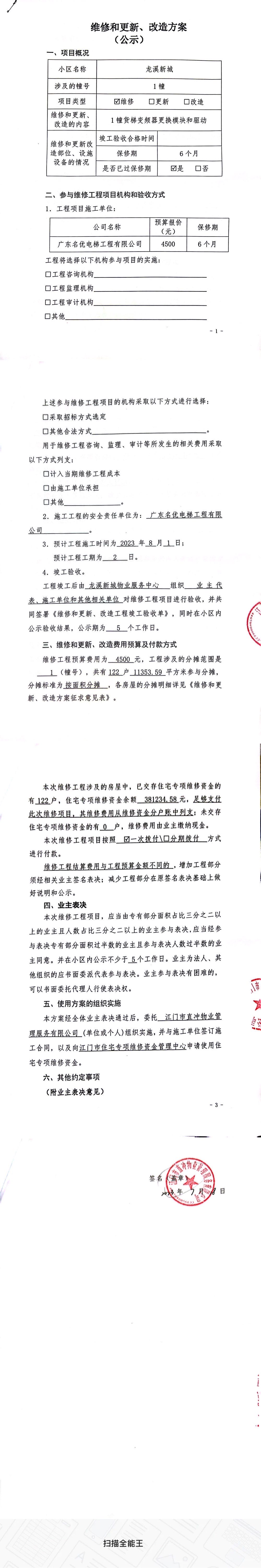 <td valign="top" values="" style="border-width:0" bindtype="0" rowspan="17" colspan="7" datasource="投票结果"><font style=" font-family:方正小标宋简体;font-size:14pt;"><p style="line-height: 1.75em;"><span style="font-family: 宋体, SimSun;">各位尊敬的业主:</span><br></p><p style="text-indent: 2em; line-height: 1.75em;"><span style="font-family: 宋体, SimSun;">根据法律法规的规定,本小区业主利用“物业公共事务决策系统”已对本小区公共事务决策事项进行了表决,在经过7日的询异公示期后,未收到业主有效的异议。现将投票结果公告,并就产生的法律效力说明如下:</span></p><p style="line-height: 1.75em; text-indent: 0em;"><strong style="text-indent: 2em;"><span style="font-family: 宋体, SimSun;">一、投票范围</span></strong></p><p style="text-indent: 2em; line-height: 1.75em;"><span style="font-family: 宋体, SimSun;">江门市江海区外海龙溪新城江海区外海龙溪新城1幢</span></p><p style="text-indent: 2em; line-height: 1.75em;"><span style="font-family: 宋体, SimSun;">总人数(专有部分人数之和):122</span></p><p style="text-indent: 2em; line-height: 1.75em;"><span style="font-family: 宋体, SimSun;"><span style="font-family: 宋体, SimSun; text-indent: 32px;">总户数:122</span></span></p><p style="text-indent: 2em; line-height: 1.75em;"><span style="font-family: 宋体, SimSun;">建筑物总面积(专有部分面积之和):11353.59㎡</span></p><p style="line-height: 1.75em;"><strong><span style="font-family: 宋体, SimSun;">二、投票起止时间</span></strong></p><p style="text-indent: 2em; line-height: 1.75em;"><span style="font-family: 宋体, SimSun;">投票表决时间:从2023年07月26日到2023年08月31日止</span></p><p style="text-indent: 2em; line-height: 1.75em;"><span style="font-family: 宋体, SimSun;">投票询异公示时间:从2023年09月01日开始</span></p><p style="text-indent: 2em; line-height: 1.75em;"><span style="font-family: 宋体, SimSun;">投票结果通知公告时间:从2023年09月08日开始</span></p><p style="line-height: 1.75em;"><strong><span style="font-family: 宋体, SimSun;">三、计票规则</span></strong></p><p style="text-indent: 2em; line-height: 1.75em;"><span style="font-family: 宋体, SimSun;">表决事项:使用建筑物及其附属设施的维修资金<br></span></p><p style="font-family: 宋体, SimSun;line-height: 1.75em; text-indent: 2em;">计票规则:弃权票不并入其它项 未表决票不并入其它项</p><p></p><p style="line-height: 1.75em;"><strong><span style="font-family: 宋体, SimSun;">四、通过规则</span></strong></p><p style="text-indent: 2em; line-height: 1.75em;"><span style="font-family: 宋体, SimSun;"><span style="font-family: 宋体, SimSun; text-indent: 32px;">表决事项:使用建筑物及其附属设施的维修资金<br></span></span></p><p style="font-family: 宋体, SimSun;line-height: 1.75em; text-indent: 2em;">通过规则:参与表决专有部分面积过半数的业主且参与表决人数过半数的业主同意</p><p></p><p style="line-height: 1.75em;"><strong><span style="font-family: 宋体, SimSun;">五、投票结果</span></strong></p><p style="line-height: 1.75em; text-indent: 2em;"><span style="font-family: 宋体, SimSun; text-indent: 2em;"></span></p><div id="resultTable"><table style="table-layout: fixed; font-size:12px; margin-top:10px" width="100%" border="0" cellspacing="0" cellpadding="0"><tbody><tr><td height="28" colspan="10" align="center" style="border: 1px solid #666"><strong style="font-size: 14px;"> 使用建筑物及其附属设施的维修资金</strong></td> </tr><tr id="trfirst"><td height="28" colspan="4" style="border-left: 1px solid #666; border-bottom: 1px solid #666"><strong> 申报单位:</strong> 江门市直冲物业管理服务有限公司</td><td colspan="3" style="border-left: 1px solid #666; border-bottom: 1px solid #666"><strong> 联系方式:</strong> 7503760968 </td><td colspan="3" style="border-left: 1px solid #666; border-bottom: 1px solid #666; border-right: 1px solid #666"><strong> 申报日期:</strong> 2023年7月18日 </td></tr><tr> <td height="28" colspan="5" style="border-left: 1px solid #666; border-bottom: 1px solid #666"><strong> 总人数(专有部分人数之和):</strong>122人 </td><td colspan="5" style="border-left: 1px solid #666; border-bottom: 1px solid #666; border-right: 1px solid #666"><strong> 建筑物总面积(专有部分面积之和):</strong>11353.59㎡ </td> </tr><tr><td height="28" colspan="10" bgcolor="#F3F3F3" style="border-left: 1px solid #666;border-bottom: 1px solid #666;border-right: 1px solid #666"><strong> 参与人数及面积统计</strong></td></tr><tr><td height="28" colspan="5" style="border-left: 1px solid #666; border-bottom: 1px solid #666"><strong> 参与表决专有部分人数之和:</strong>86人</td><td colspan="5" style="border-left: 1px solid #666; border-bottom: 1px solid #666; border-right: 1px solid #666"><strong> 参与表决占有表决权总人数比例:</strong>70.49%</td></tr><tr><td height="28" colspan="5" style="border-left: 1px solid #666; border-bottom: 1px solid #666"><strong> 参与表决专有部分面积之和:</strong>8057.88㎡</td><td colspan="5" style="border-left: 1px solid #666; border-bottom: 1px solid #666; border-right: 1px solid #666"><strong> 参与表决占有表决权总面积比例:</strong>70.97%</td></tr><tr><td height="28" colspan="10" bgcolor="#F3F3F3" style="border-left: 1px solid #666; border-bottom: 1px solid #666;border-right: 1px solid #666"> <strong> 未参与人数及面积统计</strong></td> </tr><tr><td height="28" colspan="5" style="border-left: 1px solid #666; border-bottom: 1px solid #666"><strong> 未参与表决专有部分人数之和:</strong>36人 </td><td colspan="5" style="border-left: 1px solid #666; border-bottom: 1px solid #666; border-right: 1px solid #666"><strong> 未参与表决占有表决权总人数比