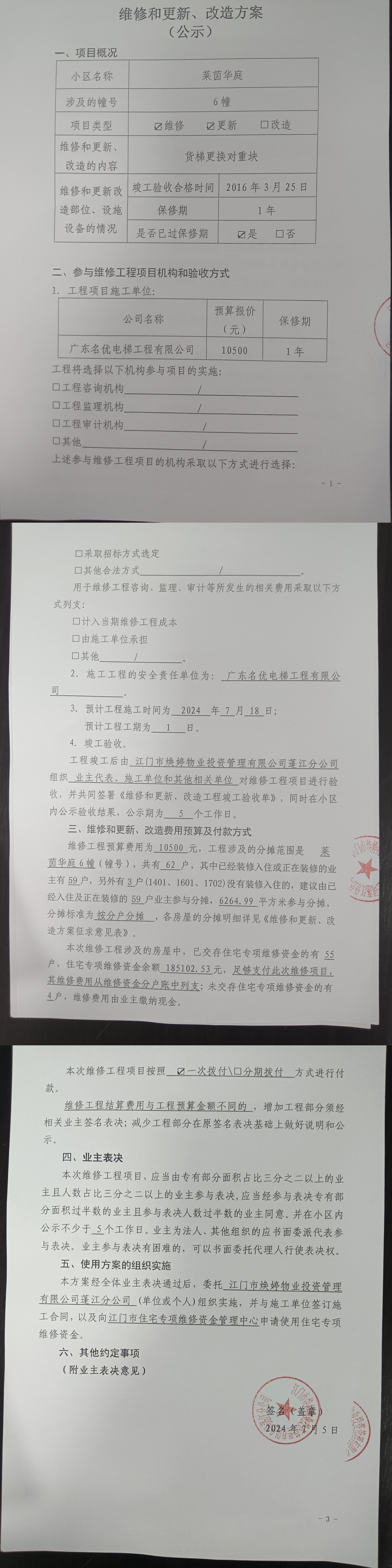 <td VALIGN="top" VALUES="" STYLE="border-width:0" BINDTYPE="0" ROWSPAN="17" COLSPAN="7" DATASOURCE="投票结果" ><font style=" font-family:方正小标宋简体;font-size:14pt;"><p style="line-height: 1.75em;"><span style="font-family: 宋体, SimSun;">各位尊敬的业主:</span><br/></p><p style="text-indent: 2em; line-height: 1.75em;"><span style="font-family: 宋体, SimSun;">根据法律法规的规定,本小区业主利用“江门市物业事项表决管理系统”已对本小区公共事务决策事项进行了表决,在经过7日的询异公示期后,未收到业主有效的异议。现将投票结果公告,并就产生的法律效力说明如下:</span></p><p style="line-height: 1.75em; text-indent: 0em;"><strong style="text-indent: 2em;"><span style="font-family: 宋体, SimSun;">一、投票范围</span></strong></p><p style="text-indent: 2em; line-height: 1.75em;"><span style="font-family: 宋体, SimSun;">莱茵华庭蓬江区莱茵华庭6幢</span></p><p style="text-indent: 2em; line-height: 1.75em;"><span style="font-family: 宋体, SimSun;">总人数(专有部分人数之和):59</span></p><p style="text-indent: 2em; line-height: 1.75em;"><span style="font-family: 宋体, SimSun;"><span style="font-family: 宋体, SimSun; text-indent: 32px;"><span style="font-family: 宋体; text-indent: 32px;"><span style="font-family: 宋体; text-indent: 32px;">总户数:59</span></span></span></span></p><p style="text-indent: 2em; line-height: 1.75em;"><span style="font-family: 宋体, SimSun;">建筑物总面积(专有部分面积之和):6264.99㎡</span></p><p style="line-height: 1.75em;"><strong><span style="font-family: 宋体, SimSun;">二、投票结果公告时间</span></strong></p><p style="text-indent: 2em; line-height: 1.75em;"><span style="font-family: 宋体, SimSun;"><span style="font-family: 宋体, SimSun; text-indent: 32px;">从2024年08月08日开始</span></span></p><p style="line-height: 1.75em;"><strong><span style="font-family: 宋体, SimSun;">三、计票规则</span></strong></p><p style="text-indent: 2em; line-height: 1.75em;"><span style="font-family: 宋体, SimSun;">表决事项:使用建筑物及其附属设施的维修资金<br /><p style='font-family: 宋体, SimSun;line-height: 1.75em; text-indent: 2em;'>计票规则:弃权票不并入其它项&nbsp;&nbsp;&nbsp;&nbsp;未表决票不并入其它项</p></span></p><p style="line-height: 1.75em;"><strong><span style="font-family: 宋体, SimSun;">四、通过规则</span></strong></p><p style="line-height: 1.75em;"><strong><span style="font-family: 宋体, SimSun;">&nbsp; 根据《中华人民共和国民法典》第二百七十八条规定:业主共同决定事项,应当由专有部分面积占比三分之二以上的业主且人数占比三分之二以上的业主参与表决。</span></strong></p><p style="text-indent: 2em; line-height: 1.75em;"><span style="font-family: 宋体, SimSun;"><span style="font-family: 宋体, SimSun; text-indent: 32px;">表决事项:使用建筑物及其附属设施的维修资金<br /><p style='font-family: 宋体, SimSun;line-height: 1.75em; text-indent: 2em;'>通过规则:双2/3以上参与表决,参与表决双过半同意</p></span></span></p><p style="line-height: 1.75em;"><strong><span style="font-family: 宋体, SimSun;">五、投票结果</span></strong></p><p style="line-height: 1.75em; text-indent: 2em;"><span style="font-family: 宋体, SimSun; text-indent: 2em;"><div id='resultTable'><table style='table-layout: fixed; font-size:12px; margin-top:10px' width='100%' border='0' cellspacing='0' cellpadding='0'><tr><td height='28' colspan='10' align='center' style='border: 1px solid #666'><strong style='font-size: 14px;'> 使用建筑物及其附属设施的维修资金</strong></td> </tr><tr id='trfirst'><td height='28' colspan='4' style='border-left: 1px solid #666; border-bottom: 1px solid #666'><strong>&nbsp;申报单位:</strong> 江门市焕婷物业投资管理有限公司蓬江分公司</td><td colspan='3' style='border-left: 1px solid #666; border-bottom: 1px solid #666'><strong>&nbsp;联系方式:</strong> 3211392 </td><td colspan='3' style='border-left: 1px solid #666; border-bottom: 1px solid #666; border-right: 1px solid #666'><strong>&nbsp;申报日期:</strong> 2024年7月5日 </td></tr><tr> <td height='28' colspan='5' style='border-left: 1px solid #666; border-bottom: 1px solid #666'><strong>&nbsp;总人数(专有部分人数之和):</strong>59人 </td><td colspan='5' style='border-left: 1px solid #666; border-bottom: 1px solid #666; border-right: 1px solid #666'><strong>&nbsp;建筑物总面积(专有部分面积之和):</strong>6264.99㎡ </td> </tr><tr><td height='28' colspan='10' bgcolor='#F3F3F3' style='border-left: 1px solid #666;border-bottom: 1px solid #666;border-right: 1px solid #666'><strong>&nbsp;参与表决人数及面积统计</strong></td></tr><tr><td height='28' colspan='5' style='border-left: 1px solid #666; border-bottom: 1px solid #666'><strong>&nbsp;参与表决人数:</strong>44人</td><td colspan='5' style='border-left: 1px solid #666; border-bottom: 1px solid #666; border-right: 1px solid #666'><strong>&nbsp;参与表决人数占总人数比例:</strong>74.58%</td></tr><tr><td height='28' colspan='5' style='border-left: 1px solid #666; border-bottom: 1px solid #666'><strong>&nbsp;参与表决面积:</strong>4690.71㎡</td><td colspan='5' style='border-left: 1px solid #666; border-bottom: 1px solid #666; border-right: 1px solid #666'><strong>&nbsp;参与表决面积占总面积比例:</strong>74.87%</td></tr><tr><td height='28' colspan='10' bgcolor='#F3F3F3' style='border-left: 1px solid #666; border-bottom: 1px solid #666;border-right: 1px solid #666'> <strong>&nbsp;参与表决同意人数及面积统计</strong></td> </tr><tr><td height='28' colspan='5' style='border-left: 1px solid #666; border-bottom: 1px solid #666'><strong>&nbsp;参与表决同意人数:</strong>43人 </td><td colspan='5' style='border-left: 1px solid 