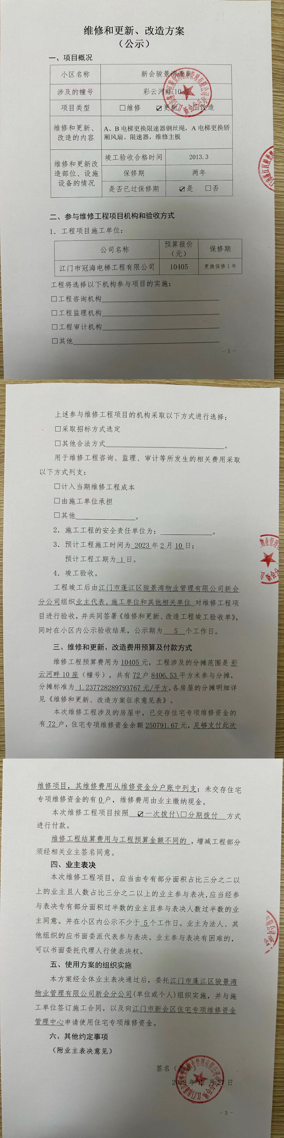 <td VALIGN="top" VALUES="" STYLE="border-width:0" BINDTYPE="0" ROWSPAN="17" COLSPAN="7" DATASOURCE="投票结果" ><font style=" font-family:方正小标宋简体;font-size:14pt;"><p style="line-height: 1.75em;"><span style="font-family: 宋体, SimSun;">各位尊敬的业主:</span><br/></p><p style="text-indent: 2em; line-height: 1.75em;"><span style="font-family: 宋体, SimSun;">根据法律法规的规定,本小区业主利用“物业公共事务决策系统”已对本小区公共事务决策事项进行了表决,在经过7日的询异公示期后,未收到业主有效的异议。现将投票结果公告,并就产生的法律效力说明如下:</span></p><p style="line-height: 1.75em; text-indent: 0em;"><strong style="text-indent: 2em;"><span style="font-family: 宋体, SimSun;">一、投票范围</span></strong></p><p style="text-indent: 2em; line-height: 1.75em;"><span style="font-family: 宋体, SimSun;">新会骏景湾豪庭彩云河畔10座</span></p><p style="text-indent: 2em; line-height: 1.75em;"><span style="font-family: 宋体, SimSun;">总人数(专有部分人数之和):71</span></p><p style="text-indent: 2em; line-height: 1.75em;"><span style="font-family: 宋体, SimSun;"><span style="font-family: 宋体, SimSun; text-indent: 32px;">总户数:{TotalHouseCount}</span></span></p><p style="text-indent: 2em; line-height: 1.75em;"><span style="font-family: 宋体, SimSun;">建筑物总面积(专有部分面积之和):8406.53㎡</span></p><p style="line-height: 1.75em;"><strong><span style="font-family: 宋体, SimSun;">二、投票起止时间</span></strong></p><p style="text-indent: 2em; line-height: 1.75em;"><span style="font-family: 宋体, SimSun;">投票表决时间:从2023年01月10日到2023年01月31日止</span></p><p style="text-indent: 2em; line-height: 1.75em;"><span style="font-family: 宋体, SimSun;">投票询异公示时间:从2023年02月01日开始</span></p><p style="text-indent: 2em; line-height: 1.75em;"><span style="font-family: 宋体, SimSun;">投票结果通知公告时间:从2023年02月08日开始</span></p><p style="line-height: 1.75em;"><strong><span style="font-family: 宋体, SimSun;">三、计票规则</span></strong></p><p style="text-indent: 2em; line-height: 1.75em;"><span style="font-family: 宋体, SimSun;">表决事项:使用建筑物及其附属设施的维修资金<br /><p style='font-family: 宋体, SimSun;line-height: 1.75em; text-indent: 2em;'>计票规则:弃权票不并入其它项&nbsp;&nbsp;&nbsp;&nbsp;未表决票不并入其它项</p></span></p><p style="line-height: 1.75em;"><strong><span style="font-family: 宋体, SimSun;">四、通过规则</span></strong></p><p style="text-indent: 2em; line-height: 1.75em;"><span style="font-family: 宋体, SimSun;"><span style="font-family: 宋体, SimSun; text-indent: 32px;">表决事项:使用建筑物及其附属设施的维修资金<br /><p style='font-family: 宋体, SimSun;line-height: 1.75em; text-indent: 2em;'>通过规则:参与表决专有部分面积过半数的业主且参与表决人数过半数的业主同意</p></span></span></p><p style="line-height: 1.75em;"><strong><span style="font-family: 宋体, SimSun;">五、投票结果</span></strong></p><p style="line-height: 1.75em; text-indent: 2em;"><span style="font-family: 宋体, SimSun; text-indent: 2em;"><div id='resultTable'><table style='table-layout: fixed; font-size:12px; margin-top:10px' width='100%' border='0' cellspacing='0' cellpadding='0'><tr><td height='28' colspan='10' align='center' style='border: 1px solid #666'><strong style='font-size: 14px;'> 使用建筑物及其附属设施的维修资金</strong></td> </tr><tr id='trfirst'><td height='28' colspan='4' style='border-left: 1px solid #666; border-bottom: 1px solid #666'><strong>&nbsp;申报单位:</strong> 江门市蓬江区骏景湾物业管理有限公司新会分公司</td><td colspan='3' style='border-left: 1px solid #666; border-bottom: 1px solid #666'><strong>&nbsp;联系方式:</strong> </td><td colspan='3' style='border-left: 1px solid #666; border-bottom: 1px solid #666; border-right: 1px solid #666'><strong>&nbsp;申报日期:</strong> 2023年1月5日 </td></tr><tr> <td height='28' colspan='5' style='border-left: 1px solid #666; border-bottom: 1px solid #666'><strong>&nbsp;总人数(专有部分人数之和):</strong>71人 </td><td colspan='5' style='border-left: 1px solid #666; border-bottom: 1px solid #666; border-right: 1px solid #666'><strong>&nbsp;建筑物总面积(专有部分面积之和):</strong>8406.53㎡ </td> </tr><tr><td height='28' colspan='10' style='border: 1px solid #666'><strong>&nbsp;该事项表决是否通过:通过(选项为:A:同意)</strong></td></tr><tr><td height='28' colspan='10' bgcolor='#F3F3F3' style='border-left: 1px solid #666;border-bottom: 1px solid #666;border-right: 1px solid #666'><strong>&nbsp;参与人数及面积统计</strong></td></tr><tr><td height='28' colspan='5' style='border-left: 1px solid #666; border-bottom: 1px solid #666'><strong>&nbsp;参与表决专有部分人数之和:</strong>49人</td><td colspan='5' style='border-left: 1px solid #666; border-bottom: 1px solid #666; border-right: 1px solid #666'><strong>&nbsp;参与表决占有表决权总人数比例:</strong>69.01%</td></tr><tr><td height='28' colspan='5' style='border-left: 1px solid #666; border-bottom: 1px solid #666'><strong>&nbsp;参与表决专有部分面积之和:</strong>5610.03㎡</td><td colspan='5' style='border-left: 1px solid #666; border-bottom: 1px solid #666; border-right: 1px solid #666'><strong>&nbsp;参与表决占有表决权总面积比例:</strong>66.73%</td></tr><tr><td height='28' colspan='10' bgcolor='#F3F3F3' style='border-left: 1px solid #666; border-bottom: 1px solid #666;border-right: 1px solid #666'> <strong>&nbsp;未参与人数及面积统计</strong></td> </tr><tr><td height='28' colspan='5' style='border-left: 1px solid #666; border-bottom: 1px solid #666'><strong>&nbsp;未参与表决专有部分