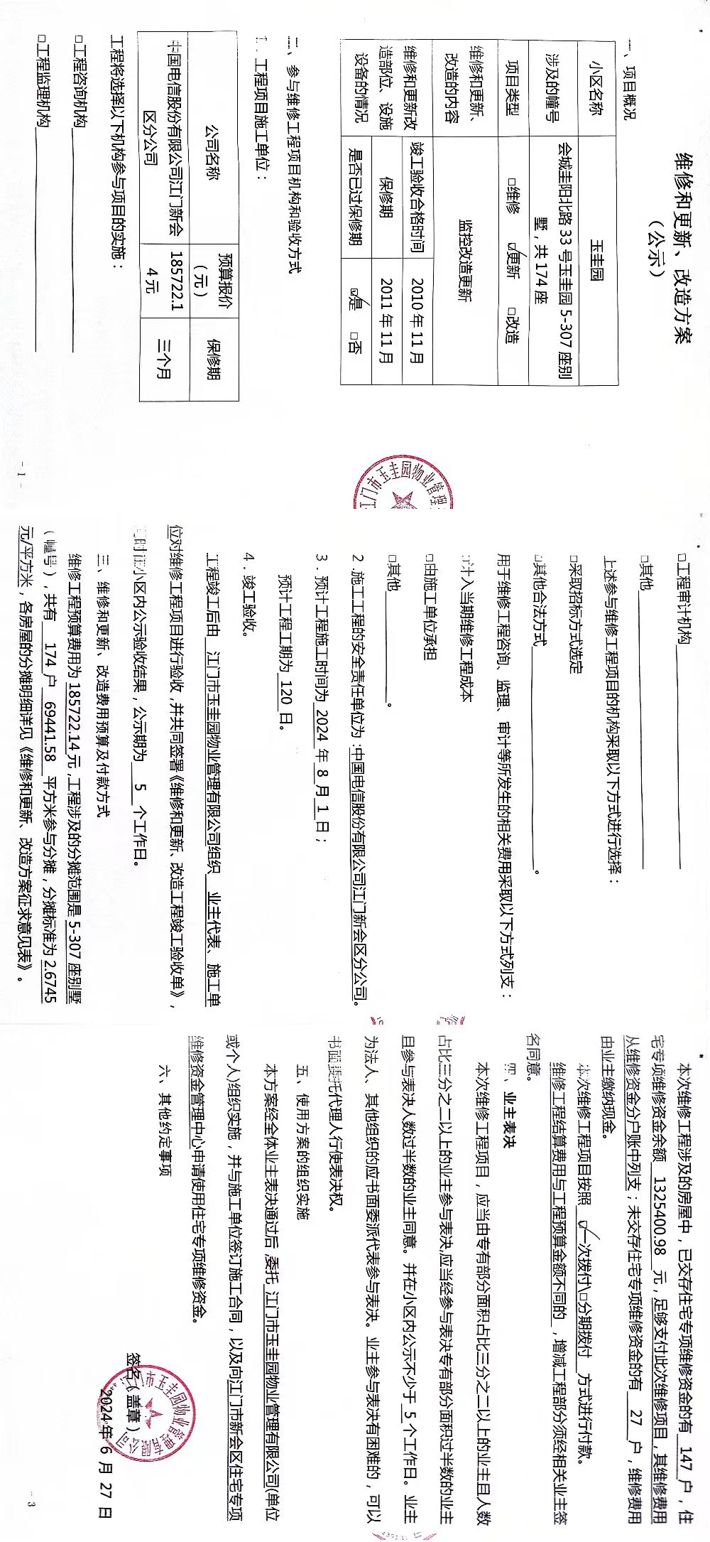 <td VALIGN="top" VALUES="" STYLE="border-width:0" BINDTYPE="0" ROWSPAN="17" COLSPAN="7" DATASOURCE="投票结果" ><font style=" font-family:方正小标宋简体;font-size:14pt;"><p style="line-height: 1.75em;"><span style="font-family: 宋体, SimSun;">各位尊敬的业主:</span><br/></p><p style="text-indent: 2em; line-height: 1.75em;"><span style="font-family: 宋体, SimSun;">根据法律法规的规定,本小区业主利用“江门市物业事项表决管理系统”已对本小区公共事务决策事项进行了表决,在经过7日的询异公示期后,未收到业主有效的异议。现将投票结果公告,并就产生的法律效力说明如下:</span></p><p style="line-height: 1.75em; text-indent: 0em;"><strong style="text-indent: 2em;"><span style="font-family: 宋体, SimSun;">一、投票范围</span></strong></p><p style="text-indent: 2em; line-height: 1.75em;"><span style="font-family: 宋体, SimSun;">玉圭园221、33号玉圭园128座、33号玉圭园216座、33号玉圭园218座、33号玉圭园219座、33号玉圭园220座、33号玉圭园297座、33号玉圭园299座、33号玉圭园301座、33号玉圭园303座、圭阳北路33号玉圭园223座、会城圭阳北路33号玉圭园178座、会城圭阳北路33号玉圭园180座、会城圭阳北路33号玉圭园233座、玉圭园100座、玉圭园101座、玉圭园102座、玉圭园103座、玉圭园105座、玉圭园106座、玉圭园107座、玉圭园108座、玉圭园109座、玉圭园10座、玉圭园110座、玉圭园111座、玉圭园112座、玉圭园113座、玉圭园115座、玉圭园116座、玉圭园117座、玉圭园118座、玉圭园11座、玉圭园121座、玉圭园122座、玉圭园123座、玉圭园125座、玉圭园126座、玉圭园127座、玉圭园129座、玉圭园12座、玉圭园130座、玉圭园131座、玉圭园132座、玉圭园133座、玉圭园135座、玉圭园136座、玉圭园137座、玉圭园138座、玉圭园139座、玉圭园13座、玉圭园15座、玉圭园160座、玉圭园161座、玉圭园162座、玉圭园163座、玉圭园165座、玉圭园166座、玉圭园168座、玉圭园16座、玉圭园170座、玉圭园171座、玉圭园172座、玉圭园173座、玉圭园175座、玉圭园176座、玉圭园177座、玉圭园179座、玉圭园17座、玉圭园181座、玉圭园182座、玉圭园183座、玉圭园185座、玉圭园186座、玉圭园187座、玉圭园188座、玉圭园189座、玉圭园18座、玉圭园190座、玉圭园191座、玉圭园192座、玉圭园193座、玉圭园195座、玉圭园196座、玉圭园197座、玉圭园199座、玉圭园19座、玉圭园200座、玉圭园201座、玉圭园202座、玉圭园203座、玉圭园205座、玉圭园206座、玉圭园207座、玉圭园208座、玉圭园209座、玉圭园20座、玉圭园210座、玉圭园211座、玉圭园212座、玉圭园213座、玉圭园215座、玉圭园217座、玉圭园21座、玉圭园222座、玉圭园225座、玉圭园226座、玉圭园227座、玉圭园228座、玉圭园229座、玉圭园22座、玉圭园230座、玉圭园231座、玉圭园232座、玉圭园235座、玉圭园236座、玉圭园237座、玉圭园238座、玉圭园239座、玉圭园23座、玉圭园25座、玉圭园260座、玉圭园261座、玉圭园262座、玉圭园265座、玉圭园26座、玉圭园271座、玉圭园272座、玉圭园277座、玉圭园278座、玉圭园279座、玉圭园27座、玉圭园280座、玉圭园281座、玉圭园282座、玉圭园283座、玉圭园285座、玉圭园286座、玉圭园287座、玉圭园288座、玉圭园289座、玉圭园28座、玉圭园290座、玉圭园291座、玉圭园292座、玉圭园293座、玉圭园295座、玉圭园296座、玉圭园298座、玉圭园29座、玉圭园300座、玉圭园302座、玉圭园305座、玉圭园306座、玉圭园307座、玉圭园5座、玉圭园6座、玉圭园7座、玉圭园86座、玉圭园87座、玉圭园88座、玉圭园89座、玉圭园8座、玉圭园90座、玉圭园91座、玉圭园92座、玉圭园93座、玉圭园95座、玉圭园96座、玉圭园97座、玉圭园98座、玉圭园99座、玉圭园9座</span></p><p style="text-indent: 2em; line-height: 1.75em;"><span style="font-family: 宋体, SimSun;">总人数(专有部分人数之和):142</span></p><p style="text-indent: 2em; line-height: 1.75em;"><span style="font-family: 宋体, SimSun;"><span style="font-family: 宋体, SimSun; text-indent: 32px;"><span style="font-family: 宋体; text-indent: 32px;"><span style="font-family: 宋体; text-indent: 32px;">总户数:174</span></span></span></span></p><p style="text-indent: 2em; line-height: 1.75em;"><span style="font-family: 宋体, SimSun;">建筑物总面积(专有部分面积之和):69441.58㎡</span></p><p style="line-height: 1.75em;"><strong><span style="font-family: 宋体, SimSun;">二、投票结果公告时间</span></strong></p><p style="text-indent: 2em; line-height: 1.75em;"><span style="font-family: 宋体, SimSun;"><span style="font-family: 宋体, SimSun; text-indent: 32px;">从2024年07月23日开始</span></span></p><p style="line-height: 1.75em;"><strong><span style="font-family: 宋体, SimSun;">三、计票规则</span></strong></p><p style="text-indent: 2em; line-height: 1.75em;"><span style="font-family: 宋体, SimSun;">表决事项:玉圭园监控改造项目(别墅)使用维修资金的投票<br /><p style='font-family: 宋体, SimSun;line-height: 1.75em; text-indent: 2em;'>计票规则:弃权票不并入其它项&nbsp;&nbsp;&nbsp;&nbsp;未表决票不并入其它项</p></span></p><p style="line-height: 1.75em;"><strong><span style="font-family: 宋体, SimSun;">四、通过规则</span></strong></p><p style="line-height: 1.75em;"><strong><span style="font-family: 宋体, SimSun;">&nbsp; 根据《中华人民共和国民法典》第二百七十八条规定:业主共同决定事项,应当由专有部分面积占比三分之二以上的业主且人数占比三分之二以上的业主参与表决。</span