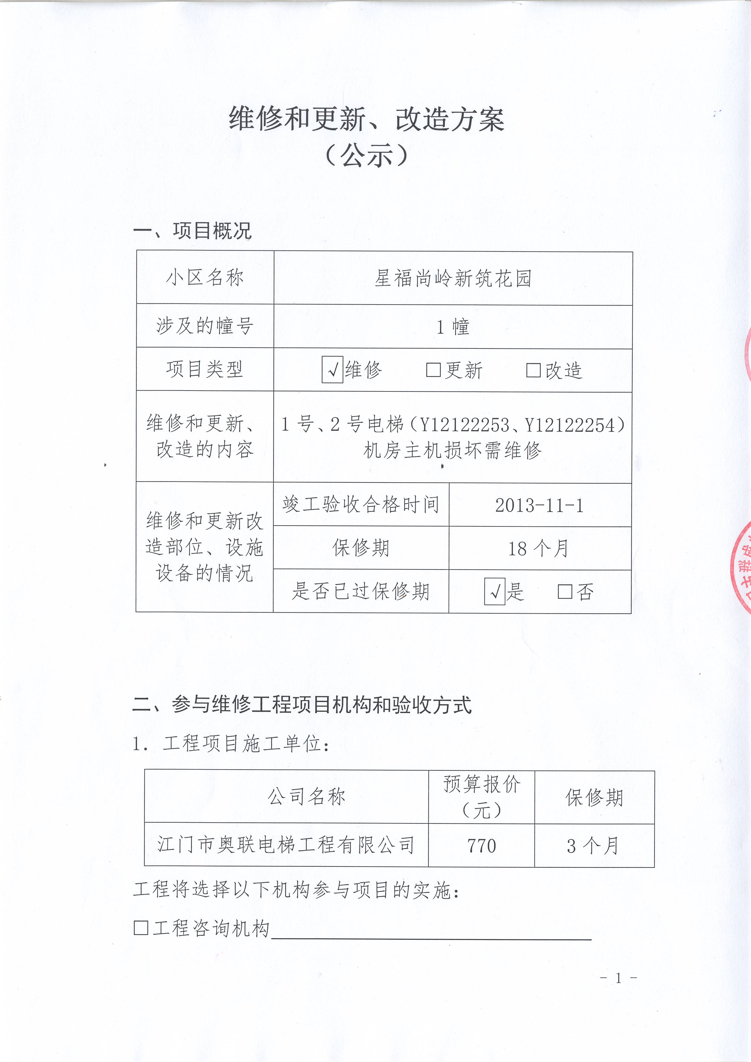 <span style="font-family: 宋体;"> 本小区关于星福尚岭新筑花园1号、2号电梯(Y12122253、Y12122254)机房主机损坏需维修的投票<span style="font-family: 宋体; font-size: 16px;">已表决结束</span>,</span><span style="font-family: 宋体;">询异时间从2018年04月15日开始,投票询异公示期间,业主可进行以下操作:</span></p><p style="text-align: left; line-height: 1.75em; font-family: 宋体; font-size: 16px;"><span style="font-family: 宋体;"></span></p><p style="text-align: left;"><span style="font-family: 宋体;"> </span><span style="font-family: 宋体;"> </span>一、查询表决情况</p><p style="text-align: left;"><span style="font-family: 宋体;"> </span><span style="font-family: 宋体;"> </span>业主可通过微信服务平台、或江门市物业管理公众服务平台(网址:wygl.jmzjj.gov.cn/)登录查询自己的表决情况。如需到管理部门查询的,投票事项属于“决定维修资金使用、管理、续筹方案”的,业主可凭身份证件到所属维修资金管理中心查询;非涉及维修资金的投票事项,业主可凭身份证件到所属区住建部门、或街道办事处(镇人民政府)、居(村)民委员会申请查询自己的表决情况。</p><p style="text-align: left;"><span style="font-family: 宋体;"> </span><span style="font-family: 宋体;"> </span>二、申诉变更投票表决意见</p><p style="text-align: left;"><span style="font-family: 宋体;"> </span><span style="font-family: 宋体;"> </span>如业主意见与查询到的表决意见不一致的,投票事项属于“决定维修资金使用、管理、续筹方案”的,业主可以书面形式向所属维修资金管理中心申诉;非涉及维修资金的投票事项,业主可以书面形式向所属区住建部门、或街道办事处(镇人民政府)、居(村)民委员会申诉。经核查业主反映情况属实的,予以纠正并重新公示表决结果。</p><p style="text-align: left; line-height: 1.75em; font-family: 宋体; font-size: 16px;"><span style="font-family: sans-serif;"> </span></p><p style="text-align: left; line-height: 1.75em; font-family: 宋体; font-size: 16px;"><strong><span style="font-family: 宋体;">附件:</span></strong></p><p style="text-align: left; line-height: 1.75em; font-family: 宋体; font-size: 16px;"><strong>一、投票范围</strong></p><p style="text-align: left; line-height: 1.75em; font-family: 宋体; font-size: 16px;"> 星福尚岭新筑花园1幢<br/>