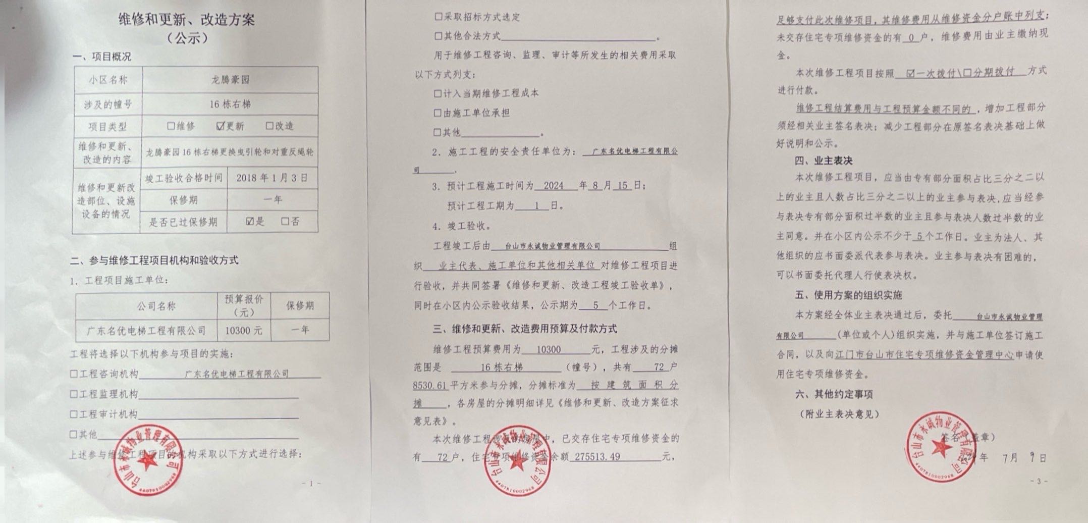 <td VALIGN="top" VALUES="" STYLE="border-width:0" BINDTYPE="0" ROWSPAN="17" COLSPAN="7" DATASOURCE="投票结果" ><font style=" font-family:方正小标宋简体;font-size:14pt;"><p style="line-height: 1.75em;"><span style="font-family: 宋体, SimSun;">各位尊敬的业主:</span><br/></p><p style="text-indent: 2em; line-height: 1.75em;"><span style="font-family: 宋体, SimSun;">根据法律法规的规定,本小区业主利用“江门市物业事项表决管理系统”已对本小区公共事务决策事项进行了表决,在经过7日的询异公示期后,未收到业主有效的异议。现将投票结果公告,并就产生的法律效力说明如下:</span></p><p style="line-height: 1.75em; text-indent: 0em;"><strong style="text-indent: 2em;"><span style="font-family: 宋体, SimSun;">一、投票范围</span></strong></p><p style="text-indent: 2em; line-height: 1.75em;"><span style="font-family: 宋体, SimSun;">龙腾豪园龙腾豪园16号</span></p><p style="text-indent: 2em; line-height: 1.75em;"><span style="font-family: 宋体, SimSun;">总人数(专有部分人数之和):70</span></p><p style="text-indent: 2em; line-height: 1.75em;"><span style="font-family: 宋体, SimSun;"><span style="font-family: 宋体, SimSun; text-indent: 32px;"><span style="font-family: 宋体; text-indent: 32px;"><span style="font-family: 宋体; text-indent: 32px;">总户数:72</span></span></span></span></p><p style="text-indent: 2em; line-height: 1.75em;"><span style="font-family: 宋体, SimSun;">建筑物总面积(专有部分面积之和):8530.61㎡</span></p><p style="line-height: 1.75em;"><strong><span style="font-family: 宋体, SimSun;">二、投票结果公告时间</span></strong></p><p style="text-indent: 2em; line-height: 1.75em;"><span style="font-family: 宋体, SimSun;"><span style="font-family: 宋体, SimSun; text-indent: 32px;">从2024年08月09日开始</span></span></p><p style="line-height: 1.75em;"><strong><span style="font-family: 宋体, SimSun;">三、计票规则</span></strong></p><p style="text-indent: 2em; line-height: 1.75em;"><span style="font-family: 宋体, SimSun;">表决事项:使用建筑物及其附属设施的维修资金<br /><p style='font-family: 宋体, SimSun;line-height: 1.75em; text-indent: 2em;'>计票规则:弃权票不并入其它项&nbsp;&nbsp;&nbsp;&nbsp;未表决票不并入其它项</p></span></p><p style="line-height: 1.75em;"><strong><span style="font-family: 宋体, SimSun;">四、通过规则</span></strong></p><p style="line-height: 1.75em;"><strong><span style="font-family: 宋体, SimSun;">&nbsp; 根据《中华人民共和国民法典》第二百七十八条规定:业主共同决定事项,应当由专有部分面积占比三分之二以上的业主且人数占比三分之二以上的业主参与表决。</span></strong></p><p style="text-indent: 2em; line-height: 1.75em;"><span style="font-family: 宋体, SimSun;"><span style="font-family: 宋体, SimSun; text-indent: 32px;">表决事项:使用建筑物及其附属设施的维修资金<br /><p style='font-family: 宋体, SimSun;line-height: 1.75em; text-indent: 2em;'>通过规则:双2/3以上参与表决,参与表决双过半同意</p></span></span></p><p style="line-height: 1.75em;"><strong><span style="font-family: 宋体, SimSun;">五、投票结果</span></strong></p><p style="line-height: 1.75em; text-indent: 2em;"><span style="font-family: 宋体, SimSun; text-indent: 2em;"><div id='resultTable'><table style='table-layout: fixed; font-size:12px; margin-top:10px' width='100%' border='0' cellspacing='0' cellpadding='0'><tr><td height='28' colspan='10' align='center' style='border: 1px solid #666'><strong style='font-size: 14px;'> 使用建筑物及其附属设施的维修资金</strong></td> </tr><tr id='trfirst'><td height='28' colspan='4' style='border-left: 1px solid #666; border-bottom: 1px solid #666'><strong>&nbsp;申报单位:</strong> 台山市永诚物业管理有限公司</td><td colspan='3' style='border-left: 1px solid #666; border-bottom: 1px solid #666'><strong>&nbsp;联系方式:</strong> </td><td colspan='3' style='border-left: 1px solid #666; border-bottom: 1px solid #666; border-right: 1px solid #666'><strong>&nbsp;申报日期:</strong> 2024年7月9日 </td></tr><tr> <td height='28' colspan='5' style='border-left: 1px solid #666; border-bottom: 1px solid #666'><strong>&nbsp;总人数(专有部分人数之和):</strong>70人 </td><td colspan='5' style='border-left: 1px solid #666; border-bottom: 1px solid #666; border-right: 1px solid #666'><strong>&nbsp;建筑物总面积(专有部分面积之和):</strong>8530.61㎡ </td> </tr><tr><td height='28' colspan='10' bgcolor='#F3F3F3' style='border-left: 1px solid #666;border-bottom: 1px solid #666;border-right: 1px solid #666'><strong>&nbsp;参与表决人数及面积统计</strong></td></tr><tr><td height='28' colspan='5' style='border-left: 1px solid #666; border-bottom: 1px solid #666'><strong>&nbsp;参与表决人数:</strong>55人</td><td colspan='5' style='border-left: 1px solid #666; border-bottom: 1px solid #666; border-right: 1px solid #666'><strong>&nbsp;参与表决人数占总人数比例:</strong>78.57%</td></tr><tr><td height='28' colspan='5' style='border-left: 1px solid #666; border-bottom: 1px solid #666'><strong>&nbsp;参与表决面积:</strong>6775.72㎡</td><td colspan='5' style='border-left: 1px solid #666; border-bottom: 1px solid #666; border-right: 1px solid #666'><strong>&nbsp;参与表决面积占总面积比例:</strong>79.43%</td></tr><tr><td height='28' colspan='10' bgcolor='#F3F3F3' style='border-left: 1px solid #666; border-bottom: 1px solid #666;border-right: 1px solid #666'> <strong>&nbsp;参与表决同意人数及面积统计</strong></td> </tr><tr><td height='28' colspan='5' style='border-left: 1px solid #666; border-bottom: 1px solid #666'><strong>&nbsp;参与表决同意人数:</strong>54人 </td><td colspan='5' style='border-left: 1px solid #666; border-bottom: 1px solid #666; 