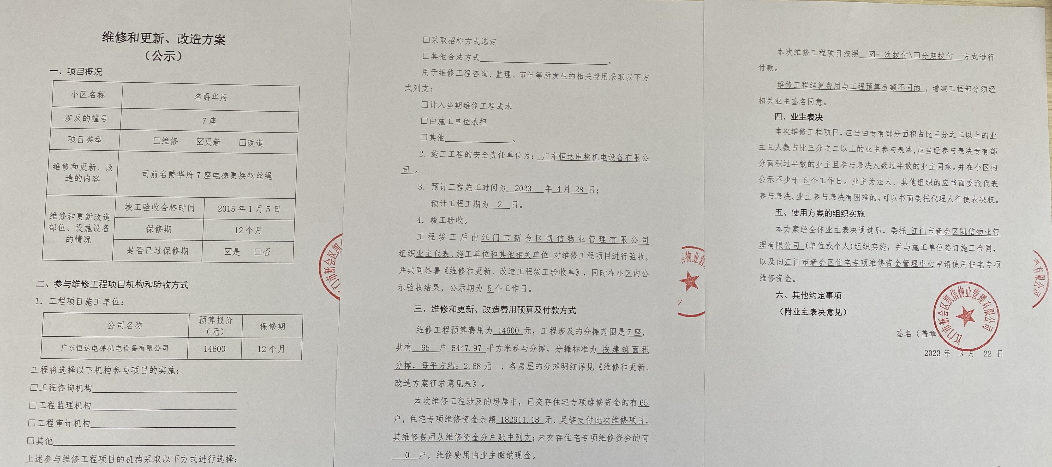 <td valign="top" values="" style="border-width:0" bindtype="0" rowspan="17" colspan="7" datasource="投票结果"><font style=" font-family:方正小标宋简体;font-size:14pt;"><p style="line-height: 1.75em;"><span style="font-family: 宋体, SimSun;">各位尊敬的业主:</span><br></p><p style="text-indent: 2em; line-height: 1.75em;"><span style="font-family: 宋体, SimSun;">根据法律法规的规定,本小区业主利用“物业公共事务决策系统”已对本小区公共事务决策事项进行了表决,在经过7日的询异公示期后,未收到业主有效的异议。现将投票结果公告,并就产生的法律效力说明如下:</span></p><p style="line-height: 1.75em; text-indent: 0em;"><strong style="text-indent: 2em;"><span style="font-family: 宋体, SimSun;">一、投票范围</span></strong></p><p style="text-indent: 2em; line-height: 1.75em;"><span style="font-family: 宋体, SimSun;">名爵华府名爵华府7座</span></p><p style="text-indent: 2em; line-height: 1.75em;"><span style="font-family: 宋体, SimSun;">总人数(专有部分人数之和):64</span></p><p style="text-indent: 2em; line-height: 1.75em;"><span style="font-family: 宋体, SimSun;"><span style="font-family: 宋体, SimSun; text-indent: 32px;">总户数:65</span></span></p><p style="text-indent: 2em; line-height: 1.75em;"><span style="font-family: 宋体, SimSun;">建筑物总面积(专有部分面积之和):5447.52㎡</span></p><p style="line-height: 1.75em;"><strong><span style="font-family: 宋体, SimSun;">二、投票起止时间</span></strong></p><p style="text-indent: 2em; line-height: 1.75em;"><span style="font-family: 宋体, SimSun;">投票表决时间:从2023年04月10日到2023年04月19日止</span></p><p style="text-indent: 2em; line-height: 1.75em;"><span style="font-family: 宋体, SimSun;">投票询异公示时间:从2023年04月20日开始</span></p><p style="text-indent: 2em; line-height: 1.75em;"><span style="font-family: 宋体, SimSun;">投票结果通知公告时间:从2023年04月27日开始</span></p><p style="line-height: 1.75em;"><strong><span style="font-family: 宋体, SimSun;">三、计票规则</span></strong></p><p style="text-indent: 2em; line-height: 1.75em;"><span style="font-family: 宋体, SimSun;">表决事项:使用建筑物及其附属设施的维修资金<br></span></p><p style="font-family: 宋体, SimSun;line-height: 1.75em; text-indent: 2em;">计票规则:弃权票不并入其它项 未表决票不并入其它项</p><p></p><p style="line-height: 1.75em;"><strong><span style="font-family: 宋体, SimSun;">四、通过规则</span></strong></p><p style="text-indent: 2em; line-height: 1.75em;"><span style="font-family: 宋体, SimSun;"><span style="font-family: 宋体, SimSun; text-indent: 32px;">表决事项:使用建筑物及其附属设施的维修资金<br></span></span></p><p style="font-family: 宋体, SimSun;line-height: 1.75em; text-indent: 2em;">通过规则:参与表决专有部分面积过半数的业主且参与表决人数过半数的业主同意</p><p></p><p style="line-height: 1.75em;"><strong><span style="font-family: 宋体, SimSun;">五、投票结果</span></strong></p><p style="line-height: 1.75em; text-indent: 2em;"><span style="font-family: 宋体, SimSun; text-indent: 2em;"></span></p><div id="resultTable"><table style="table-layout: fixed; font-size:12px; margin-top:10px" width="100%" border="0" cellspacing="0" cellpadding="0"><tbody><tr><td height="28" colspan="10" align="center" style="border: 1px solid #666"><strong style="font-size: 14px;"> 使用建筑物及其附属设施的维修资金</strong></td> </tr><tr id="trfirst"><td height="28" colspan="4" style="border-left: 1px solid #666; border-bottom: 1px solid #666"><strong> 申报单位:</strong> 江门市新会区凯信物业管理有限公司</td><td colspan="3" style="border-left: 1px solid #666; border-bottom: 1px solid #666"><strong> 联系方式:</strong> 07506569656 </td><td colspan="3" style="border-left: 1px solid #666; border-bottom: 1px solid #666; border-right: 1px solid #666"><strong> 申报日期:</strong> 2023年4月9日 </td></tr><tr> <td height="28" colspan="5" style="border-left: 1px solid #666; border-bottom: 1px solid #666"><strong> 总人数(专有部分人数之和):</strong>64人 </td><td colspan="5" style="border-left: 1px solid #666; border-bottom: 1px solid #666; border-right: 1px solid #666"><strong> 建筑物总面积(专有部分面积之和):</strong>5447.52㎡ </td> </tr><tr><td height="28" colspan="10" bgcolor="#F3F3F3" style="border-left: 1px solid #666;border-bottom: 1px solid #666;border-right: 1px solid #666"><strong> 参与人数及面积统计</strong></td></tr><tr><td height="28" colspan="5" style="border-left: 1px solid #666; border-bottom: 1px solid #666"><strong> 参与表决专有部分人数之和:</strong>47人</td><td colspan="5" style="border-left: 1px solid #666; border-bottom: 1px solid #666; border-right: 1px solid #666"><strong> 参与表决占有表决权总人数比例:</strong>73.44%</td></tr><tr><td height="28" colspan="5" style="border-left: 1px solid #666; border-bottom: 1px solid #666"><strong> 参与表决专有部分面积之和:</strong>3938.86㎡</td><td colspan="5" style="border-left: 1px solid #666; border-bottom: 1px solid #666; border-right: 1px solid #666"><strong> 参与表决占有表决权总面积比例:</strong>72.31%</td></tr><tr><td height="28" colspan="10" bgcolor="#F3F3F3" style="border-left: 1px solid #666; border-bottom: 1px solid #666;border-right: 1px solid #666"> <strong> 未参与人数及面积统计</strong></td> </tr><tr><td height="28" colspan="5" style="border-left: 1px solid #666; border-bottom: 1px solid #666"><strong> 未参与表决专有部分人数之和:</strong>17人 </td><td colspan="5" style="border-left: 1px solid #666; border-bottom: 1px solid #666; border-right: 1px solid #666"><strong> 未参与表决占有表决权总人数比例:</strong>26.56%</td></tr><tr><td height