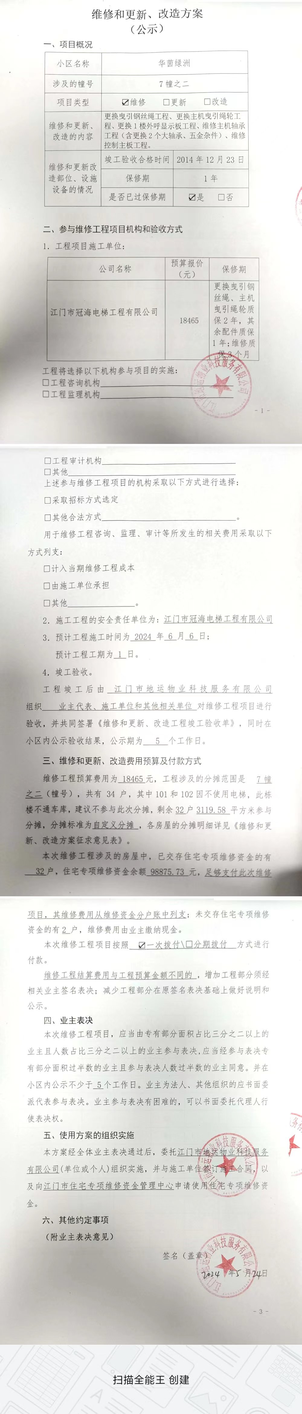 <td VALIGN="top" VALUES="" STYLE="border-width:0" BINDTYPE="0" ROWSPAN="17" COLSPAN="7" DATASOURCE="投票结果" ><font style=" font-family:方正小标宋简体;font-size:14pt;"><p style="line-height: 1.75em;"><span style="font-family: 宋体, SimSun;">各位尊敬的业主:</span><br/></p><p style="text-indent: 2em; line-height: 1.75em;"><span style="font-family: 宋体, SimSun;">根据法律法规的规定,本小区业主利用“江门市物业事项表决管理系统”已对本小区公共事务决策事项进行了表决,在经过7日的询异公示期后,未收到业主有效的异议。现将投票结果公告,并就产生的法律效力说明如下:</span></p><p style="line-height: 1.75em; text-indent: 0em;"><strong style="text-indent: 2em;"><span style="font-family: 宋体, SimSun;">一、投票范围</span></strong></p><p style="text-indent: 2em; line-height: 1.75em;"><span style="font-family: 宋体, SimSun;">华茵绿洲江海区华茵绿洲7幢之二</span></p><p style="text-indent: 2em; line-height: 1.75em;"><span style="font-family: 宋体, SimSun;">总人数(专有部分人数之和):32</span></p><p style="text-indent: 2em; line-height: 1.75em;"><span style="font-family: 宋体, SimSun;"><span style="font-family: 宋体, SimSun; text-indent: 32px;"><span style="font-family: 宋体; text-indent: 32px;"><span style="font-family: 宋体; text-indent: 32px;">总户数:32</span></span></span></span></p><p style="text-indent: 2em; line-height: 1.75em;"><span style="font-family: 宋体, SimSun;">建筑物总面积(专有部分面积之和):3325.12㎡</span></p><p style="line-height: 1.75em;"><strong><span style="font-family: 宋体, SimSun;">二、投票结果公告时间</span></strong></p><p style="text-indent: 2em; line-height: 1.75em;"><span style="font-family: 宋体, SimSun;">从2024年06月08日开始</span></p><p style="line-height: 1.75em;"><strong><span style="font-family: 宋体, SimSun;">三、计票规则</span></strong></p><p style="text-indent: 2em; line-height: 1.75em;"><span style="font-family: 宋体, SimSun;">表决事项:使用建筑物及其附属设施的维修资金<br /><p style='font-family: 宋体, SimSun;line-height: 1.75em; text-indent: 2em;'>计票规则:弃权票不并入其它项&nbsp;&nbsp;&nbsp;&nbsp;未表决票不并入其它项</p></span></p><p style="line-height: 1.75em;"><strong><span style="font-family: 宋体, SimSun;">四、通过规则</span></strong></p><p style="line-height: 1.75em;"><strong><span style="font-family: 宋体, SimSun;">&nbsp; 根据《中华人民共和国民法典》第二百七十八条规定:业主共同决定事项,应当由专有部分面积占比三分之二以上的业主且人数占比三分之二以上的业主参与表决。</span></strong></p><p style="text-indent: 2em; line-height: 1.75em;"><span style="font-family: 宋体, SimSun;"><span style="font-family: 宋体, SimSun; text-indent: 32px;">表决事项:使用建筑物及其附属设施的维修资金<br /><p style='font-family: 宋体, SimSun;line-height: 1.75em; text-indent: 2em;'>通过规则:双2/3以上参与表决,参与表决双过半同意</p></span></span></p><p style="line-height: 1.75em;"><strong><span style="font-family: 宋体, SimSun;">五、投票结果</span></strong></p><p style="line-height: 1.75em; text-indent: 2em;"><span style="font-family: 宋体, SimSun; text-indent: 2em;"><div id='resultTable'><table style='table-layout: fixed; font-size:12px; margin-top:10px' width='100%' border='0' cellspacing='0' cellpadding='0'><tr><td height='28' colspan='10' align='center' style='border: 1px solid #666'><strong style='font-size: 14px;'> 使用建筑物及其附属设施的维修资金</strong></td> </tr><tr id='trfirst'><td height='28' colspan='4' style='border-left: 1px solid #666; border-bottom: 1px solid #666'><strong>&nbsp;申报单位:</strong> 江门市地运物业科技服务有限公司</td><td colspan='3' style='border-left: 1px solid #666; border-bottom: 1px solid #666'><strong>&nbsp;联系方式:</strong> </td><td colspan='3' style='border-left: 1px solid #666; border-bottom: 1px solid #666; border-right: 1px solid #666'><strong>&nbsp;申报日期:</strong> 2024年5月24日 </td></tr><tr> <td height='28' colspan='5' style='border-left: 1px solid #666; border-bottom: 1px solid #666'><strong>&nbsp;列支总人数(专有部分人数之和):</strong>32人 </td><td colspan='5' style='border-left: 1px solid #666; border-bottom: 1px solid #666; border-right: 1px solid #666'><strong>&nbsp;列支建筑物总面积(专有部分面积之和):</strong>3325.12㎡ </td> </tr><tr><td height='28' colspan='10' bgcolor='#F3F3F3' style='border-left: 1px solid #666;border-bottom: 1px solid #666;border-right: 1px solid #666'><strong>&nbsp;参与表决人数及面积统计</strong></td></tr><tr><td height='28' colspan='5' style='border-left: 1px solid #666; border-bottom: 1px solid #666'><strong>&nbsp;参与表决人数:</strong>24人</td><td colspan='5' style='border-left: 1px solid #666; border-bottom: 1px solid #666; border-right: 1px solid #666'><strong>&nbsp;参与表决人数占总人数比例:</strong>75.00%</td></tr><tr><td height='28' colspan='5' style='border-left: 1px solid #666; border-bottom: 1px solid #666'><strong>&nbsp;参与表决面积:</strong>2486.36㎡</td><td colspan='5' style='border-left: 1px solid #666; border-bottom: 1px solid #666; border-right: 1px solid #666'><strong>&nbsp;参与表决面积占总面积比例:</strong>74.78%</td></tr><tr><td height='28' colspan='10' bgcolor='#F3F3F3' style='border-left: 1px solid #666; border-bottom: 1px solid #666;border-right: 1px solid #666'> <strong>&nbsp;参与表决同意人数及面积统计</strong></td> </tr><tr><td height='28' colspan='5' style='border-left: 1px solid #666; border-bottom: 1px solid #666'><strong>&nbsp;参与表决同意人数:</strong>22人 </td><td colspan='5' style='border-left: 1px solid #666; border-bottom: 1px solid #666; border-right: 1px solid #666'><stron
