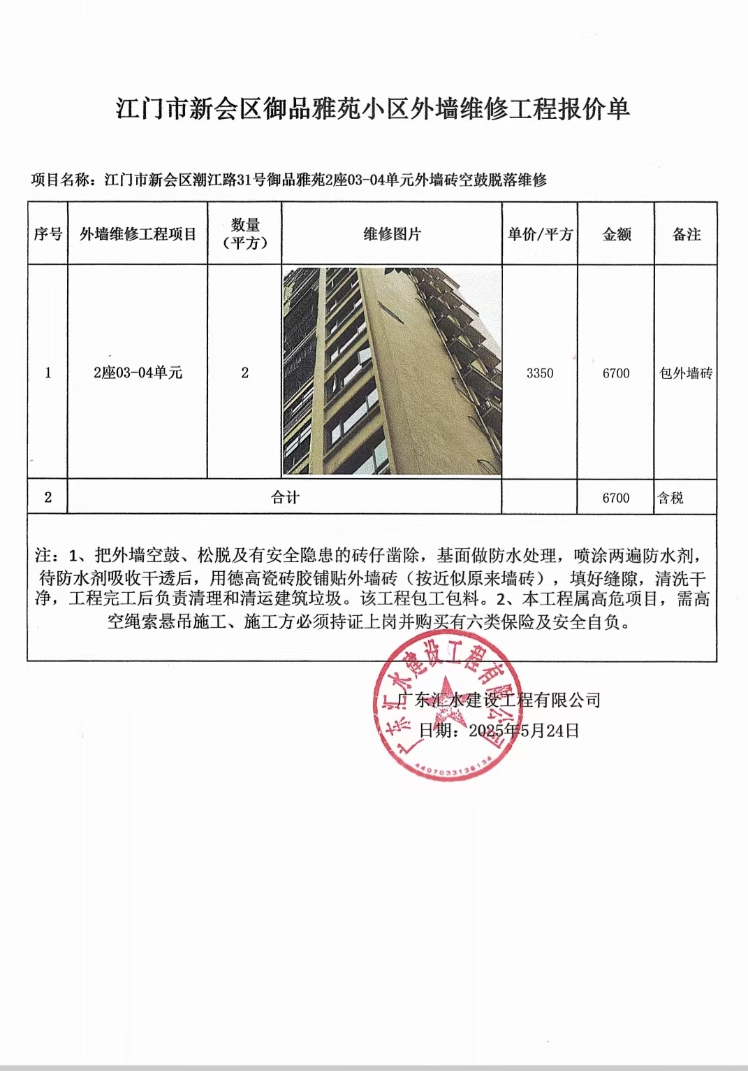 <td VALIGN="top" VALUES="" STYLE="border-width:0" BINDTYPE="0" ROWSPAN="17" COLSPAN="7" DATASOURCE="投票结果" ><font style=" font-family:方正小标宋简体;font-size:14pt;"><p style="line-height: 1.75em;"><span style="font-family: 宋体, SimSun;">各位尊敬的业主:</span><br/></p><p style="text-indent: 2em; line-height: 1.75em;"><span style="font-family: 宋体, SimSun;">根据法律法规的规定,本小区业主利用“江门市物业事项表决管理系统”已对本小区公共事务决策事项(<span style="font-family: 宋体; text-indent: 32px;">御品雅苑2座03-04单元外墙砖空鼓脱落维修使用维修资金的投票</span>)进行了表决,在经过7日的询异公示期后,未收到业主有效的异议。现将投票结果公告,并就产生的法律效力说明如下:</span></p><p style="line-height: 1.75em; text-indent: 0em;"><strong style="text-indent: 2em;"><span style="font-family: 宋体, SimSun;">一、投票范围</span></strong></p><p style="text-indent: 2em; line-height: 1.75em;"><span style="font-family: 宋体, SimSun;">御品雅苑御品雅苑2座</span></p><p style="text-indent: 2em; line-height: 1.75em;"><span style="font-family: 宋体, SimSun;">总人数(专有部分人数之和):30</span></p><p style="text-indent: 2em; line-height: 1.75em;"><span style="font-family: 宋体, SimSun;"><span style="font-family: 宋体, SimSun; text-indent: 32px;"><span style="font-family: 宋体; text-indent: 32px;"><span style="font-family: 宋体; text-indent: 32px;">总户数:30</span></span></span></span></p><p style="text-indent: 2em; line-height: 1.75em;"><span style="font-family: 宋体, SimSun;">建筑物总面积(专有部分面积之和):3234.47㎡</span></p><p style="line-height: 1.75em;"><strong><span style="font-family: 宋体, SimSun;">二、投票结果公告时间</span></strong></p><p style="text-indent: 2em; line-height: 1.75em;"><span style="font-family: 宋体, SimSun;"><span style="font-family: 宋体, SimSun; text-indent: 32px;">从2025年08月08日开始</span></span></p><p style="line-height: 1.75em;"><strong><span style="font-family: 宋体, SimSun;">三、计票规则</span></strong></p><p style="text-indent: 2em; line-height: 1.75em;"><span style="font-family: 宋体, SimSun;">表决事项:使用建筑物及其附属设施的维修资金<br /><p style='font-family: 宋体, SimSun;line-height: 1.75em; text-indent: 2em;'>计票规则:弃权票不并入其它项&nbsp;&nbsp;&nbsp;&nbsp;未表决票不并入其它项</p></span></p><p style="line-height: 1.75em;"><strong><span style="font-family: 宋体, SimSun;">四、通过规则</span></strong></p><p style="line-height: 1.75em;"><strong><span style="font-family: 宋体, SimSun;">&nbsp; 根据《中华人民共和国民法典》第二百七十八条规定:业主共同决定事项,应当由专有部分面积占比三分之二以上的业主且人数占比三分之二以上的业主参与表决。</span></strong></p><p style="text-indent: 2em; line-height: 1.75em;"><span style="font-family: 宋体, SimSun;"><span style="font-family: 宋体, SimSun; text-indent: 32px;">表决事项:使用建筑物及其附属设施的维修资金<br /><p style='font-family: 宋体, SimSun;line-height: 1.75em; text-indent: 2em;'>通过规则:双2/3以上参与表决,参与表决双过半同意</p></span></span></p><p style="line-height: 1.75em;"><strong><span style="font-family: 宋体, SimSun;">五、投票结果</span></strong></p><p style="line-height: 1.75em; text-indent: 2em;"><span style="font-family: 宋体, SimSun; text-indent: 2em;"><div id='resultTable'><table style='table-layout: fixed; font-size:12px; margin-top:10px' width='100%' border='0' cellspacing='0' cellpadding='0'><tr><td height='28' colspan='10' align='center' style='border: 1px solid #666'><strong style='font-size: 14px;'> 使用建筑物及其附属设施的维修资金</strong></td> </tr><tr id='trfirst'><td height='28' colspan='4' style='border-left: 1px solid #666; border-bottom: 1px solid #666'><strong>&nbsp;申报单位:</strong> 新会区环城房地产物业管理有限公司</td><td colspan='3' style='border-left: 1px solid #666; border-bottom: 1px solid #666'><strong>&nbsp;联系方式:</strong> </td><td colspan='3' style='border-left: 1px solid #666; border-bottom: 1px solid #666; border-right: 1px solid #666'><strong>&nbsp;申报日期:</strong> 2025年6月13日 </td></tr><tr> <td height='28' colspan='5' style='border-left: 1px solid #666; border-bottom: 1px solid #666'><strong>&nbsp;列支总人数(专有部分人数之和):</strong>30人 </td><td colspan='5' style='border-left: 1px solid #666; border-bottom: 1px solid #666; border-right: 1px solid #666'><strong>&nbsp;列支建筑物总面积(专有部分面积之和):</strong>3234.47㎡ </td> </tr><tr><td height='28' colspan='10' bgcolor='#F3F3F3' style='border-left: 1px solid #666;border-bottom: 1px solid #666;border-right: 1px solid #666'><strong>&nbsp;参与表决人数及面积统计</strong></td></tr><tr><td height='28' colspan='5' style='border-left: 1px solid #666; border-bottom: 1px solid #666'><strong>&nbsp;参与表决人数:</strong>21人</td><td colspan='5' style='border-left: 1px solid #666; border-bottom: 1px solid #666; border-right: 1px solid #666'><strong>&nbsp;参与表决人数占总人数比例:</strong>70.00%</td></tr><tr><td height='28' colspan='5' style='border-left: 1px solid #666; border-bottom: 1px solid #666'><strong>&nbsp;参与表决面积:</strong>2267.90㎡</td><td colspan='5' style='border-left: 1px solid #666; border-bottom: 1px solid #666; border-right: 1px solid #666'><strong>&nbsp;参与表决面积占总面积比例:</strong>70.12%</td></tr><tr><td height='28' colspan='10' bgcolor='#F3F3F3' style='border-left: 1px solid #666; border-bottom: 1px solid #666;border-right: 1px solid #666'> <strong>&nbsp;参与表决同意人数及面积统计</strong></td> </tr><tr><td height='28' colspan='5' style='border-left: 1px solid #666; border-b