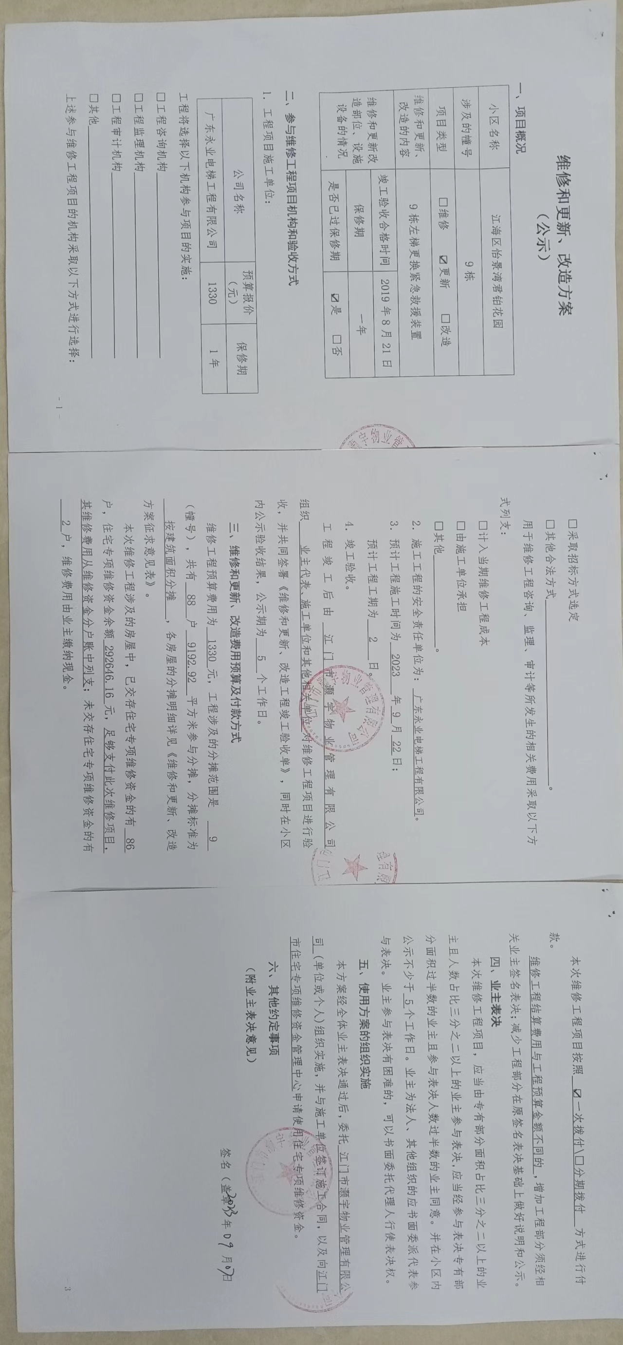 <td valign="top" values="" style="border-width:0" bindtype="0" rowspan="19" colspan="7" datasource="投票结果"><font style="font-size:14pt;"><p style="white-space: normal; font-family: 宋体; line-height: 1.75em;">江门市江海区怡景湾君铂花园江门市江海区怡景湾君铂花园9栋全体业主:</p><p style="white-space: normal; font-family: 宋体; line-height: 1.75em; text-indent: 2em;">本小区关于江门市江海区怡景湾君铂花园9栋左梯更换紧急救援装置使用维修资金的投票的投票已表决结束,询异时间从2023年09月22日开始,投票询异公示期间,业主可通过微信查询自己的表决情况或可凭身份证件申请查询自己的表决情况;如公示的业主表决情况与查询的本人表决意见不一致的,可以以书面形式向投票组织机构申诉,投票组织机构予以纠正并重新公示表决结果。异议提出人对投票组织机构的处理仍有异议的,可以向街道办事处(镇人民政府)反映处理,涉及住宅专项维修资金的,可向属地住宅专项维修资金管理中心反映处理。</p><p style="white-space: normal;"><br></p><p style="white-space: normal; font-family: 宋体; line-height: 1.75em;"><strong>附件:</strong></p><p style="white-space: normal; font-family: 宋体; line-height: 1.75em;"><strong>一、投票范围</strong></p><p style="white-space: normal; font-family: 宋体; line-height: 1.75em; text-indent: 2em;">江门市江海区怡景湾君铂花园江门市江海区怡景湾君铂花园9栋</p><p style="white-space: normal; font-family: 宋体; line-height: 1.75em; text-indent: 2em;">总人数(专有部分人数之和):88</p><p style="white-space: normal; font-family: 宋体; line-height: 1.75em; text-indent: 2em;"><span style="font-family: 宋体, SimSun;">总户数:88</span></p><p style="white-space: normal; font-family: 宋体; line-height: 1.75em; text-indent: 2em;">建筑物总面积(专有部分面积之和):9192.92㎡</p><p style="white-space: normal; font-family: 宋体; line-height: 1.75em;"><strong>二、询异公示起止时间</strong></p><p dir="ltr" style="white-space: normal; font-family: 宋体; line-height: 1.75em; text-indent: 2em;"><span style="text-indent: 36px;">2023年09月22日至2023年09月28日</span></p><p style="white-space: normal; font-family: 宋体; line-height: 1.75em;"><strong>三、投票详细描述</strong></p><p style="white-space: normal; font-family: 宋体; line-height: 1.75em; text-indent: 2em;"></p><p>江海怡景湾君铂花园9栋左梯经江门市检测院年检电梯时发现9栋左梯紧急救援装置失效,存在安全隐患,由于9栋电梯已于2020年08月06日已过保修期。现需申请使用维修资金对9栋左梯更换紧急救援装置,工程维修预算金额为1330 元,项目最终费用以施工合同签订金额为准。维修费用的分摊标准为 按建筑面积分摊,每平方约0.145 元,详见公示附件。如业主手机不能正常通过微信投票,请联系物业公司进行线下纸质投票,物业公司联系电话:0750-3898816</p><p></p><p style="white-space: normal; font-family: 宋体; line-height: 1.75em;"><strong>四、计票规则</strong></p><p style="white-space: normal; font-family: 宋体; line-height: 1.75em; text-indent: 2em;">表决事项:使用建筑物及其附属设施的维修资金<br></p><p style="text-align: left; font-family: 宋体; font-size: 16px; line-height: 1.75em; text-indent: 2em;">计票规则:弃权票不并入其它项 未表决票不并入其它项</p><p></p><p style="white-space: normal; font-family: 宋体; line-height: 1.75em;"><strong>五、通过规则</strong></p><p style="white-space: normal; font-family: 宋体; line-height: 1.75em; text-indent: 2em;">表决事项:使用建筑物及其附属设施的维修资金<br></p><p style="text-align: left; font-family: 宋体; font-size: 16px; line-height: 1.75em; text-indent: 2em;">通过规则:参与表决专有部分面积过半数的业主且参与表决人数过半数的业主同意</p><p></p><p style="white-space: normal; font-family: 宋体; line-height: 1.75em;"><strong>六、投票结果</strong></p><p style="white-space: normal; font-family: 宋体; line-height: 1.75em; text-indent: 2em;"></p><div id="resultTable"><table style="table-layout: fixed; font-size:12px; margin-top:10px" width="100%" border="0" cellspacing="0" cellpadding="0"><tbody><tr><td height="28" colspan="10" align="center" style="border: 1px solid #666"><strong style="font-size: 14px;"> 使用建筑物及其附属设施的维修资金</strong></td> </tr><tr id="trfirst"><td height="28" colspan="4" style="border-left: 1px solid #666; border-bottom: 1px solid #666"><strong> 申报单位:</strong> 江门市灏宇物业管理有限公司</td><td colspan="3" style="border-left: 1px solid #666; border-bottom: 1px solid #666"><strong> 联系方式:</strong> </td><td colspan="3" style="border-left: 1px solid #666; border-bottom: 1px solid #666; border-right: 1px solid #666"><strong> 申报日期:</strong> 2023年9月13日 </td></tr><tr> <td height="28" colspan="5" style="border-left: 1px solid #666; border-bottom: 1px solid #666"><strong> 总人数(专有部分人数之和):</strong>88人 </td><td colspan="5" style="border-left: 1px solid #666; border-bottom: 1px solid #666; border-right: 1px solid #666"><strong> 建筑物总面积(专有部分面积之和):</strong>9192.92㎡ </td> </tr><tr><td height="28" colspan="10" bgcolor="#F3F3F3" style="border-left: 1px solid #666;border-bottom: 1px solid #666;border-right: 1px solid #666"><strong> 参与人数及面积统计</strong></td></tr><tr><td height="28" colspan="5" style="border-left: 1px solid #666; border-bottom: 1px solid #666"><strong> 参与表决专有部分人数之和:</strong>66人</td><td colspan="5" style="border-left: 1px solid #666; border-bottom: 1px solid #666; border-right: 1px solid #666"><strong> 参与表决占有表决权总人数比例:</strong>75.00%</td></tr>